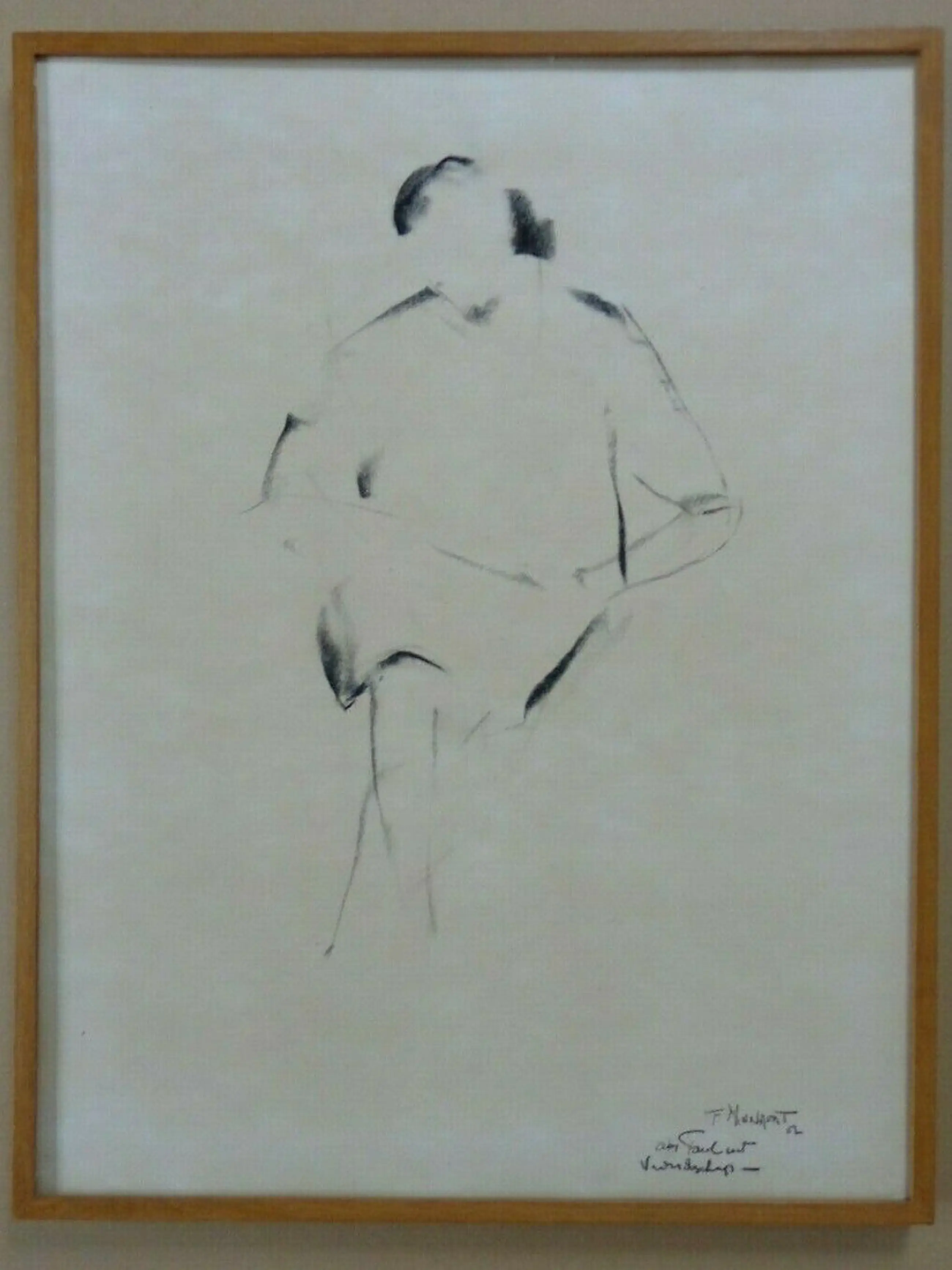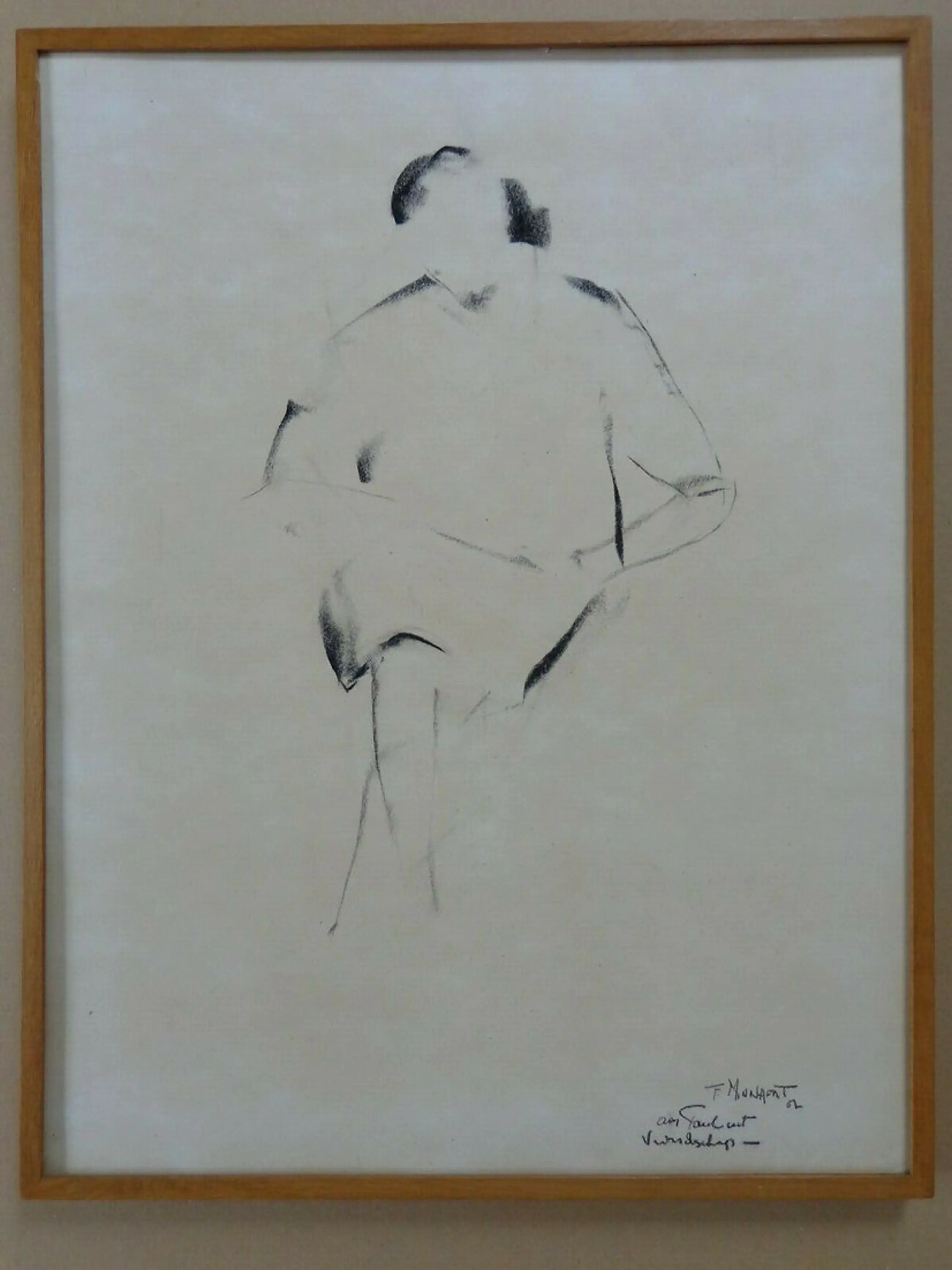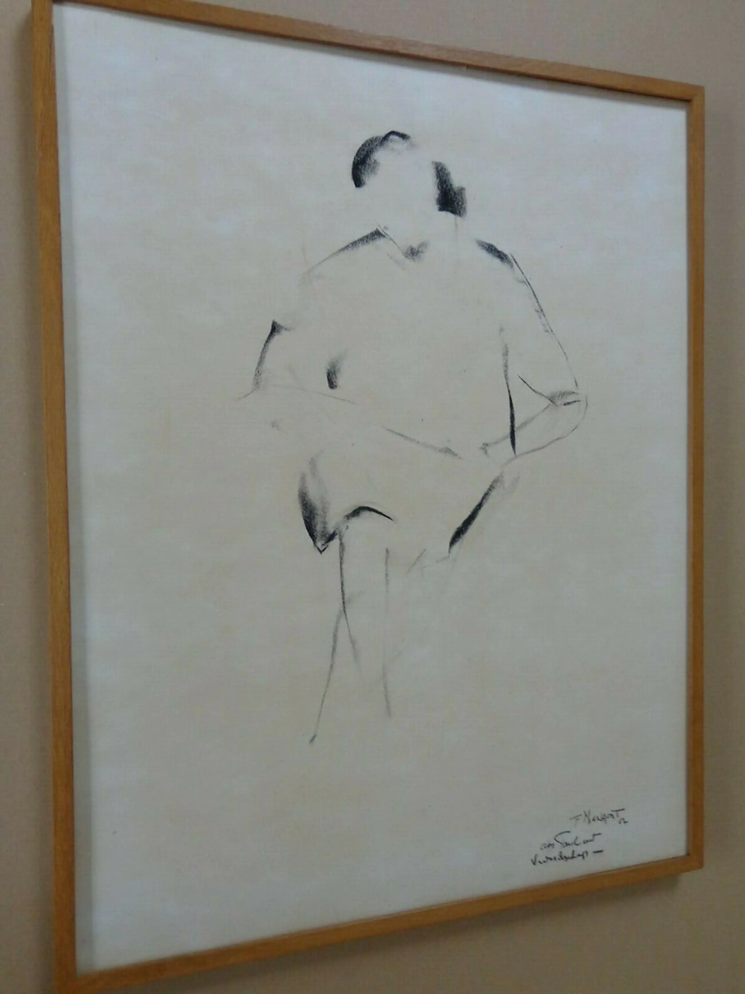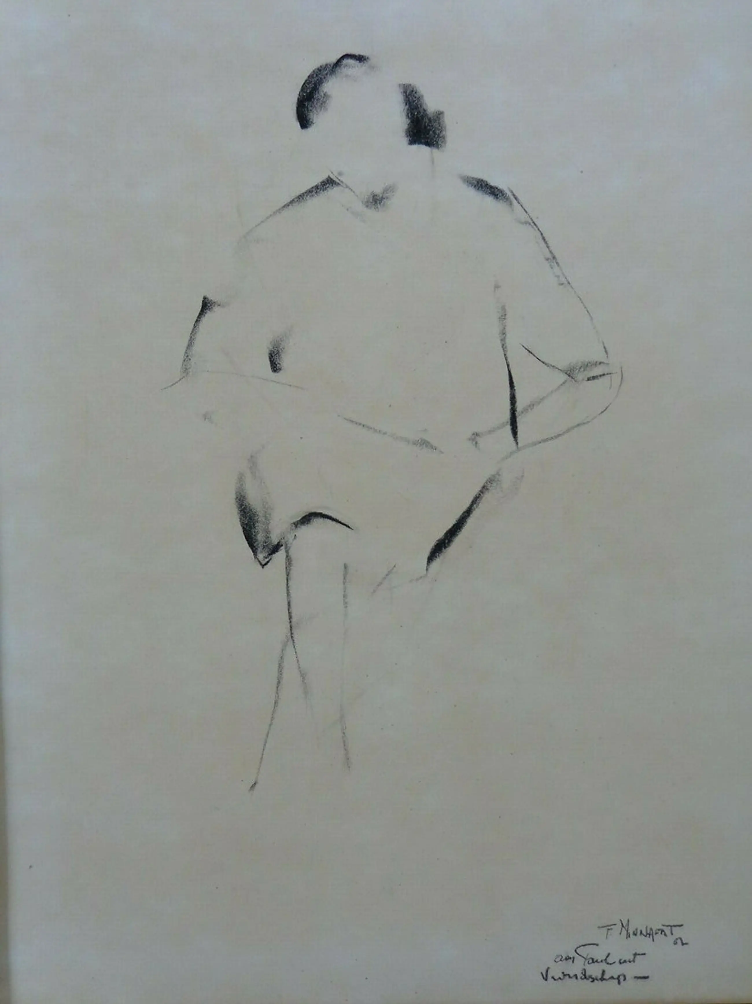 Handgesigneerd met een boodschap, eveneens in houtskool.