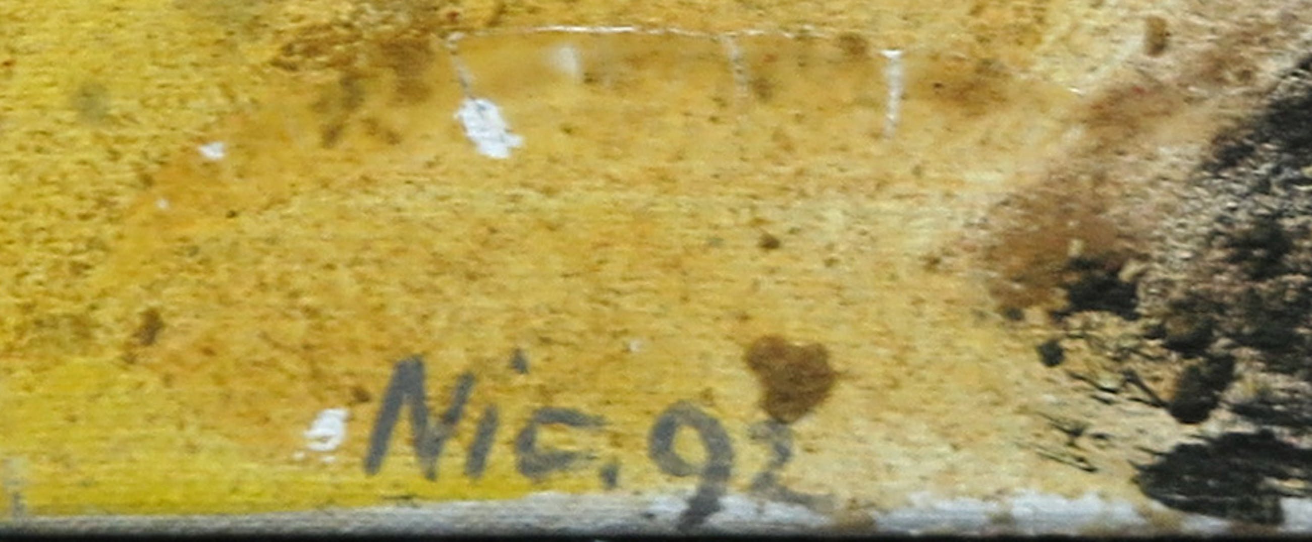 | Goede staat. Wat stof hier en daar. In het midden bovenin wat krimpscheuren/craquele in de verf met opstaande randen. Zie laatste foto. | |
