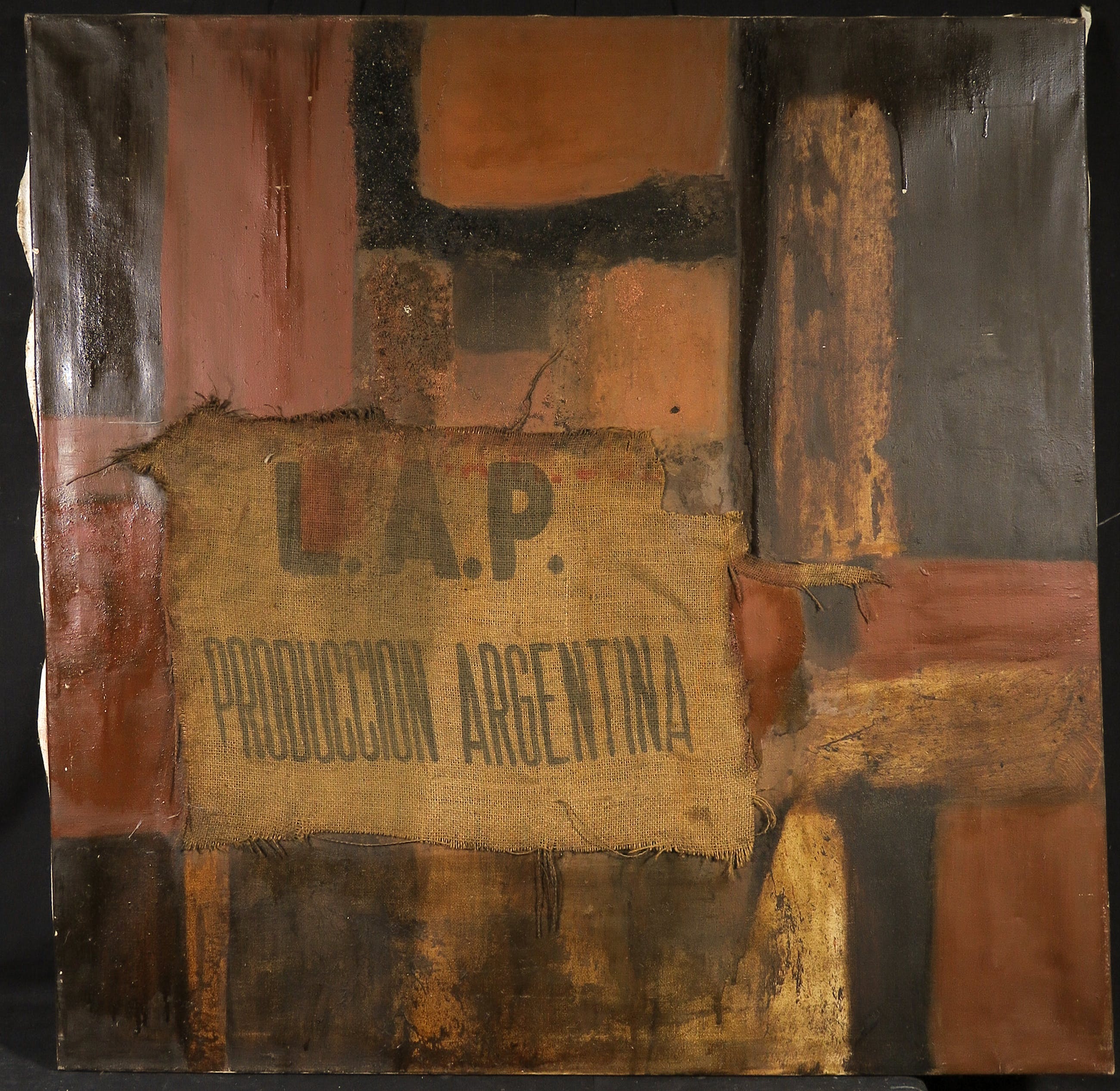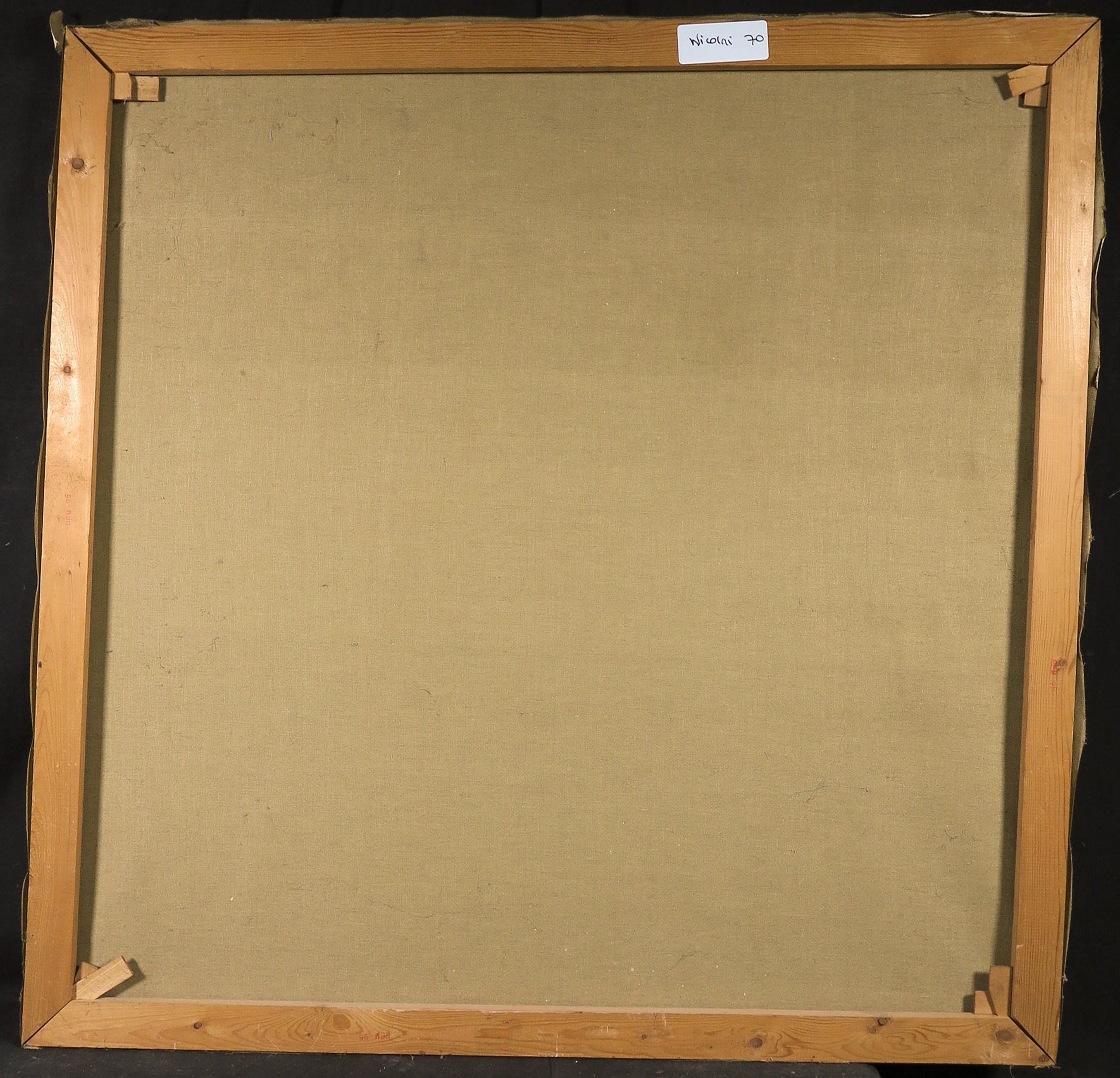| Redelijke conditie. Spieraam is scheef getrokken. Werk oogt een beetje vuil. Wat slijtage langs de randen en de hoeken. Meerdere deukjes in het doek/bobbeling. | |