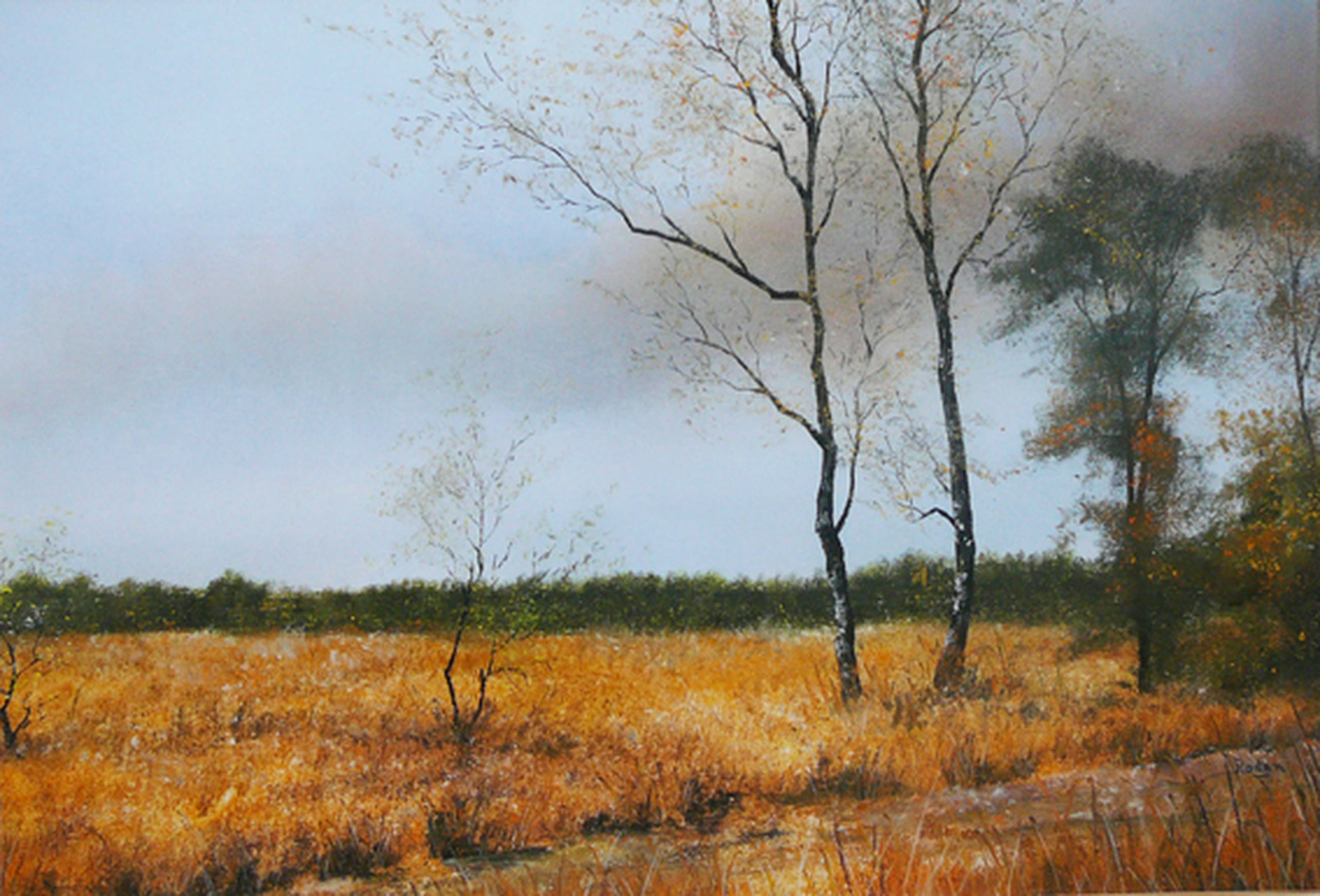 Prachtig naturalistisch heidelandschap (Cartierheide, de Kempen nabij de Belgische grens) door Frans Romeijnsen onder het preudoniem 'Rodan'. Naast landschappen werd Romeijnsen vooral bekend als maritiem schilder en tekenaar.