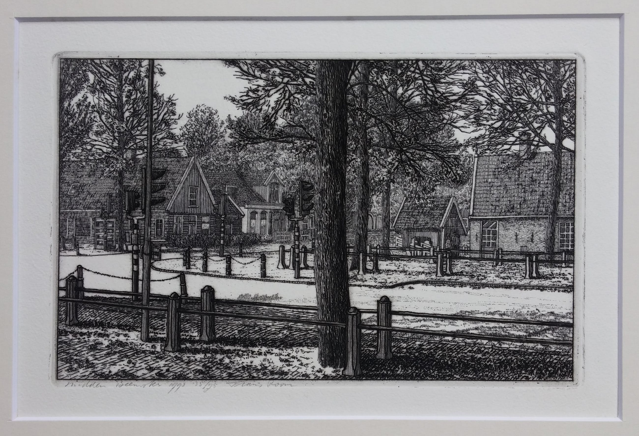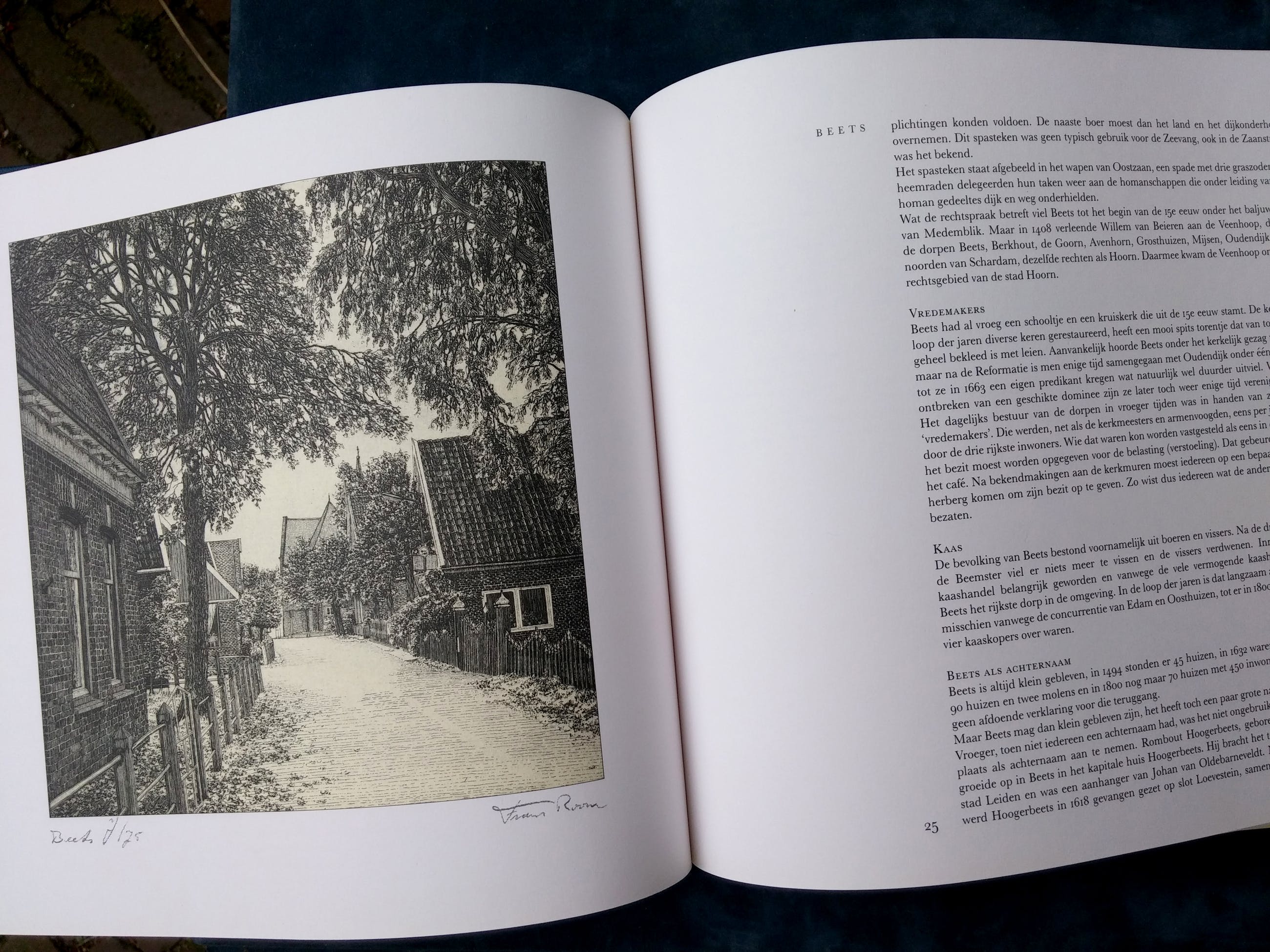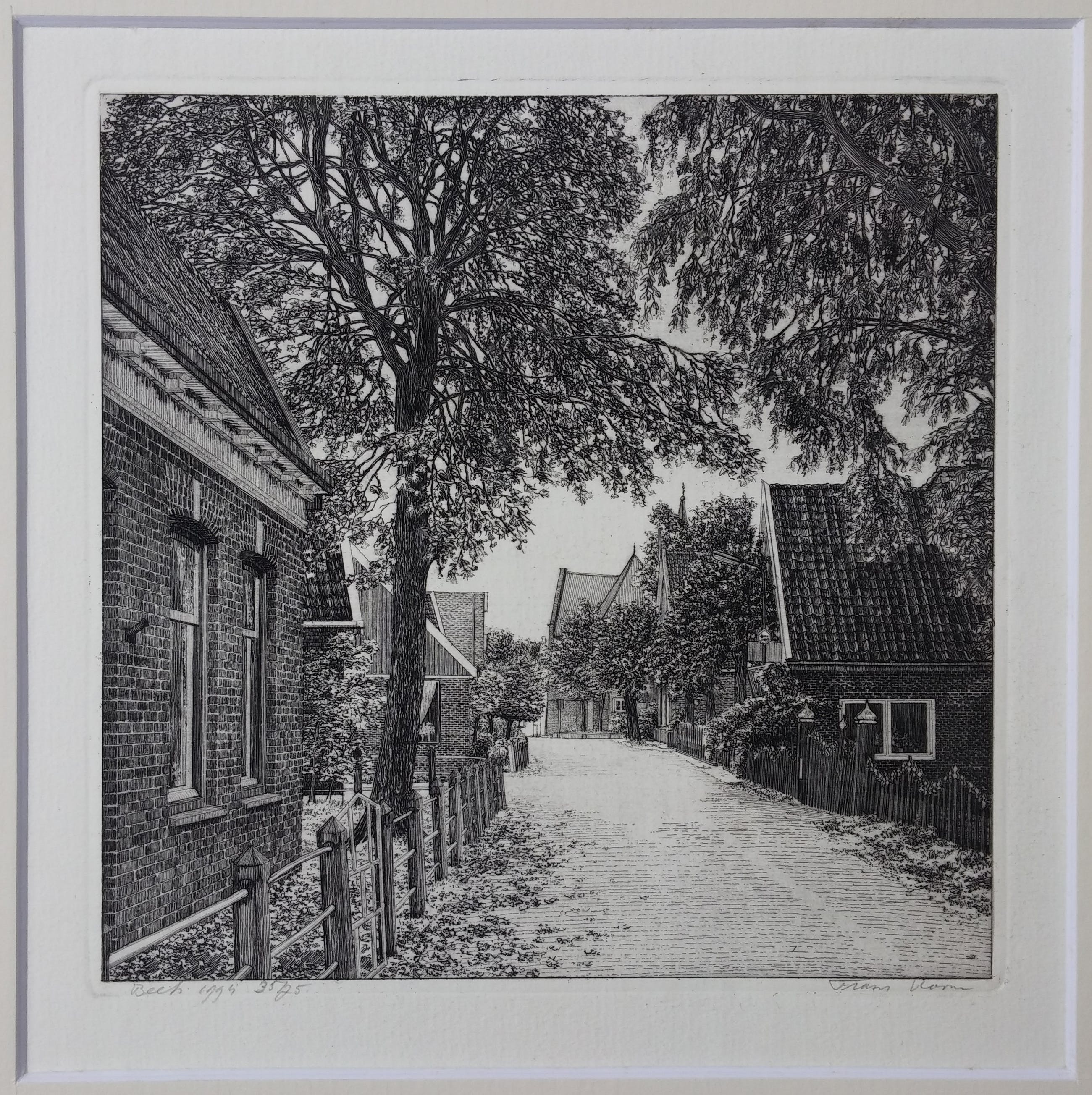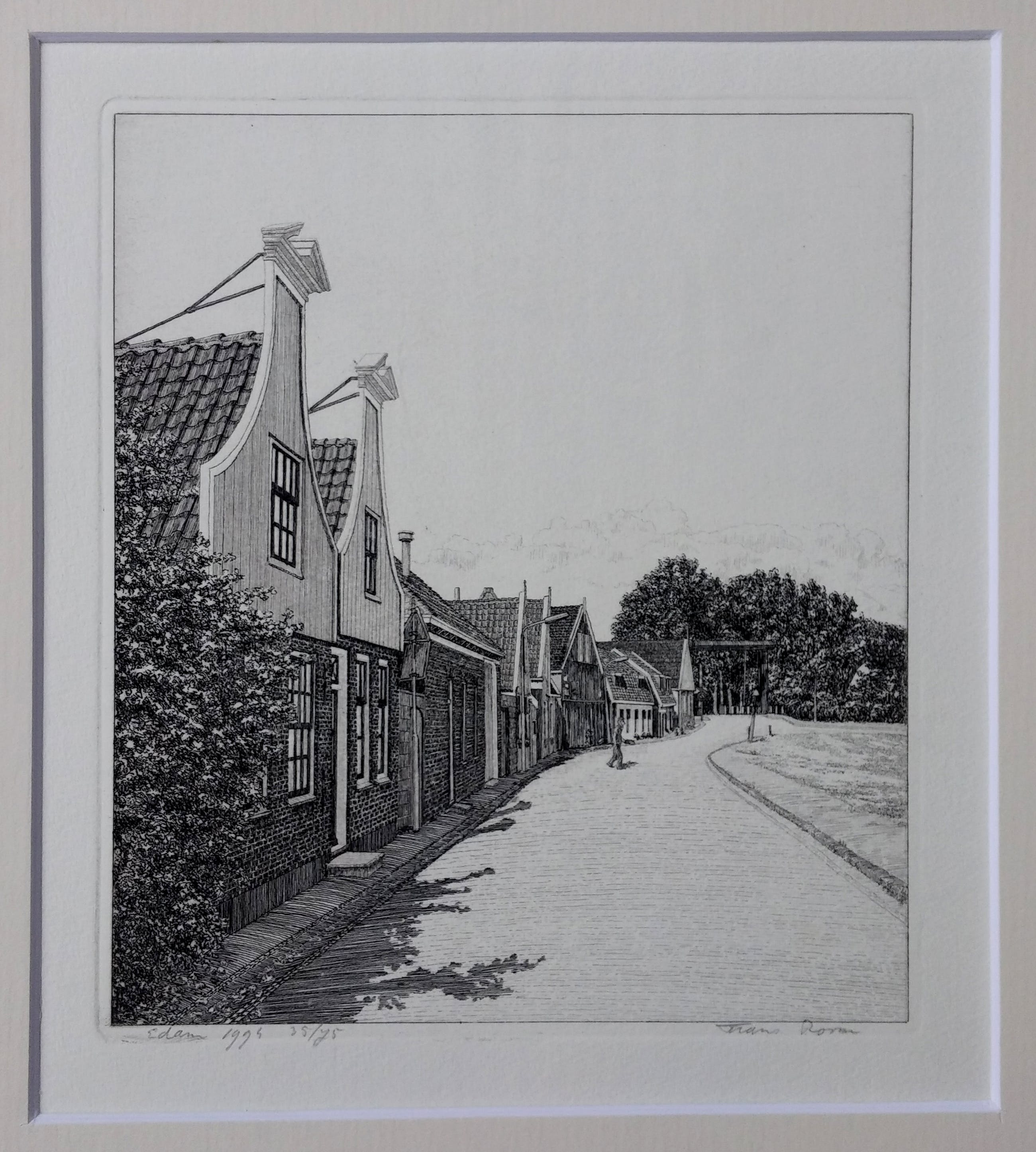 Luxe cassette met 12 etsen van Waterland + boek van Frans Room. Alle werken compleet met passe-partout van 30 x 40 cm. Oplagenummer 35/75. Het boek 'Nat en droog in Waterland' laat de etsen zien met een verhaal over de geschiedenis van elk dorp.