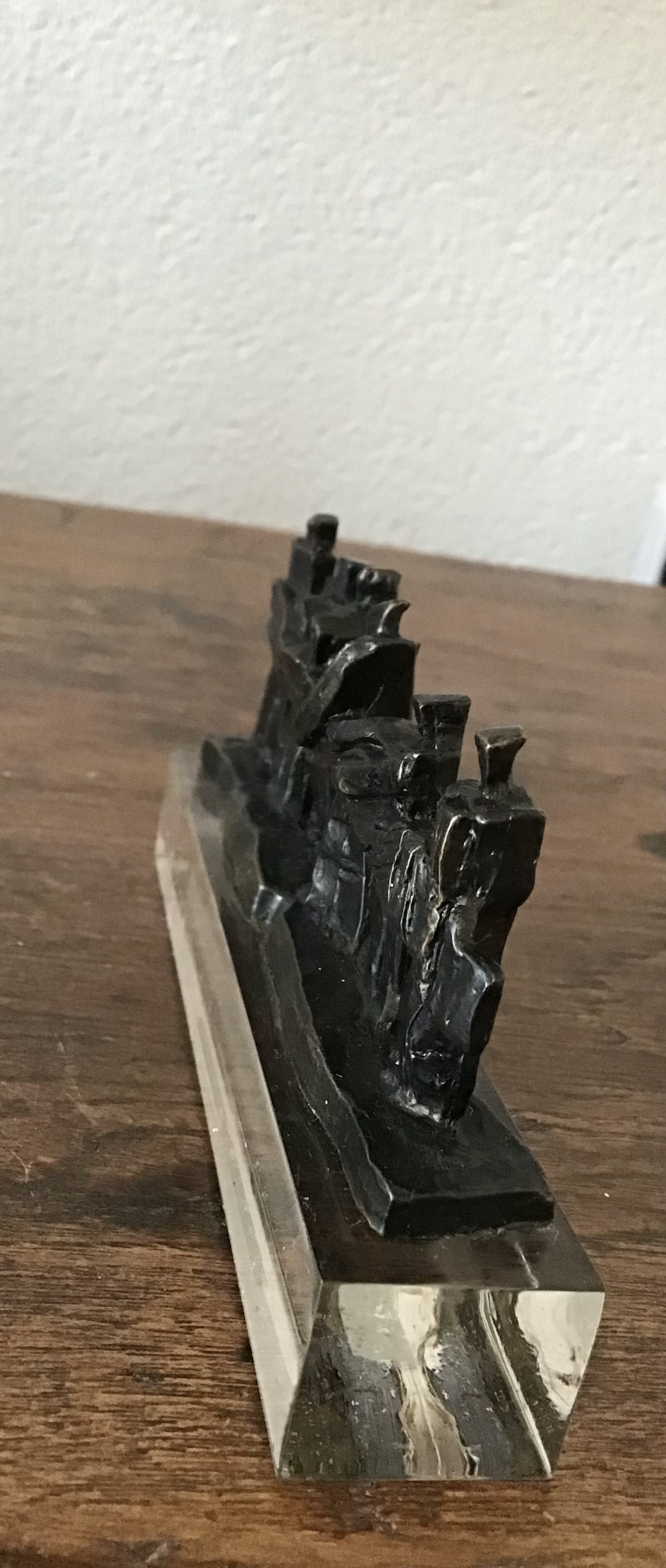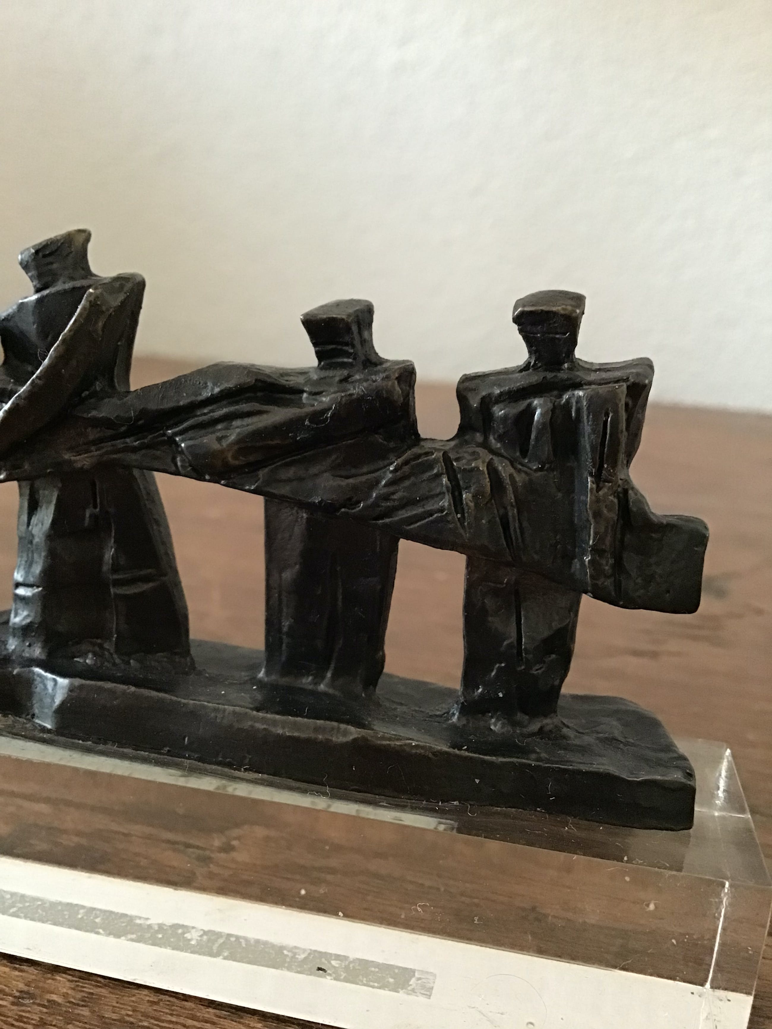 Frans Steginga beeld Artihove Titel :Samen de zaak van de grond tilllen Gesigneerd initialen FS Verbronsd op massieve perspex sokkel Conditie goed Afmetingen 7x13 cm Wordt aangetekend verzonden