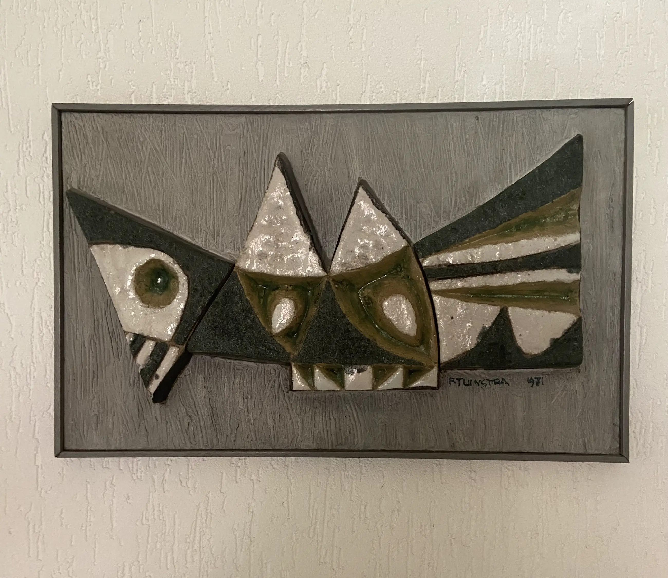 Wand paneel van keramiek gemaakt door de keramist/pottenbakker Frans Tuinstra 1923-2003.