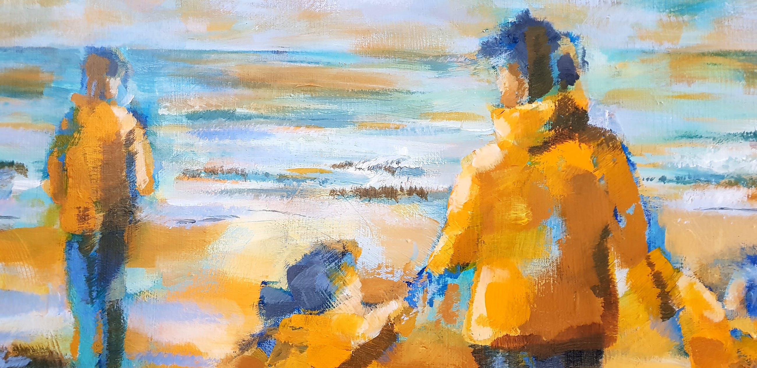 Strandwandeling langs de branding in ruige weersomstandigheden, op een manier verbeeld dat het wél een plezierige strandwandeling suggereert.