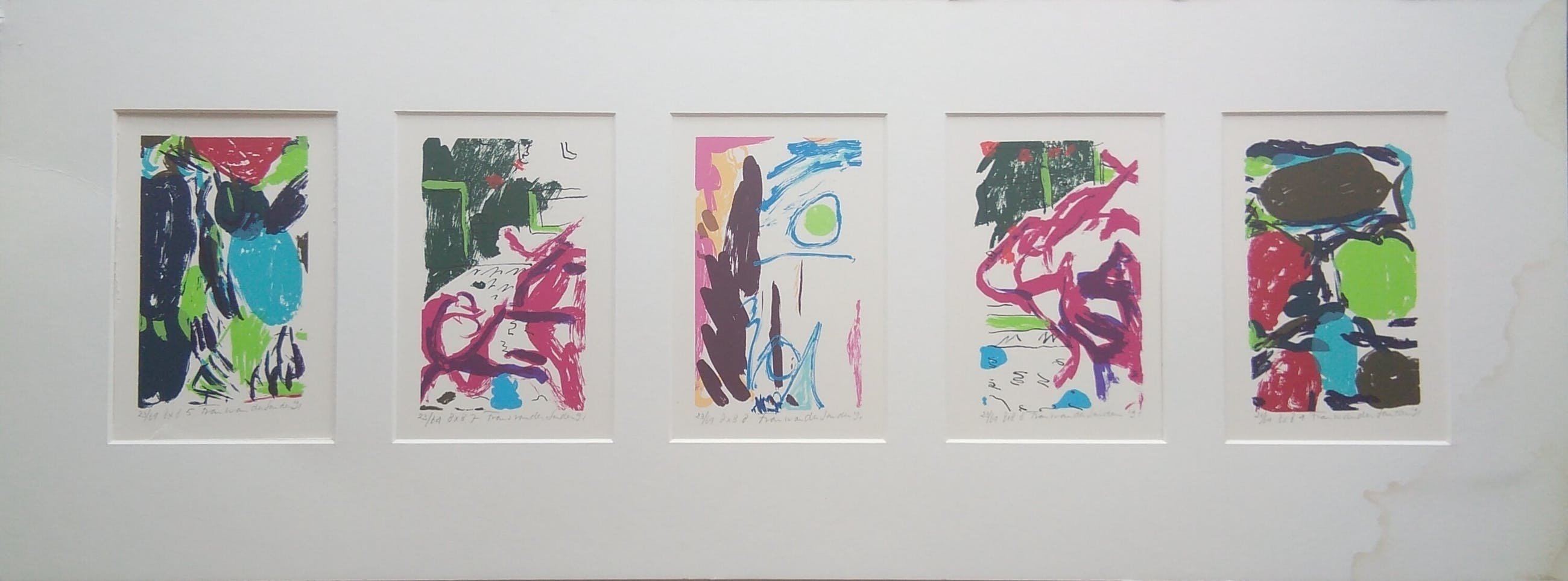 5 x Zeefdruk in passe-partout. Passe-partout Vochtvlek jes r. o. 4 x goede staat. 1 x redelijke staat met diverse ouderdomsverschijnselen. 5 x Handgesigneerd, Oplage 69