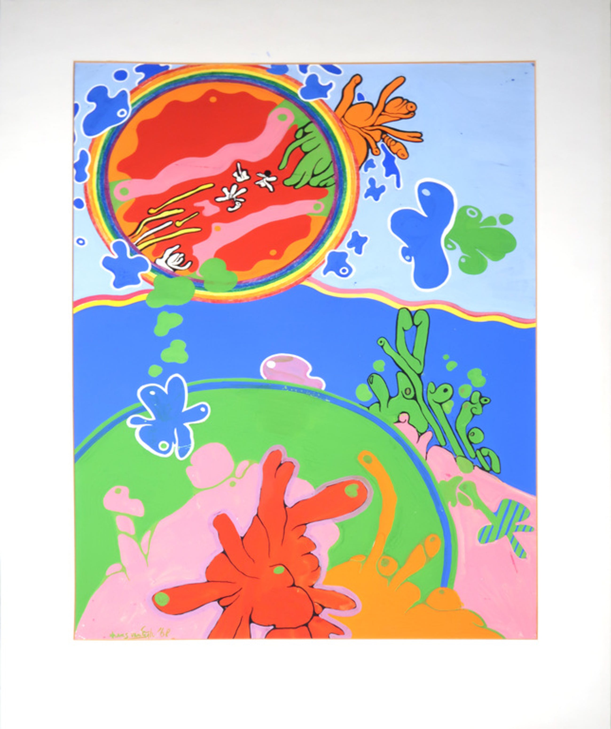 Materiaal: Tekening met kleurpotlood en acryl op papier