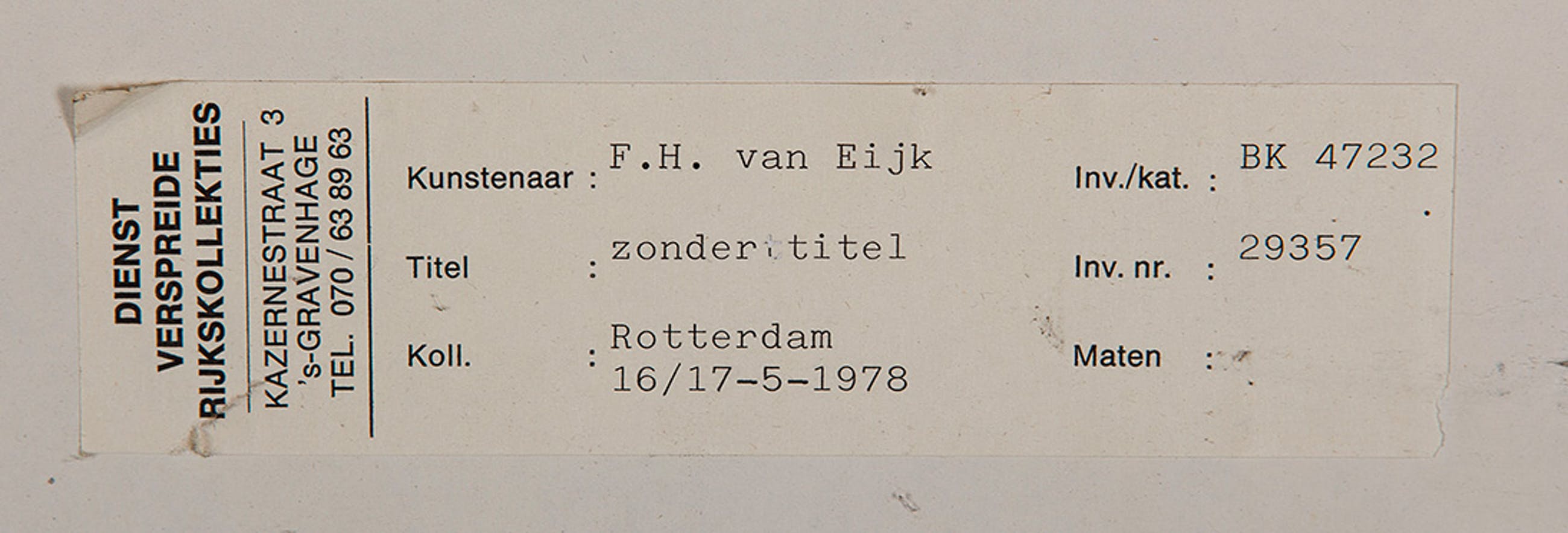 Herkomst: BKR Rotterdam (Het kunstwerk is afgevoerd uit de rijkscollectie in 2018)