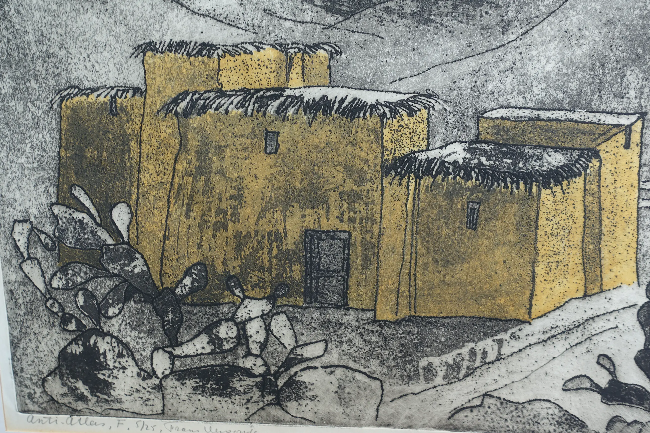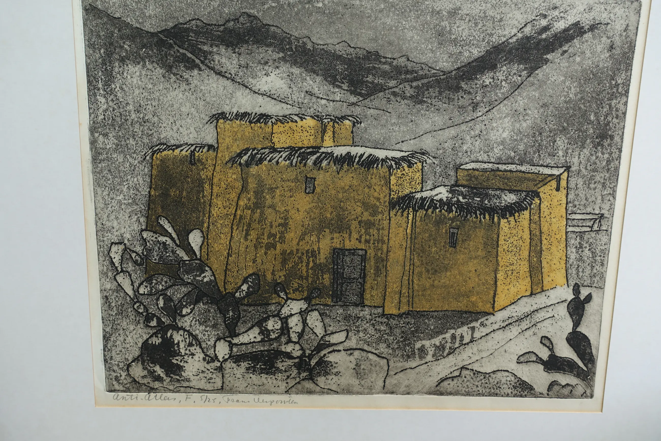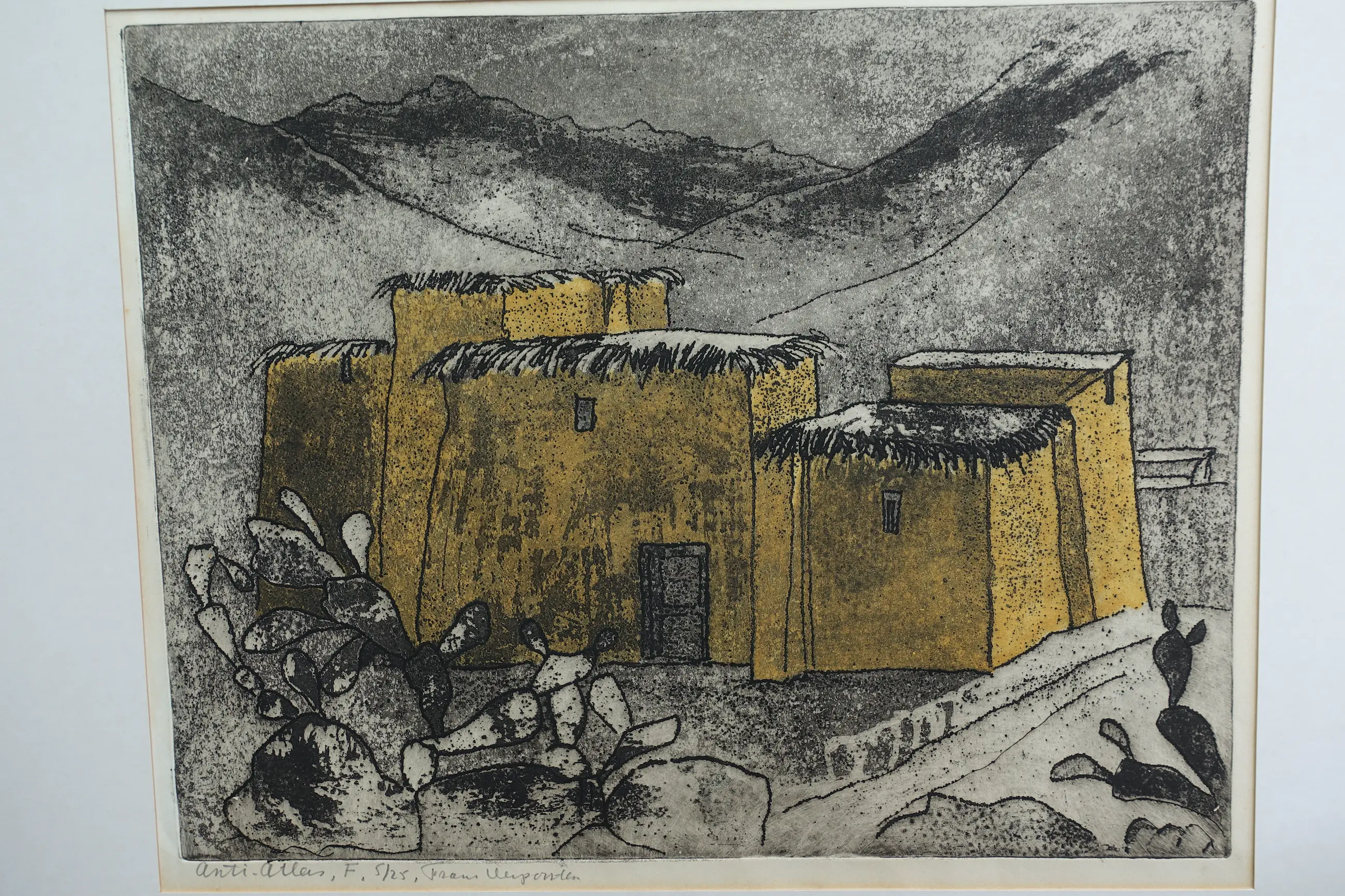 Een krachtige kleurets uit repertoire van reisprenten uit Marokko. Gesigneerd en betiteld met potlood. Zeer goede conditie.