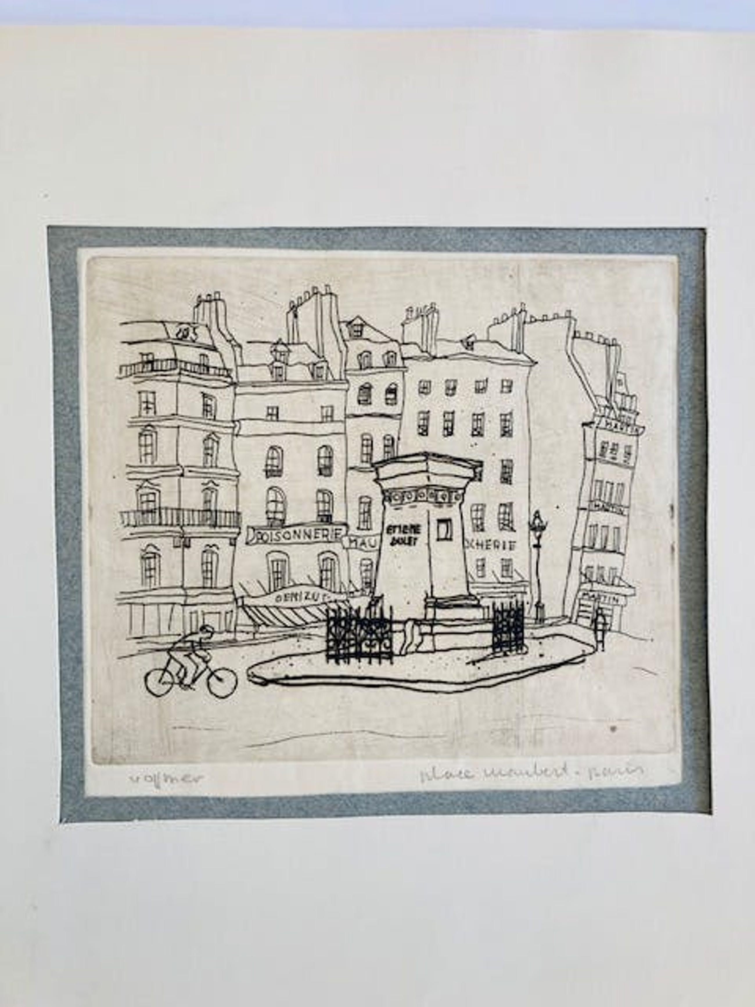 Fraaie ets van Frans Vollmer. het werkje zit in een soort van kader, in de uiterste hoeken van de witranden vastgeplakt.