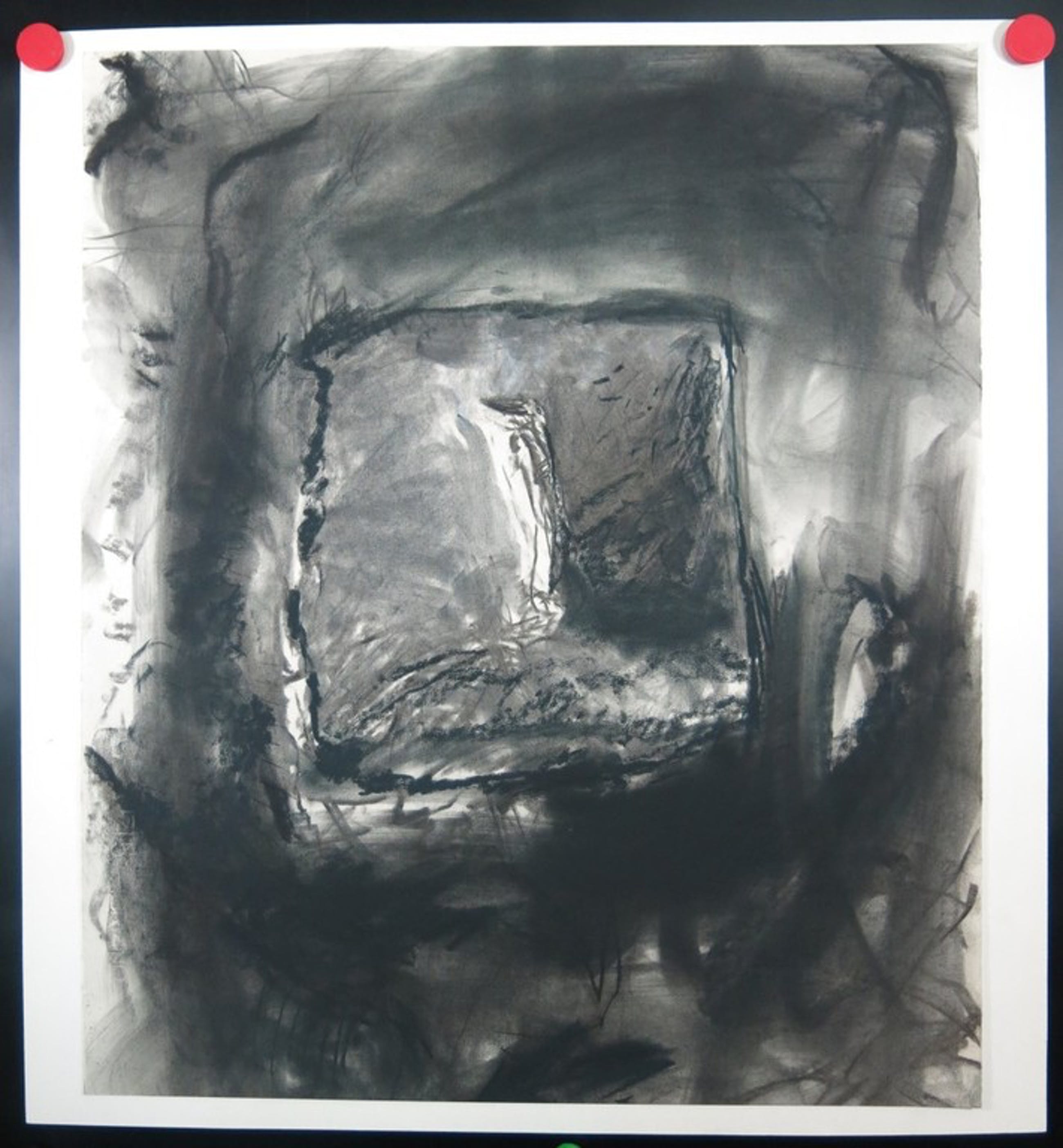 Materiaal: Krijt op geschept papier, bevestigd op onderblad.
