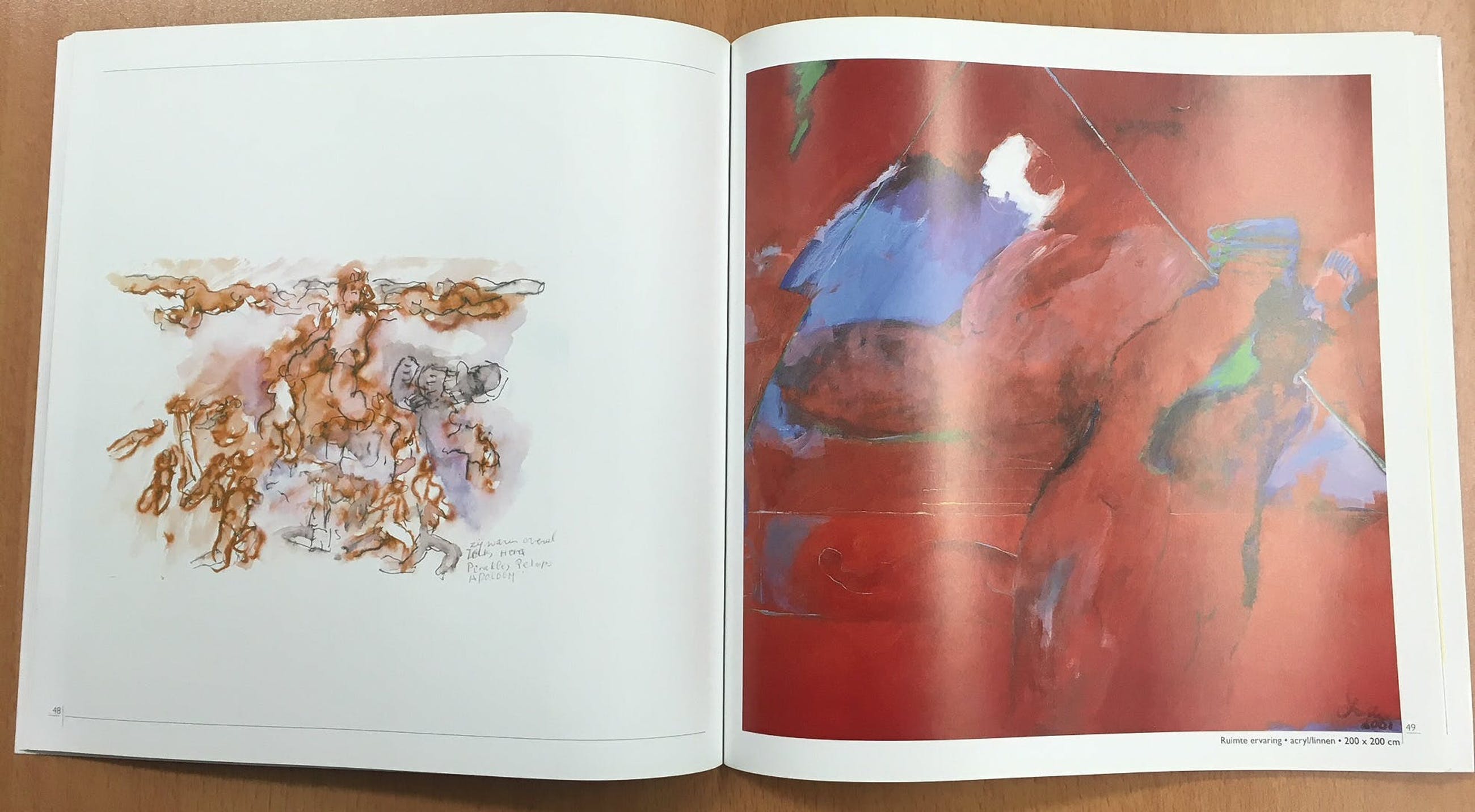 Mooi en zeer groot werk van Franscz Witte, getiteld Maya. De kunstenaar heeft zich tijdens een van zijn vele reizen laten inspireren door de cultuur van de Maya's en de rol die offers daarin speelden. Het doek is in zeer goede staat, gesigneerd en gedateerd 2001. Bij het werk komt een overzichtscatalogus uit 2005.