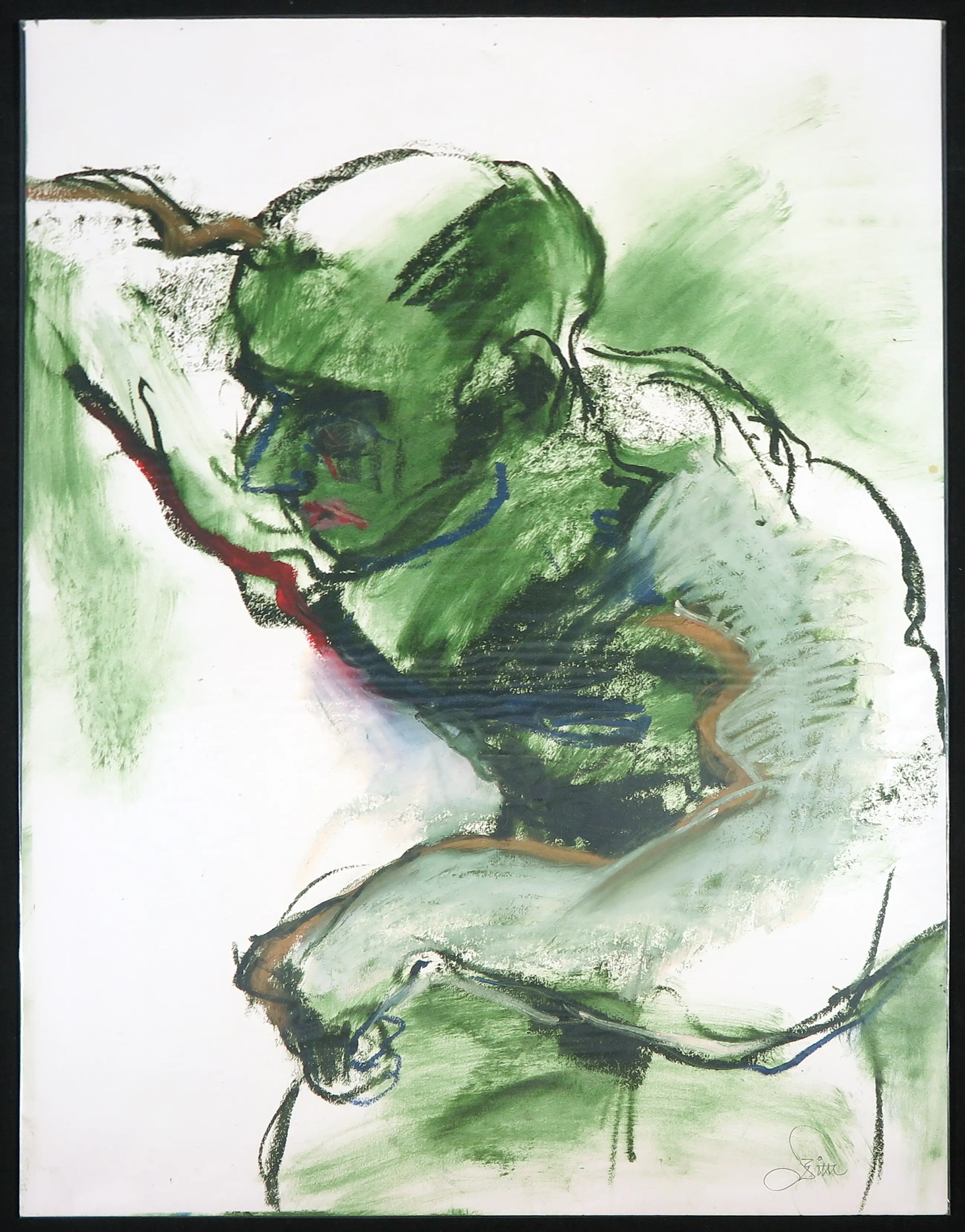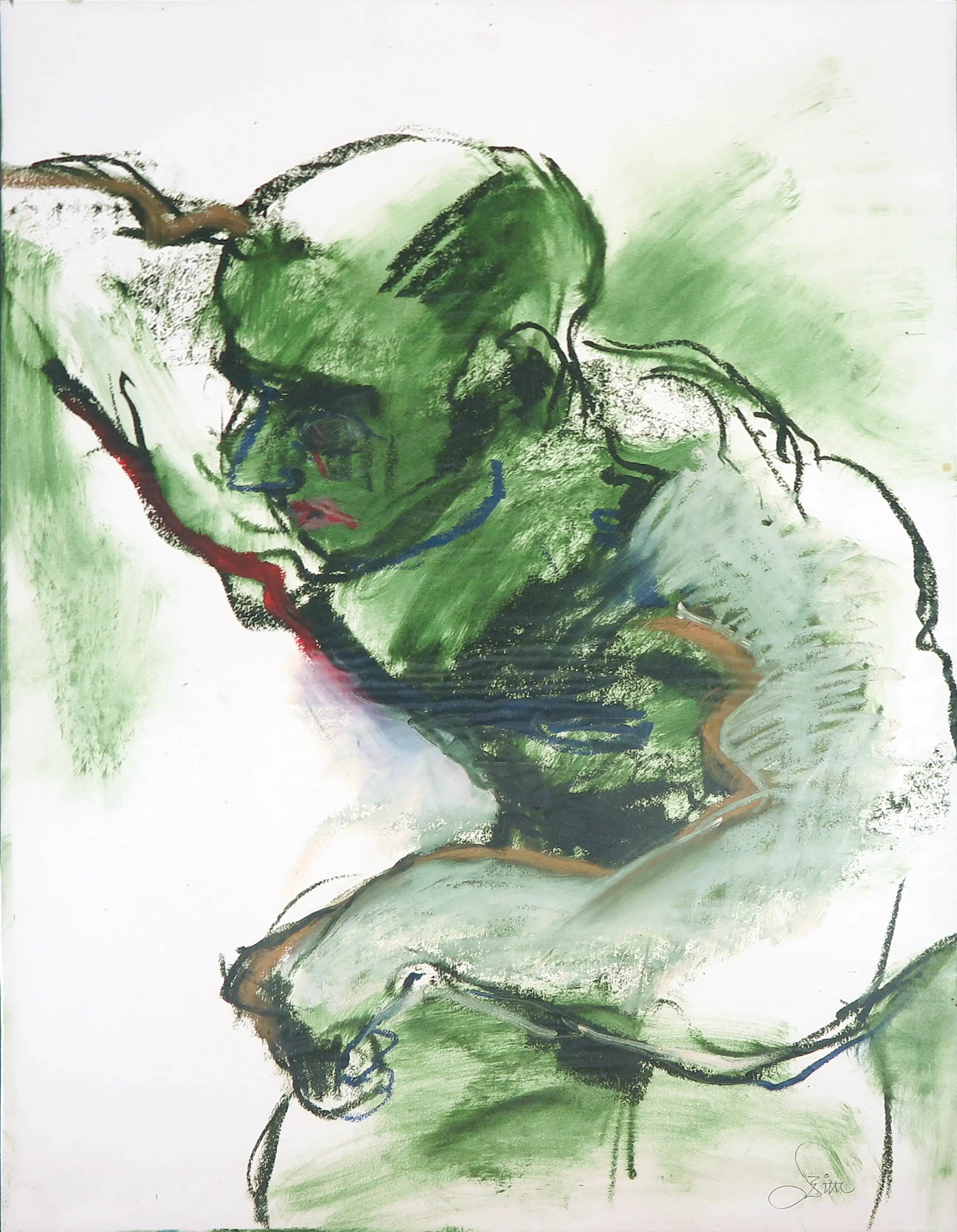 Franscz Witte - Gemengde techniek op papier, Man in groentinten - Verkocht