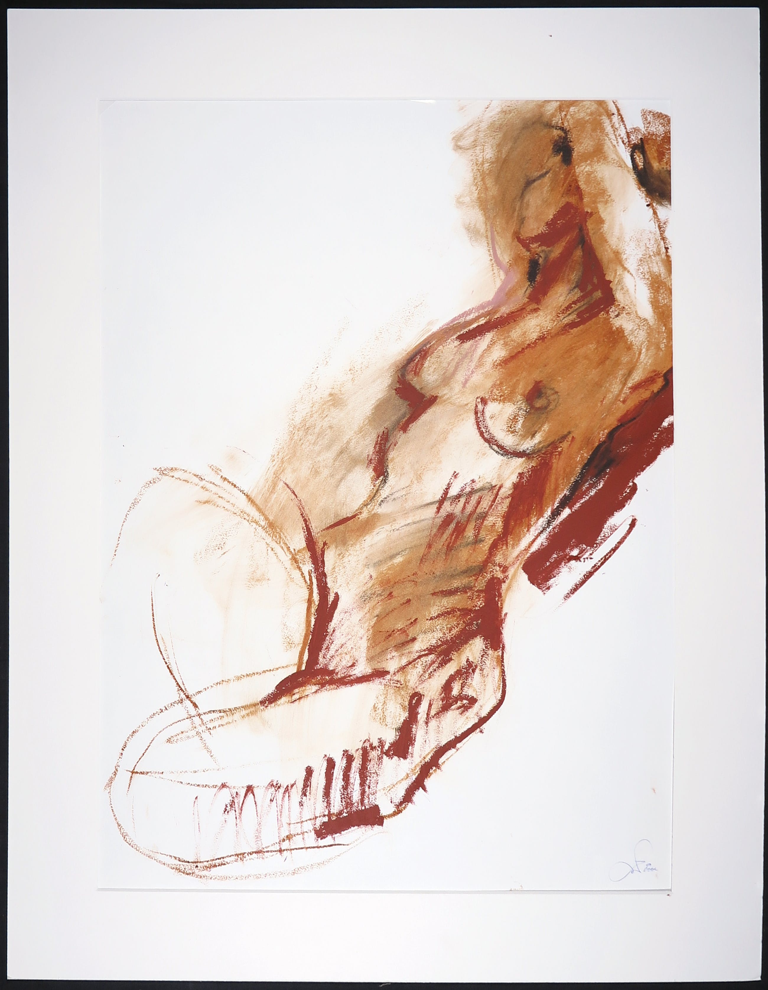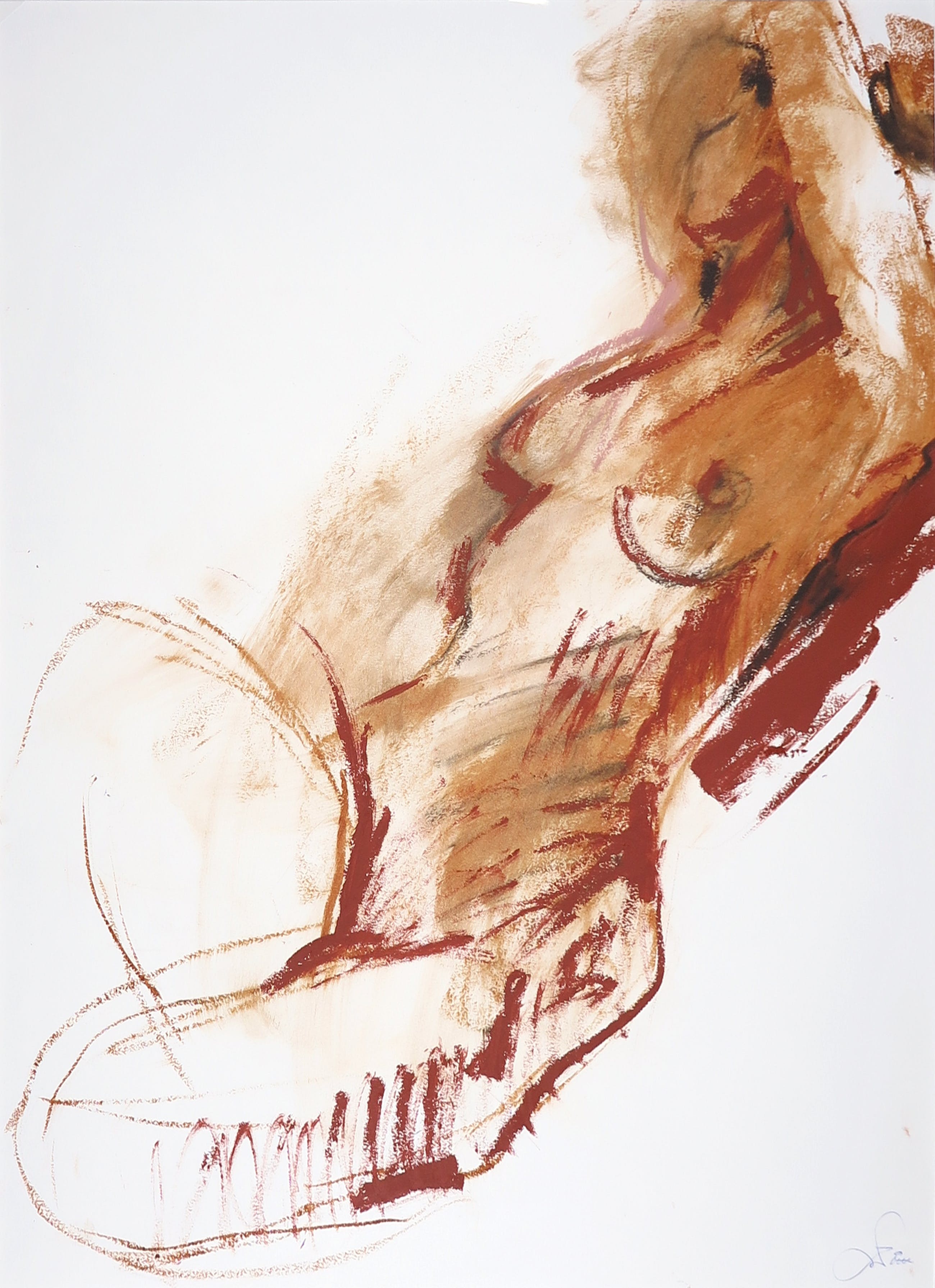 Dit werk bevat gemengde techniek van aquarel en krijt.