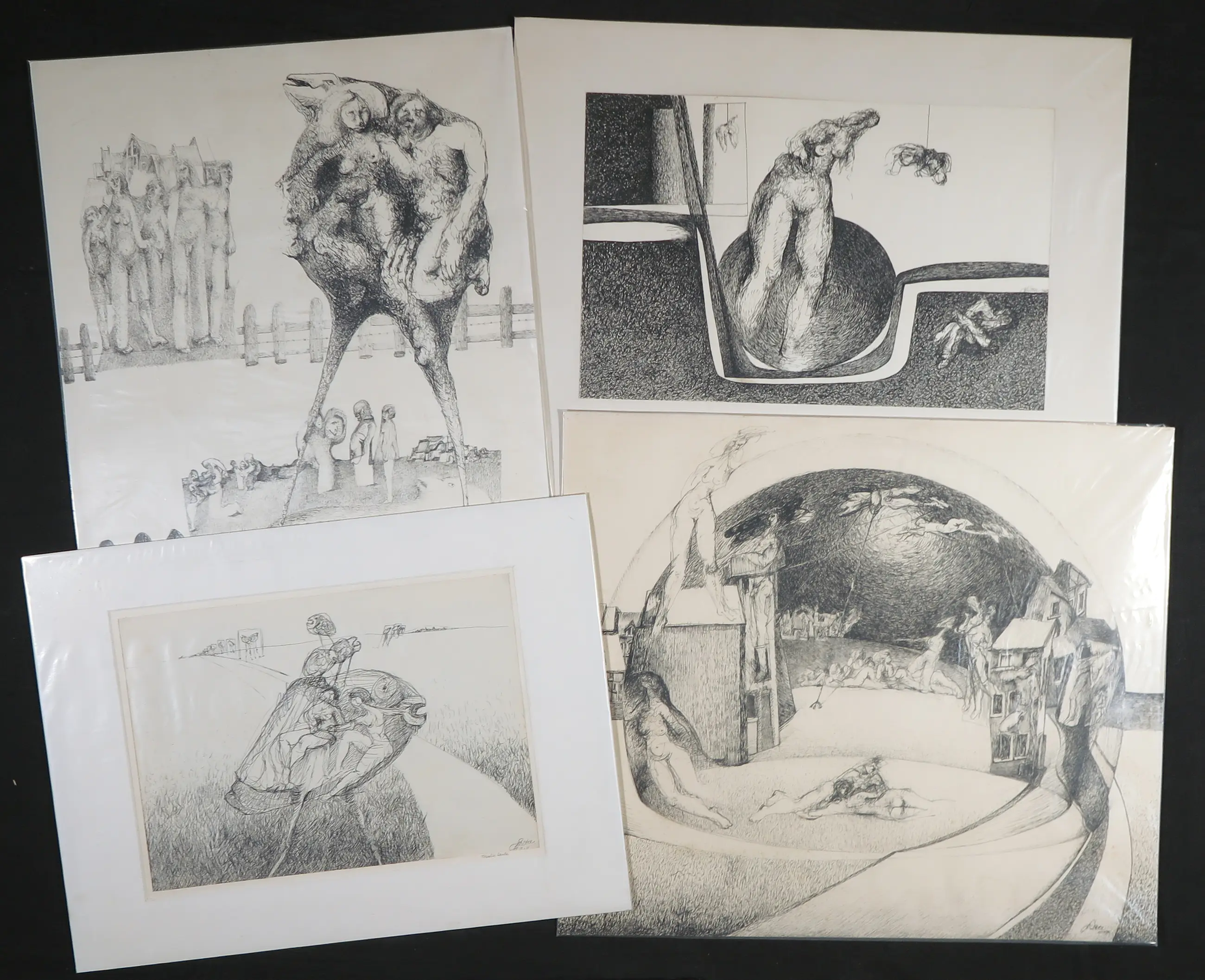 | Iedere tekening heeft wat vergeling/verkleuring en foxing/vlekjes/plekjes in de voorstelling. | |||||||||||