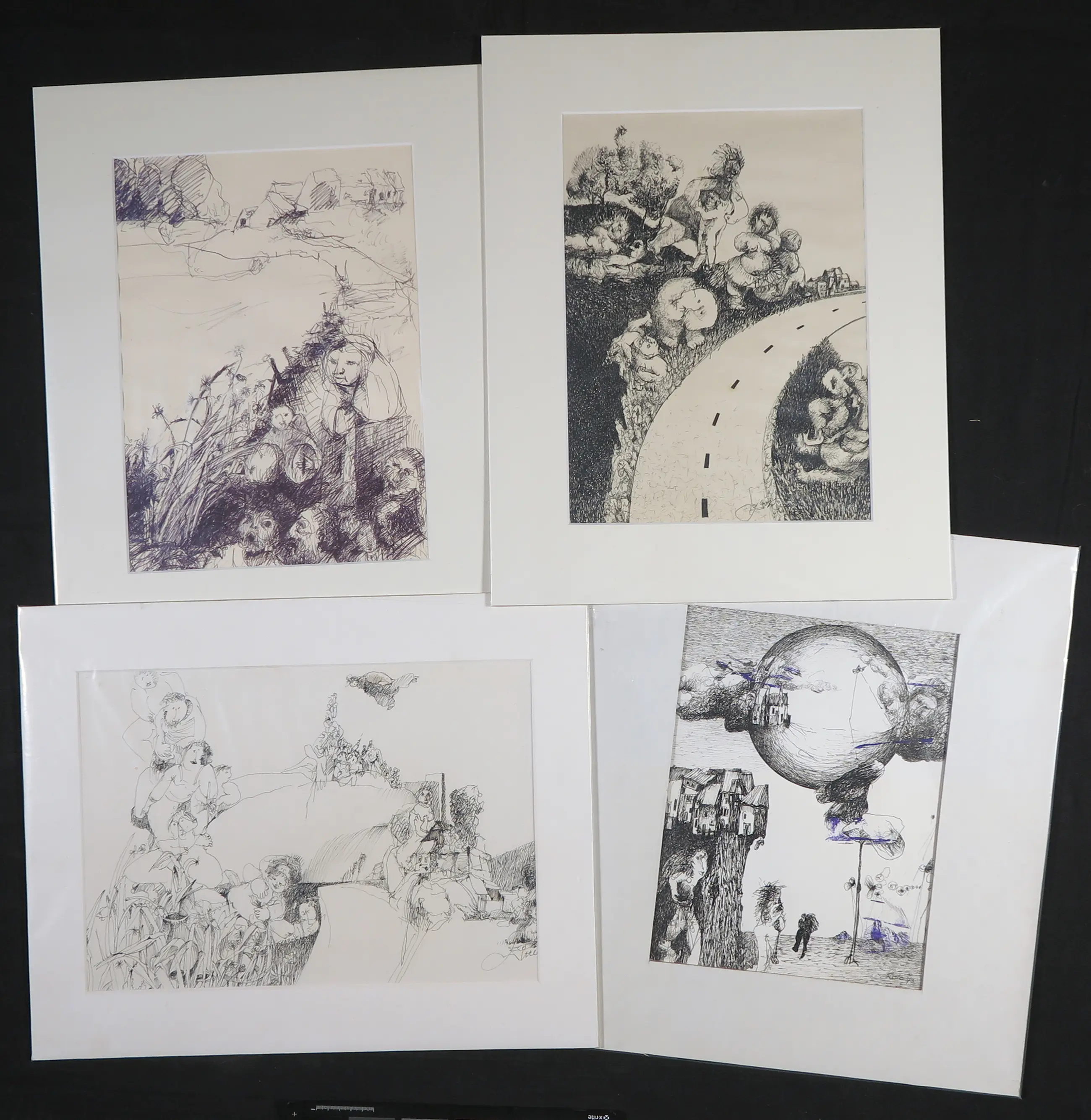 | Goede staat. De tekeningen hebben een paar kleine foxing plekjes. De passe-partouts zijn wat vlekkerig/verouderd. | |||||||||||