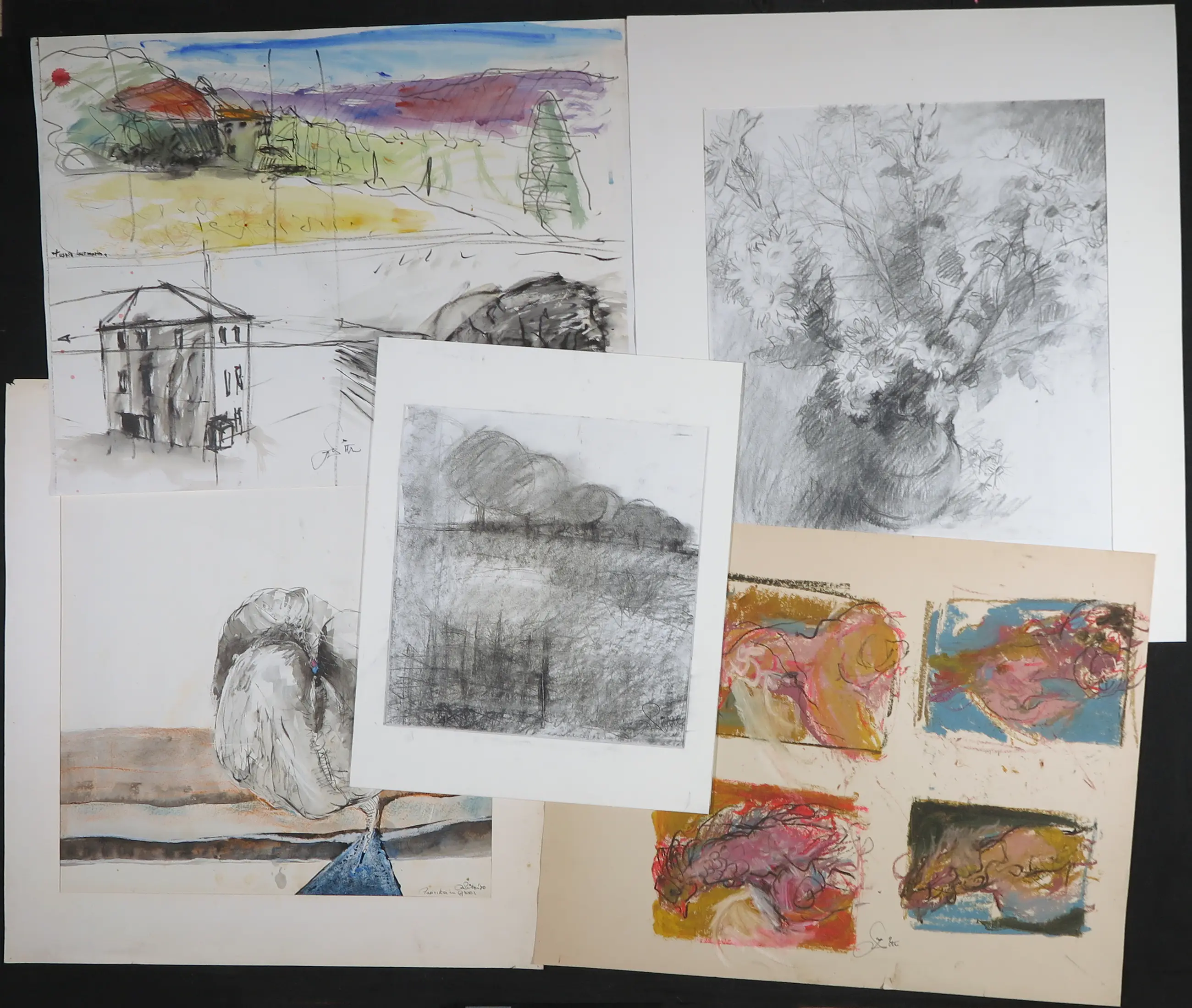 De tekeningen en passe-partouts zijn in matige conditie. Kreukeltjes, verkleuring, vergeling, vlekjes, foxing, veegjes, scheurtjes, smoezeligheid. | |||||||||||
