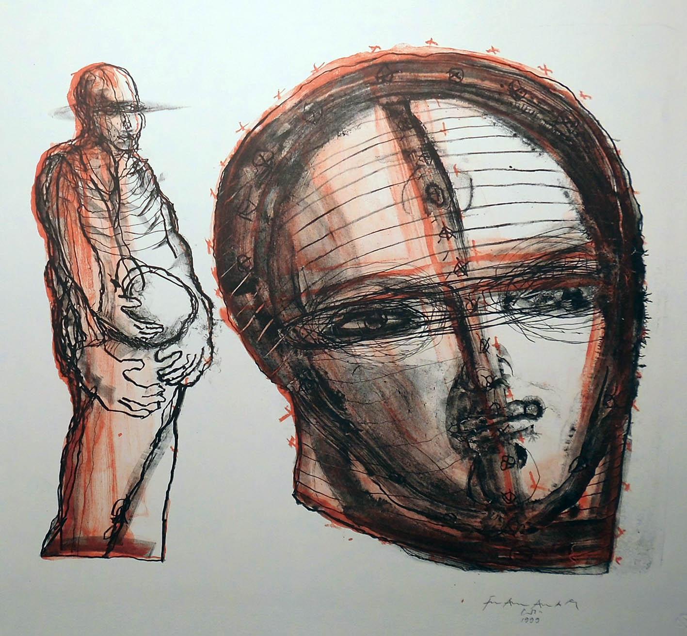 1993 erste Linolschnitte 1988 Arbeitsaufenthalt in