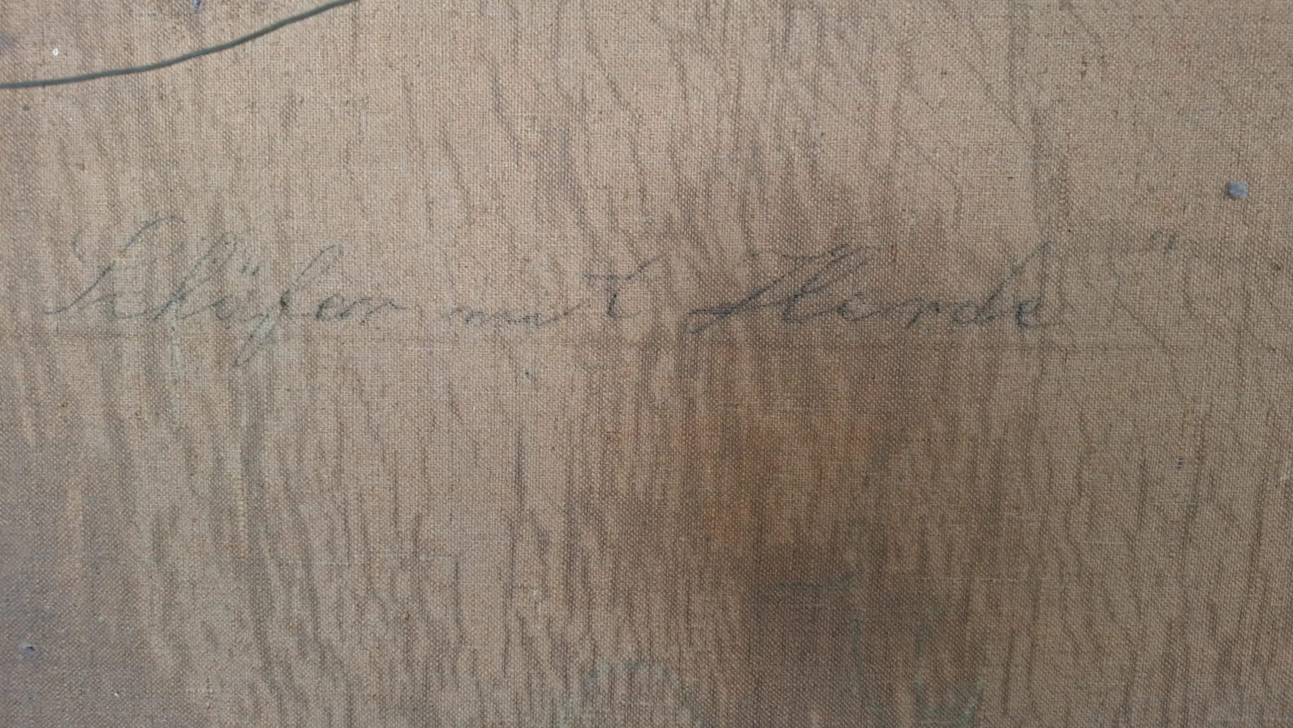 De handgeschreven oorspronkelijke titel door de kunstenaar zelf: 'Schäfer mit Herde'.