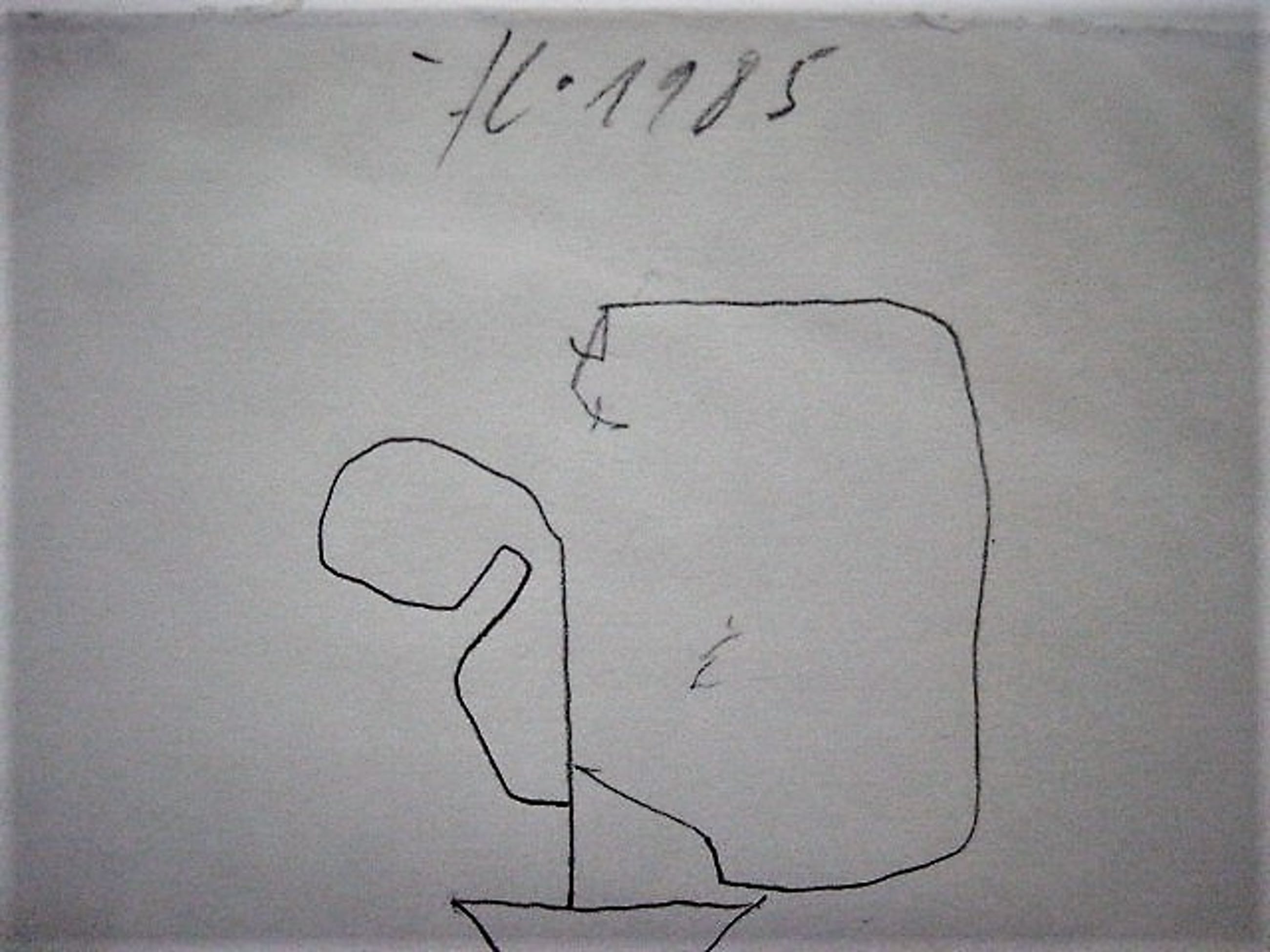 - origineel 1985, zogenaamde "telefoontekening" op papier van de bekende Zwitserse naoorlogse modernist Franz Eggenschwiller (1930-2000). Afmeting blad: 23 x 27 cm. Beeldformaat 14,5 x 21 cm. De tekening is in goede staat en gesigneerd en gedateerd in potlood midden boven - kopie! Niet ingelijste oorsprong: Bless Art Collection