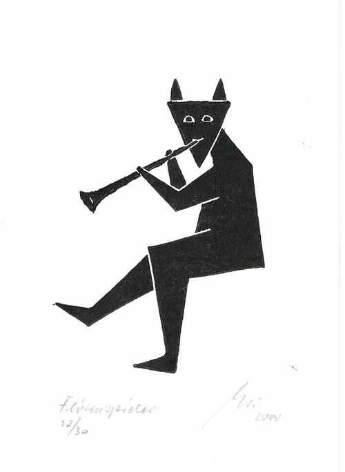 Flötenspieler - original Linolschnitt von 2000 Werknummer 853 - Blattgröße 10,5 x 15 cm - Druckgröße 6,5 x 9,5 cm - Auflage nur 30 Stück - neu - vom Künstler beschriftet, nummeriert, signiert und per Hand gedruckt --- versicherter Versand Deutschland: 6,00 Euro, weltweit: 10,00 Euro --- keine Rücknahme, da Privatverkauf