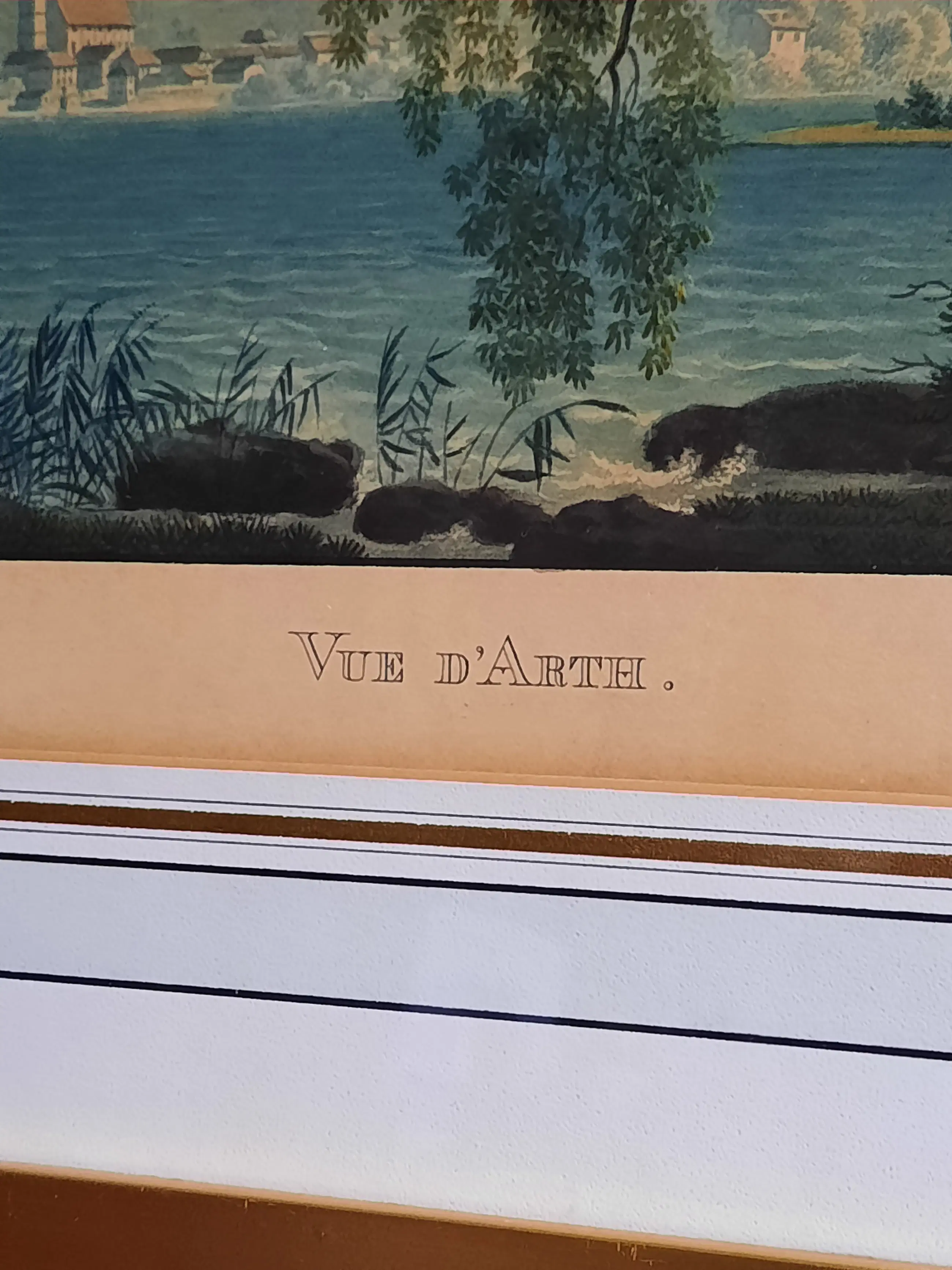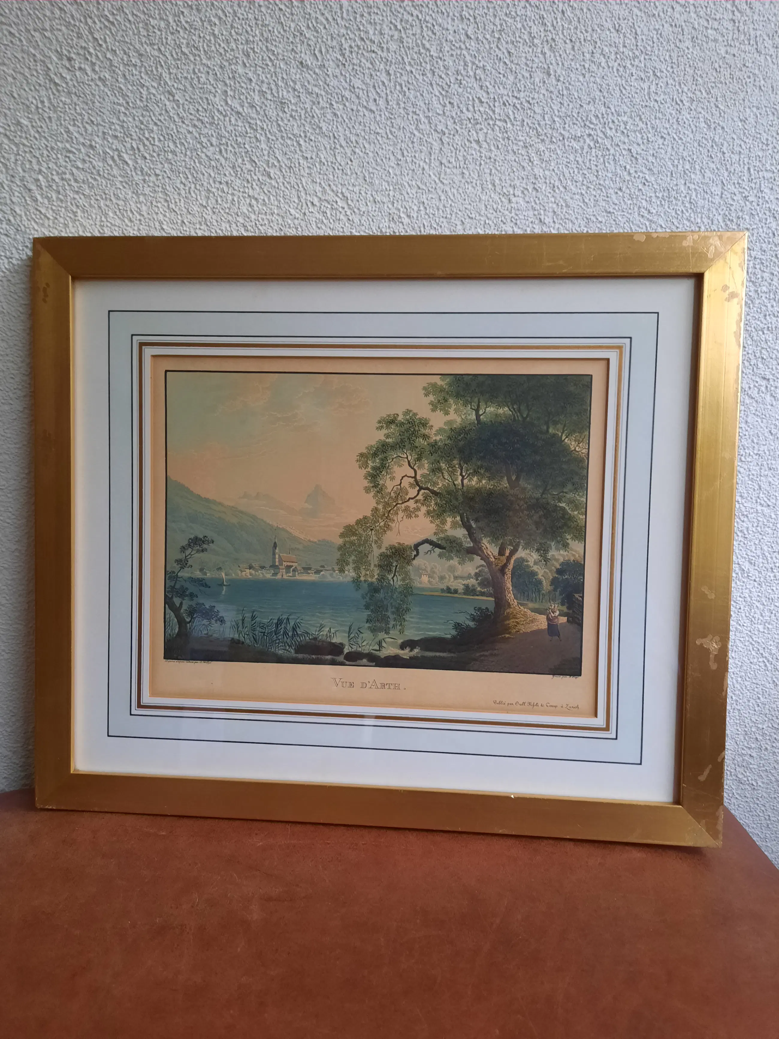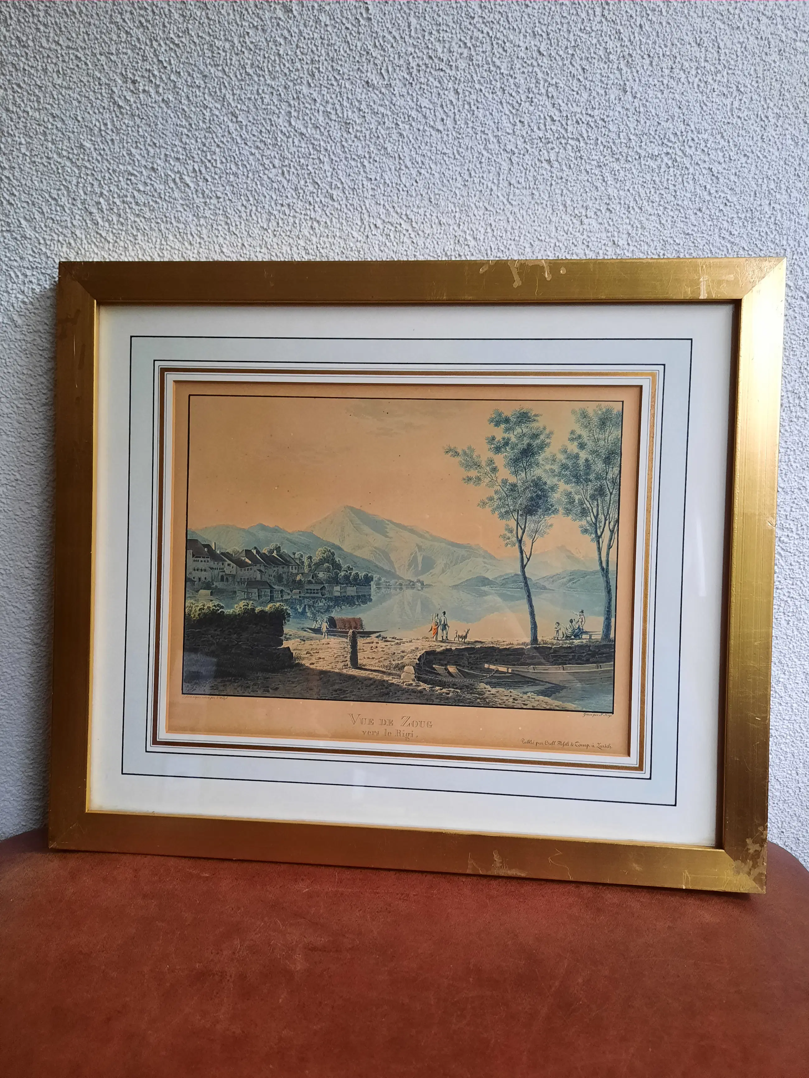 Lot van 5 ingelijste gravures van de zwitser Franz Hegi. - Vue de Wallenstadt - Vue D'Arth - Vue de Wesen - Vue de Zoug - Vue du Lac D'Aegeri