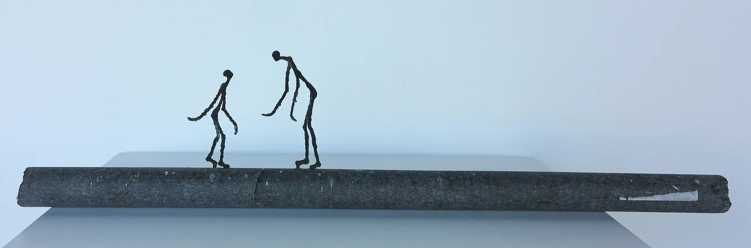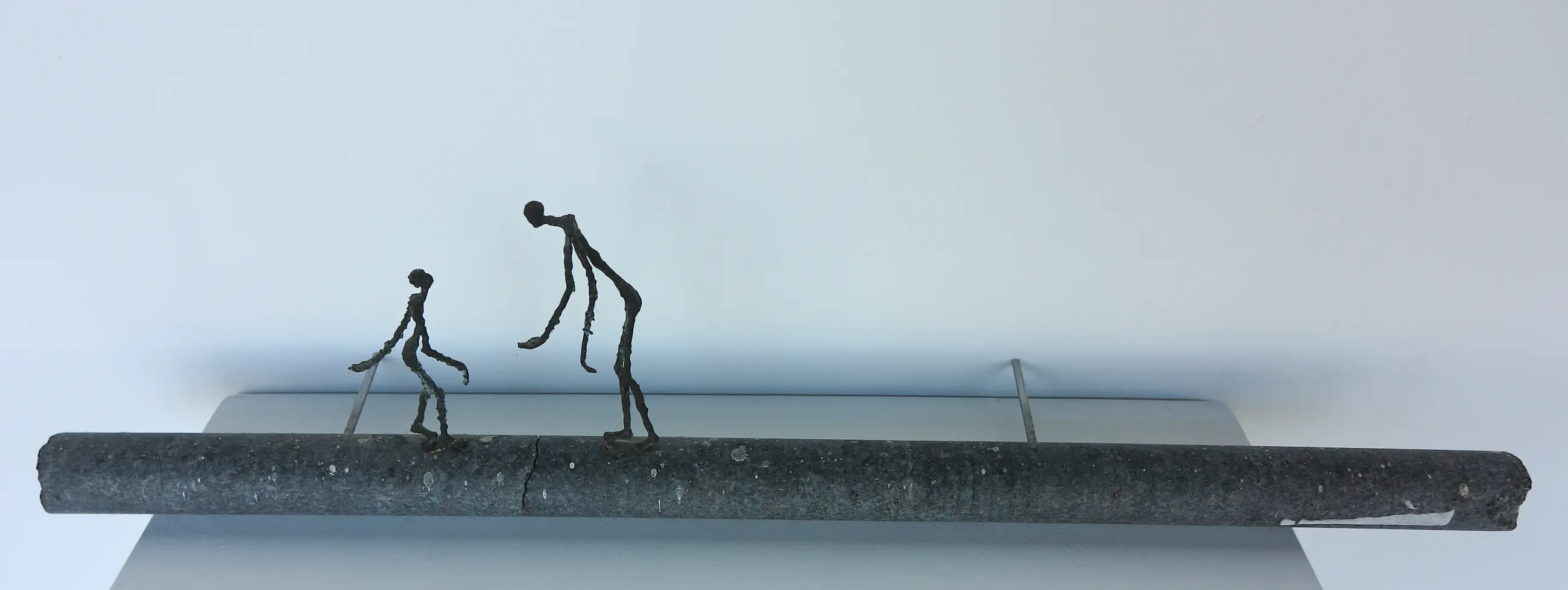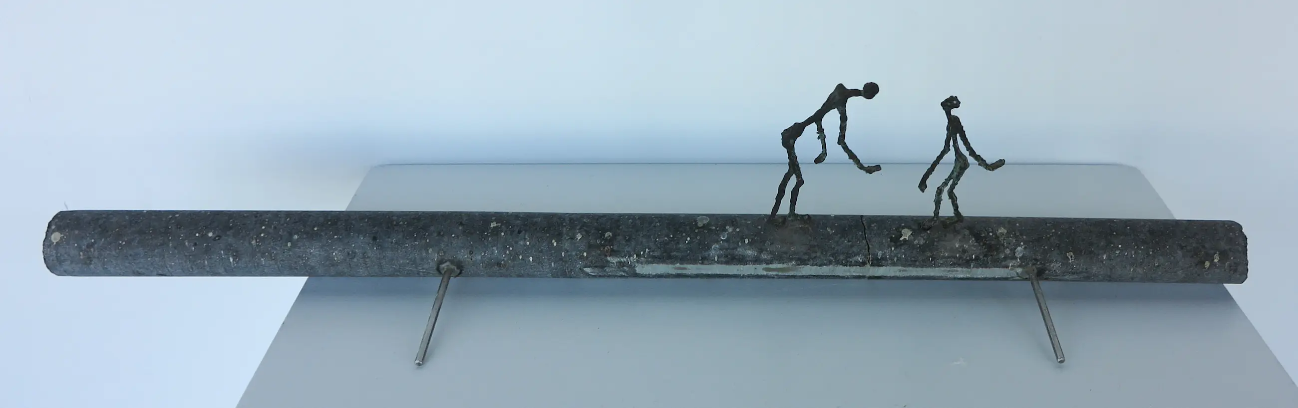 | Stenen stang is tussen de twee figuren gebroken geweest, onduidelijk of dit de intentie van de kunstenaar is geweest (vermoedelijk wel aan achterzijde te zien). Stickerresten aanwezig. | |