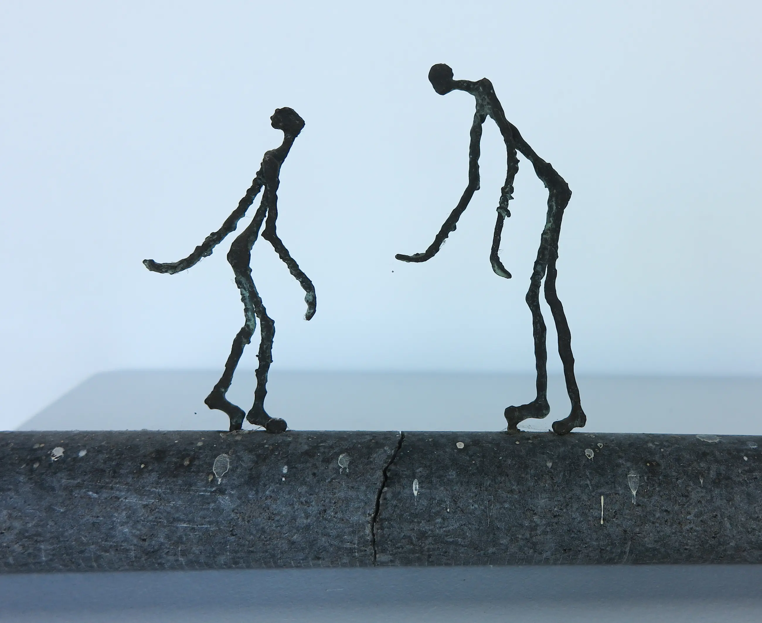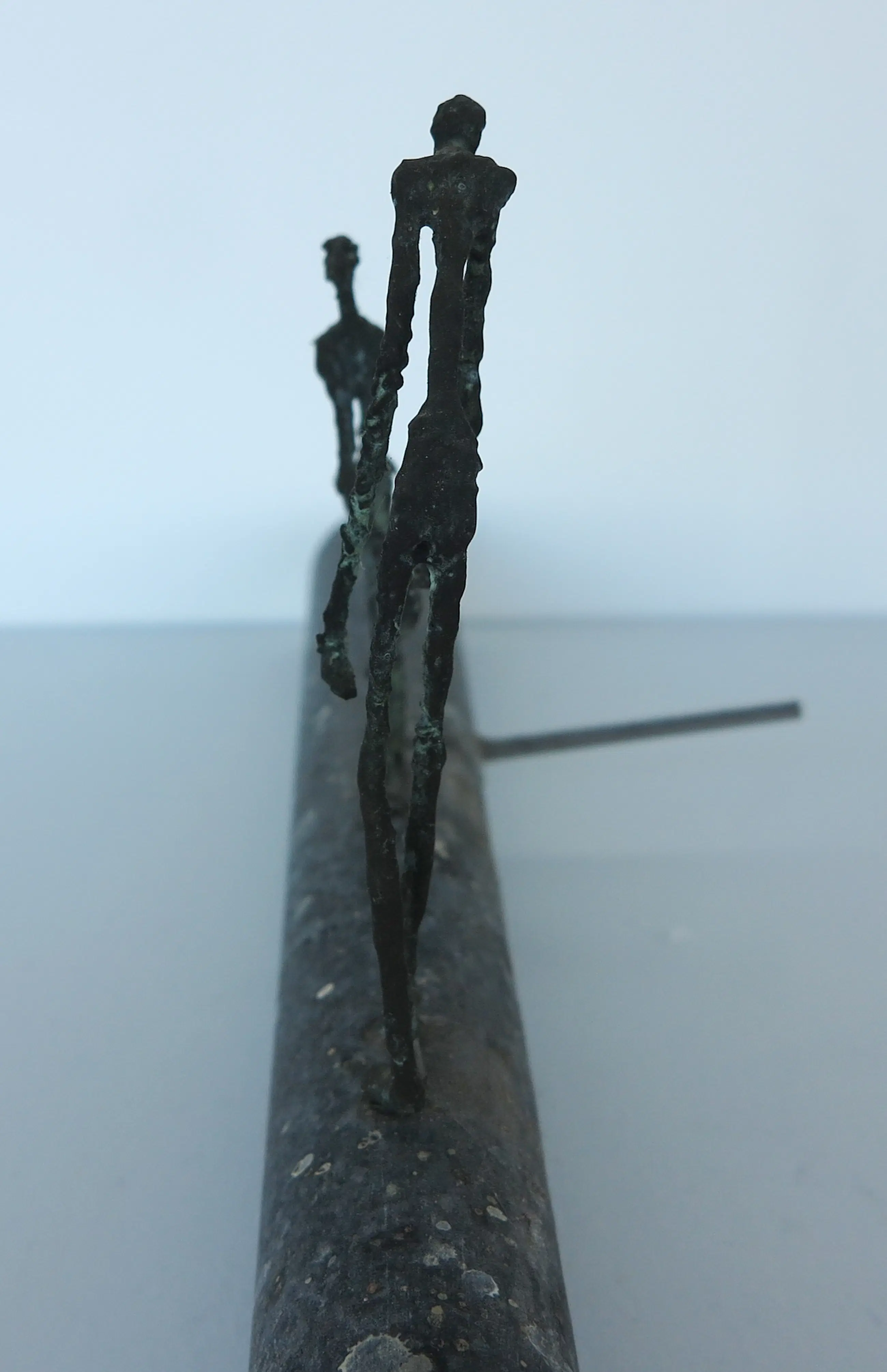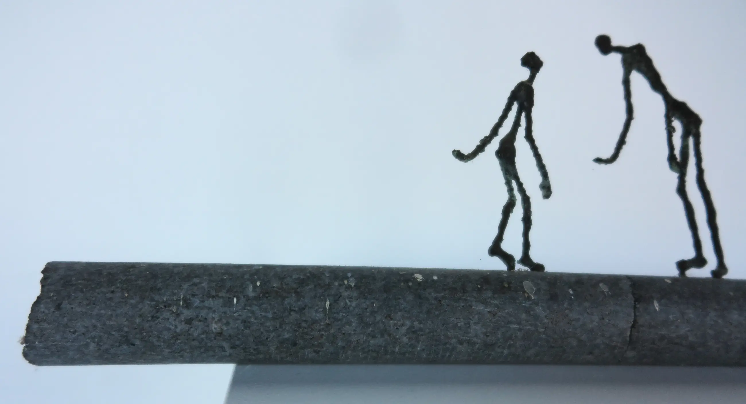 | Stenen stang is tussen de twee figuren gebroken geweest, onduidelijk of dit de intentie van de kunstenaar is geweest (vermoedelijk wel aan achterzijde te zien). Stickerresten aanwezig. | |