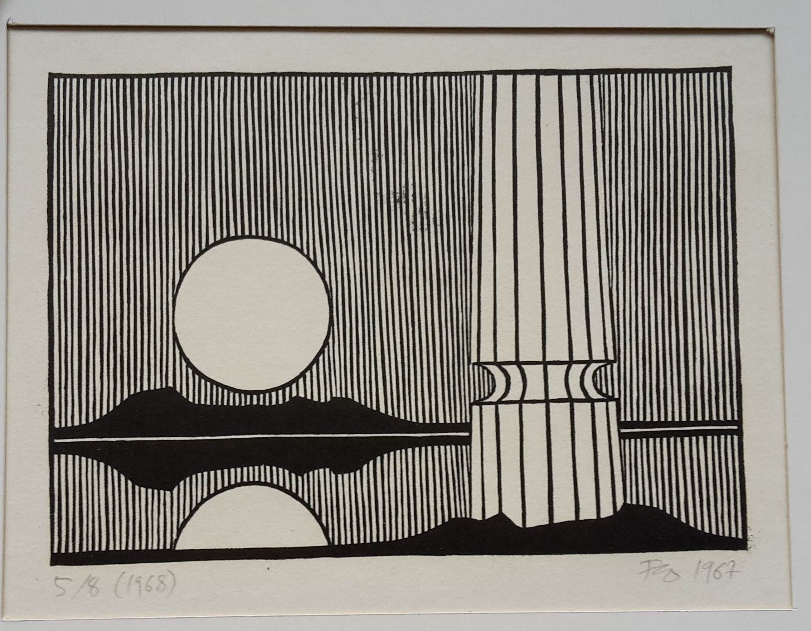 houtsnede, beeld in passepartout 11,5 x 17,8 cm, blad 15 x 21,5 cm. tekening gemaakt in 1967; in kleine oplage gedrukt in 1968; dit is nr. 5 van 8.