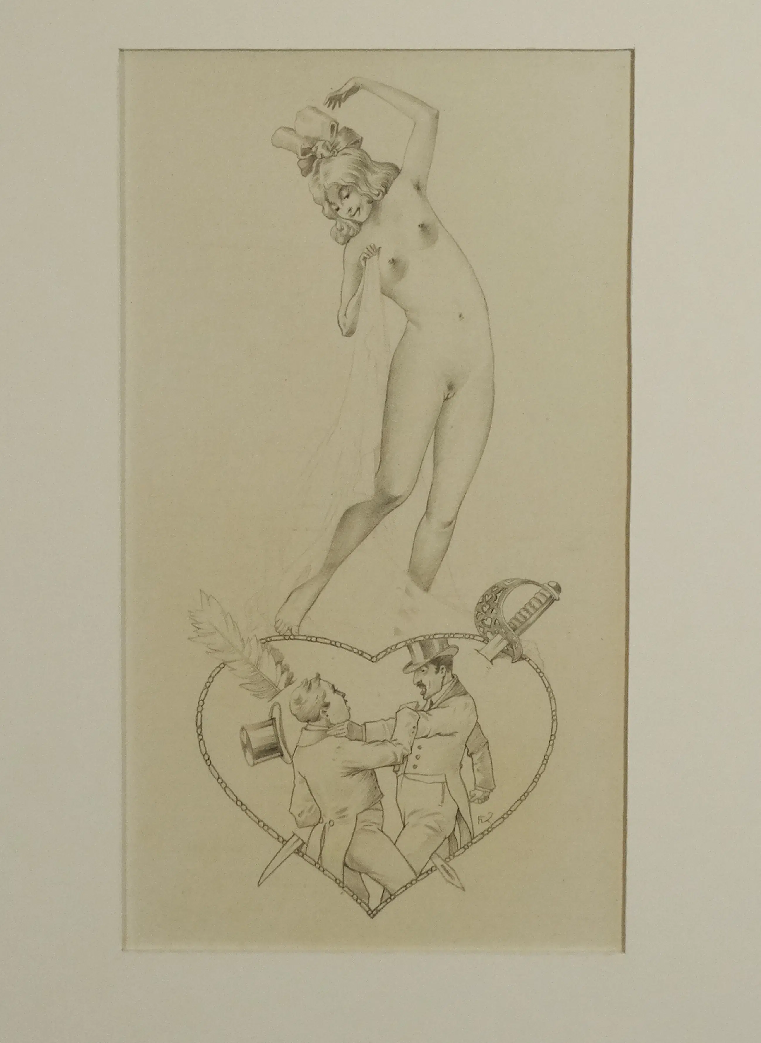 Zeer fijn getekend erotisch motief van de Oostenrijkse kunstenaar Franz Kuna (1881-1943).