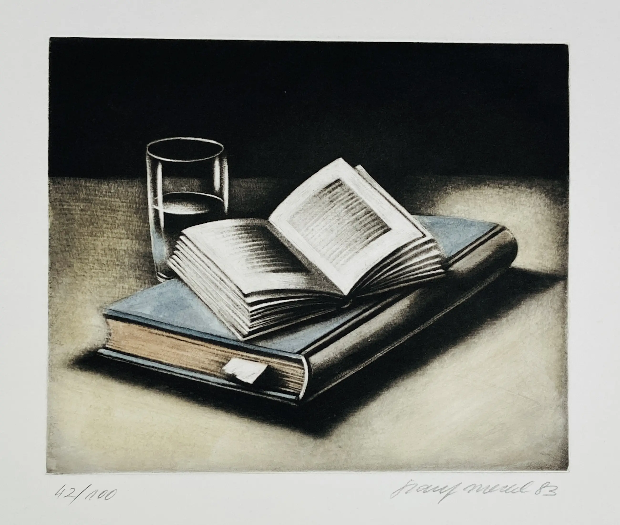 Een fraaie stilleven ets van de Duitse kunstenaar Franz Meckl. Het werk verkeert in uitstekende conditie en is handgesigneerd door de kunstenaar.