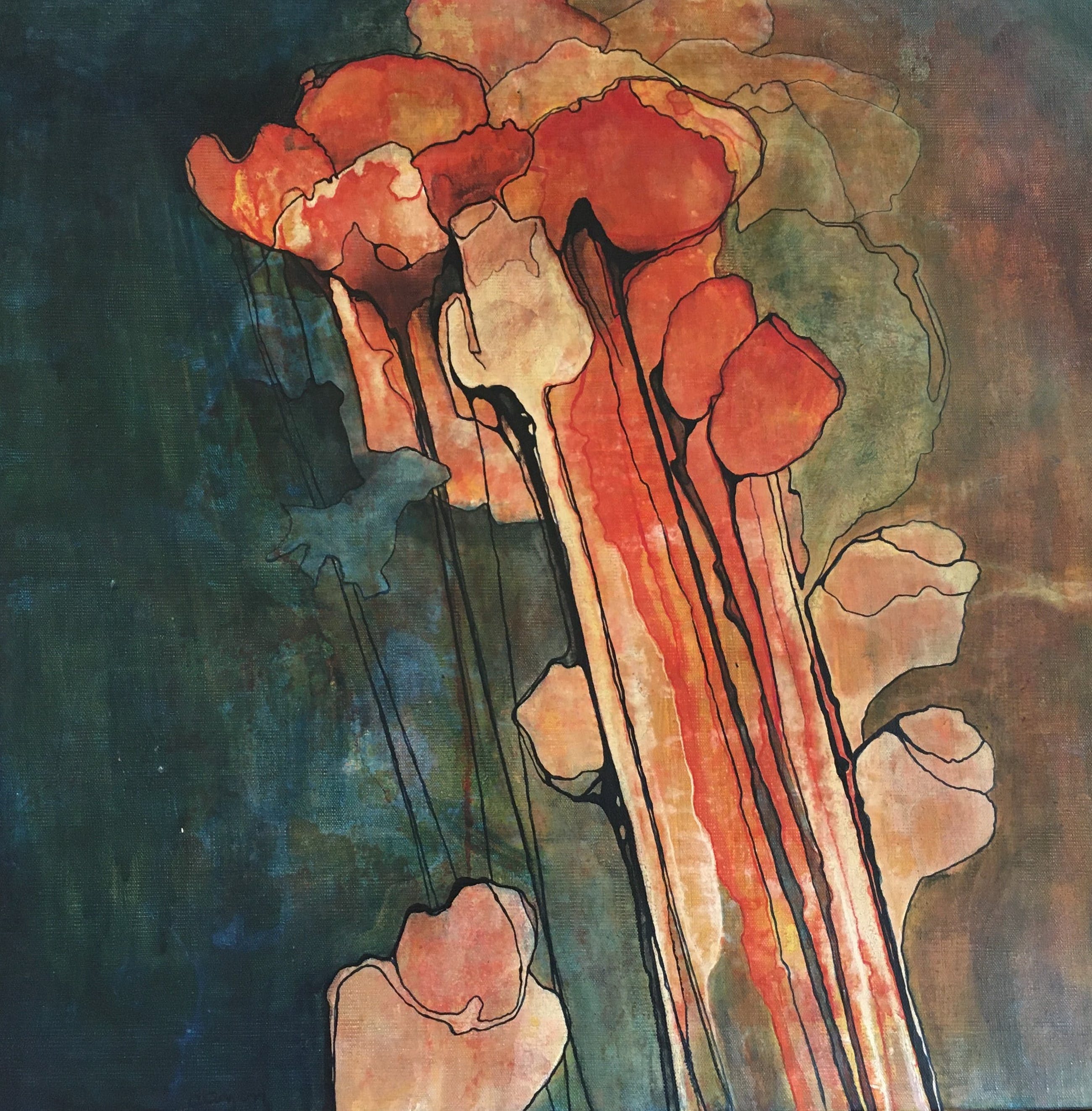 Het werk is een modern bloemstilleven. Tegelijkertijd zijn de bloemen verregaand geabstraheerd.