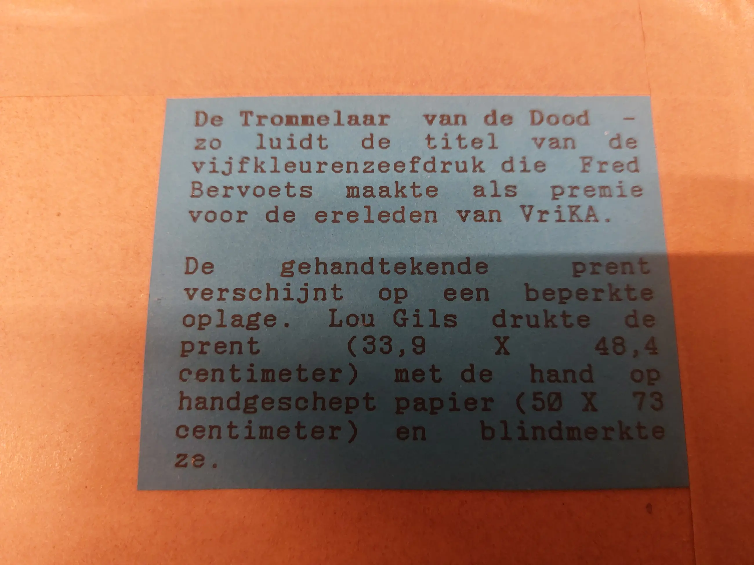 5 kleurenzeefdruk. Premie voor de ereleden van VriKA. Lou Gils drukte ze met de hand op handgeschept papier en blindmerkte ze.