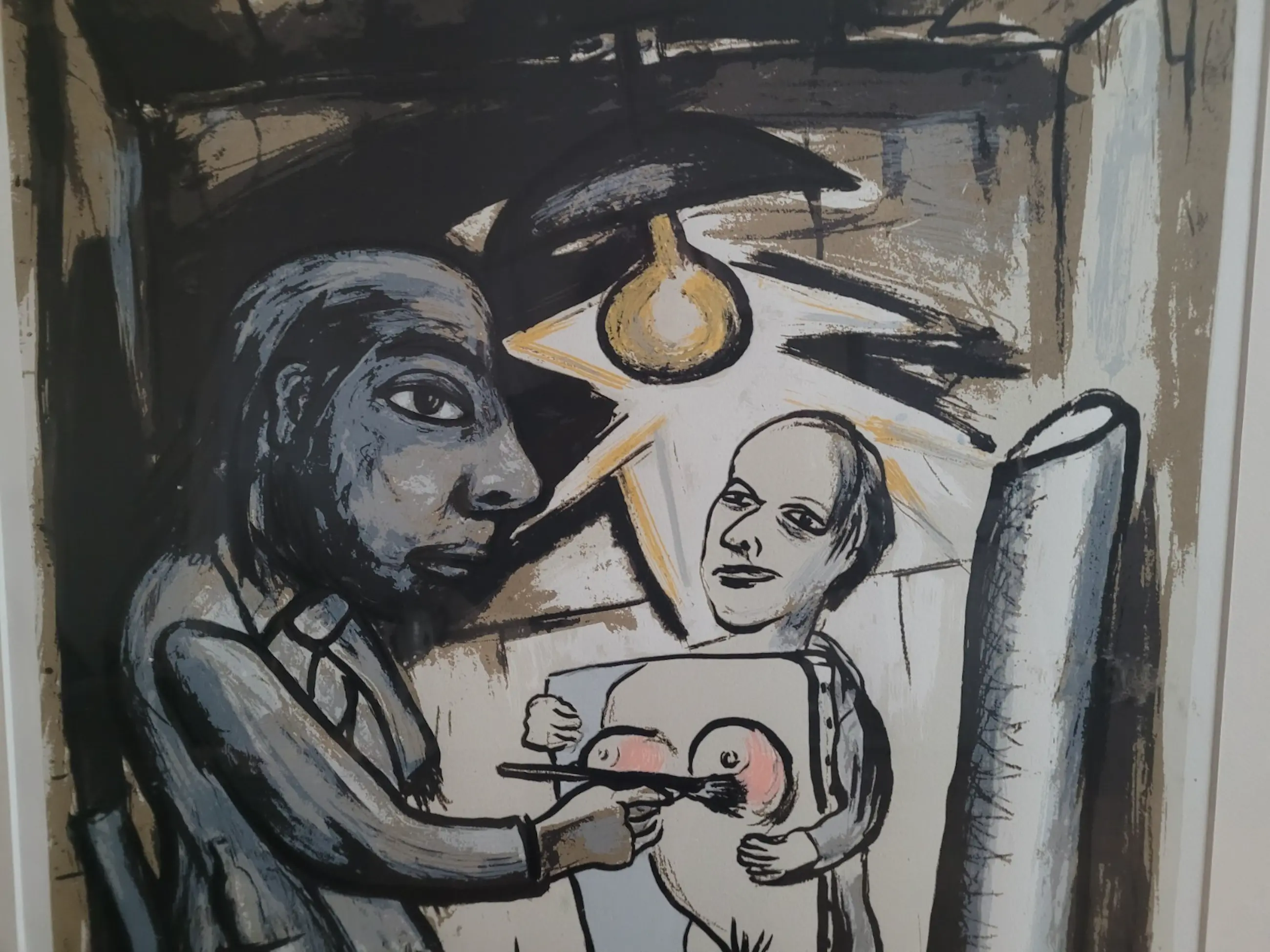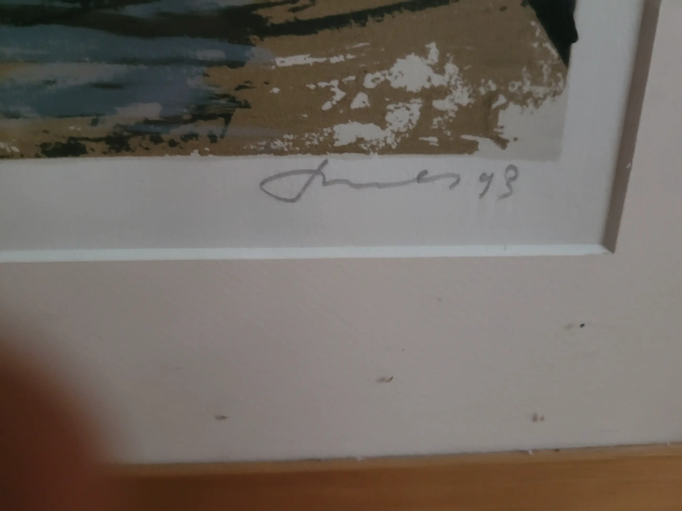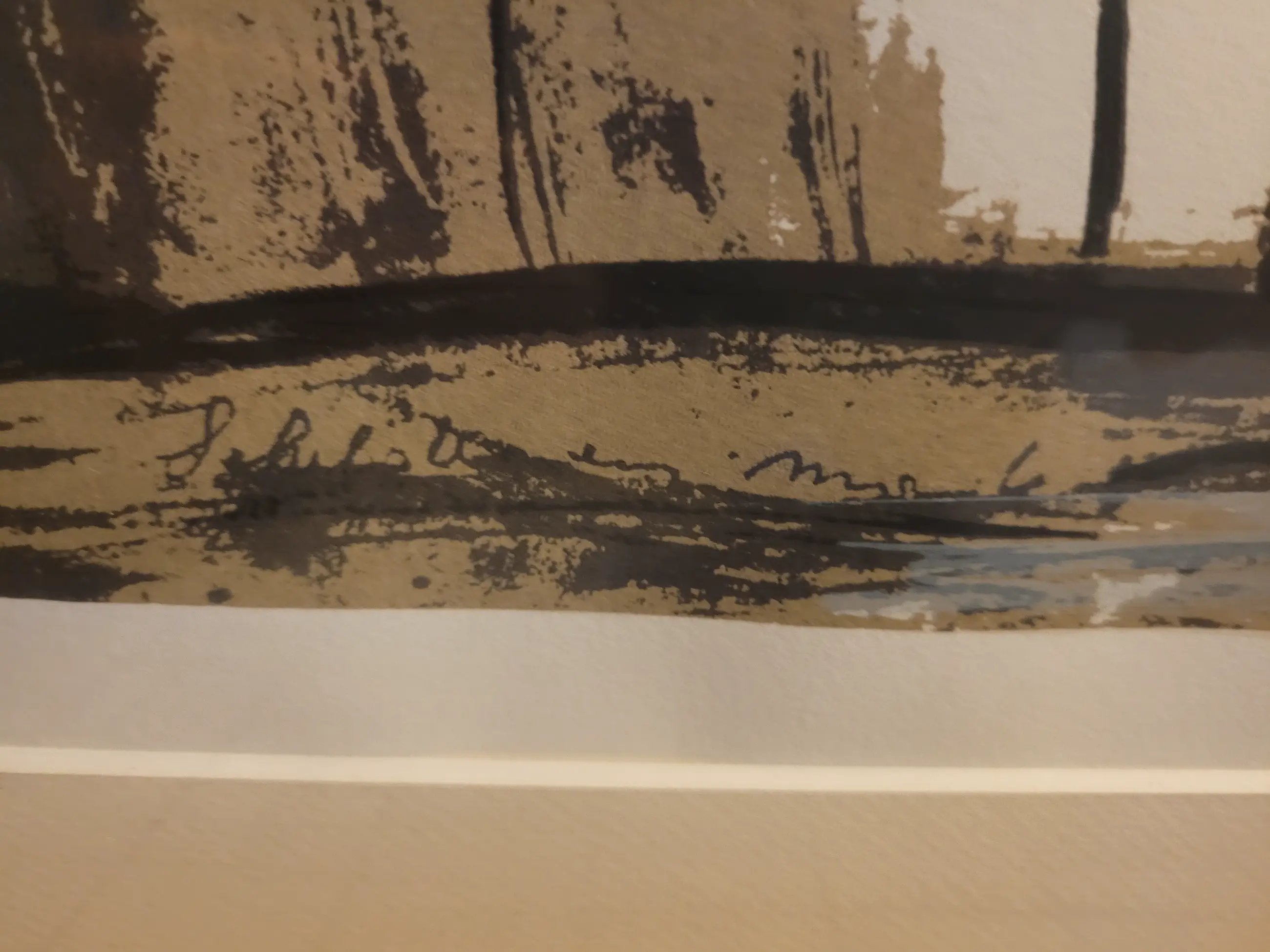 werk in perfecte staat, ingelijst met glas; de lijst vertoont een paar gebruikerssporen aan de linkerkant, zie foto's. verzending binnen België kan besproken worden, buiten België te groot voor reguliere pakketpost. Onderaan in het midden staat vermoedelijk de naam van het werk, maar kan het niet ontcijferen.