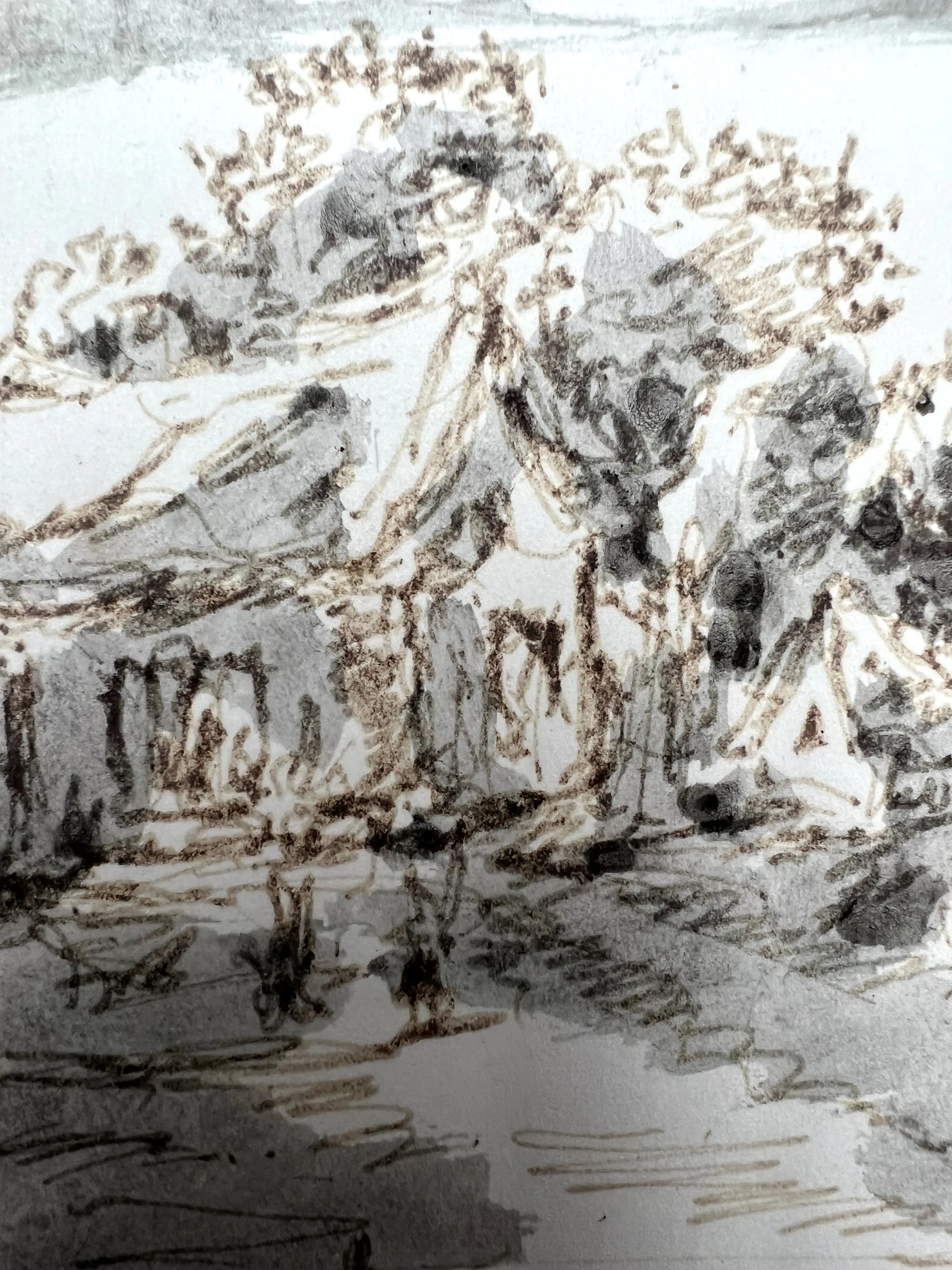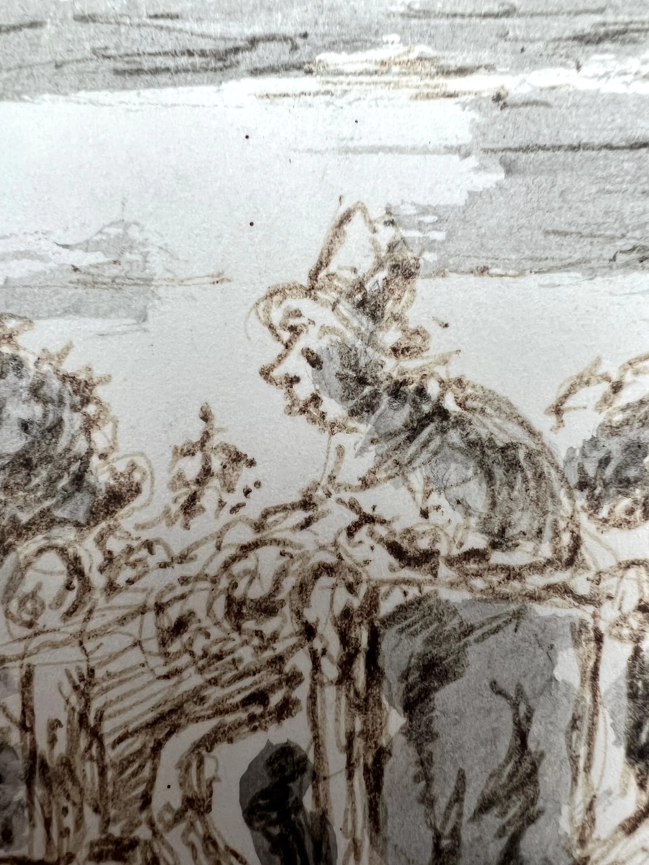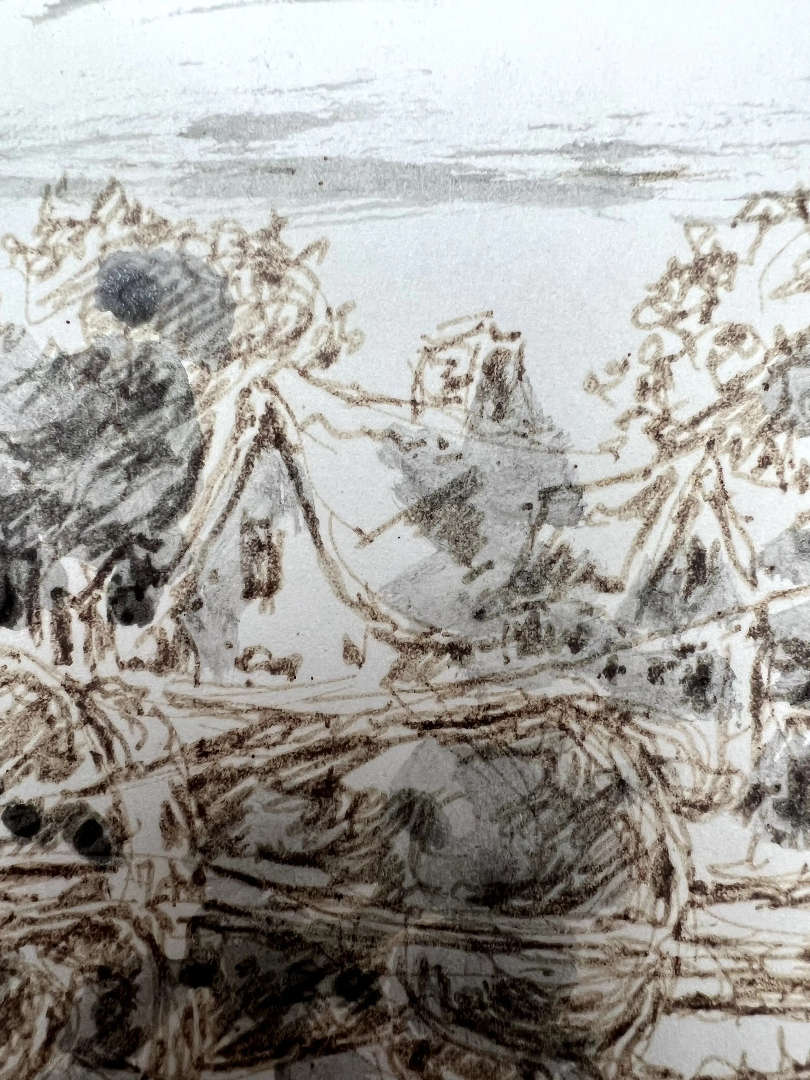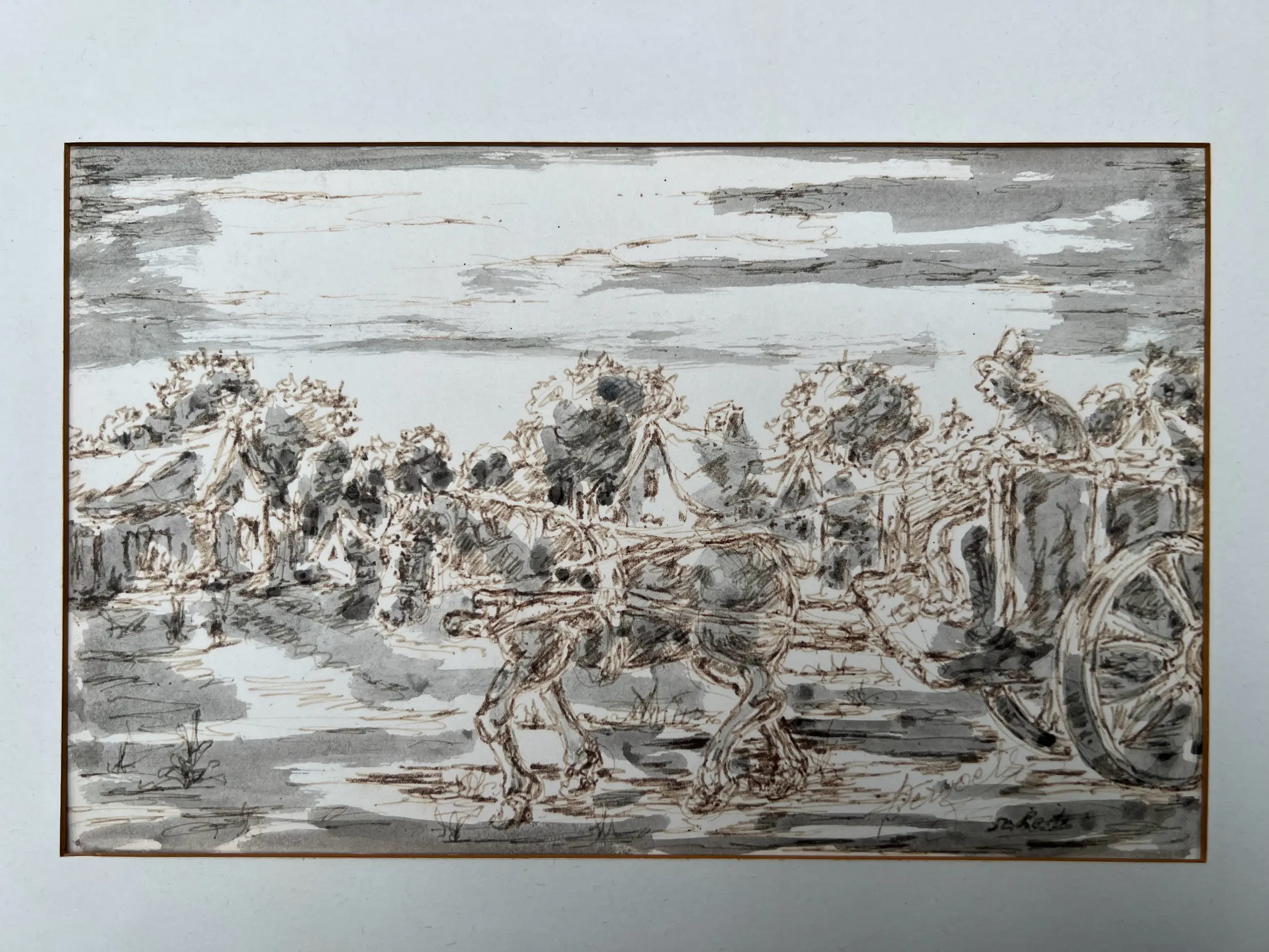 Geen drukwerk, originele schets. Vermoedelijk een vroeg werk van Fred Bervoets. Onder het signatuur staat "Schets" geschreven Heeft iets weg van het werk van Alfred Ost; ze komen beide uit het Belgische Zwijndrecht.