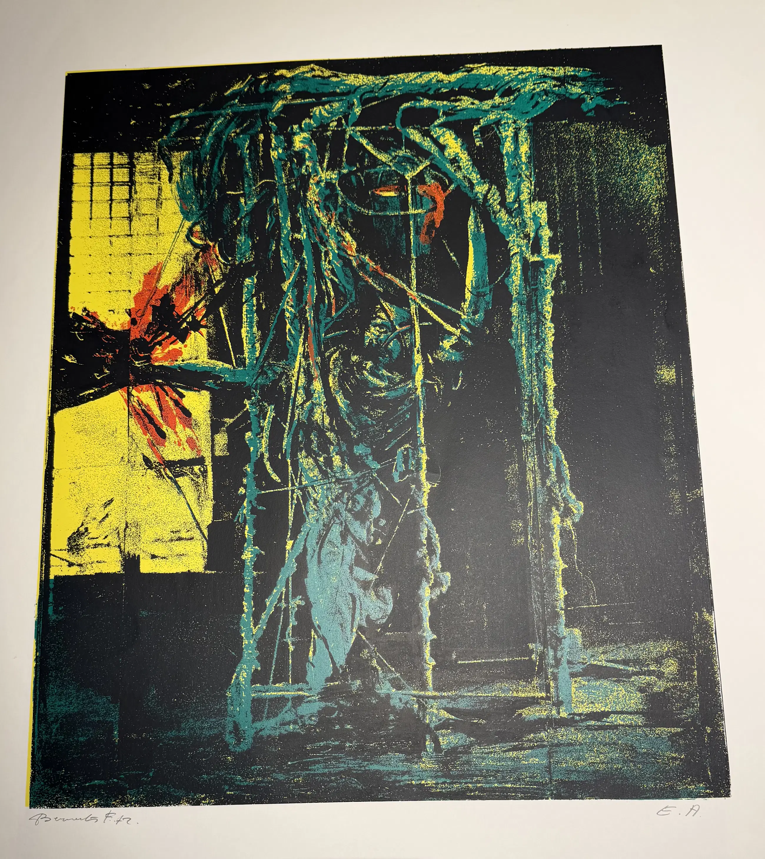 Fred Bervoets Zelfportret Eerste afdruk Stempel Roger Vandaele zeefdruk