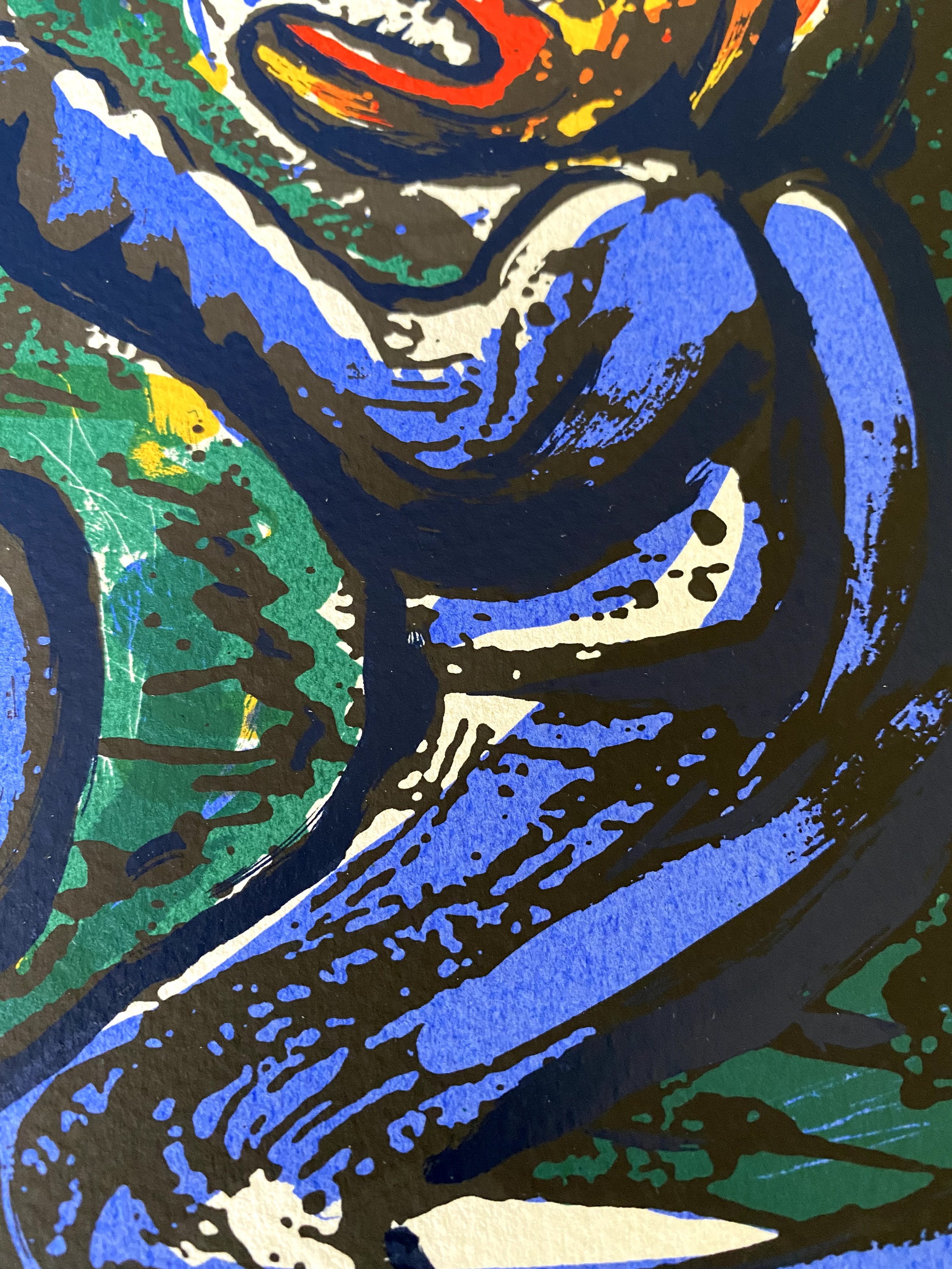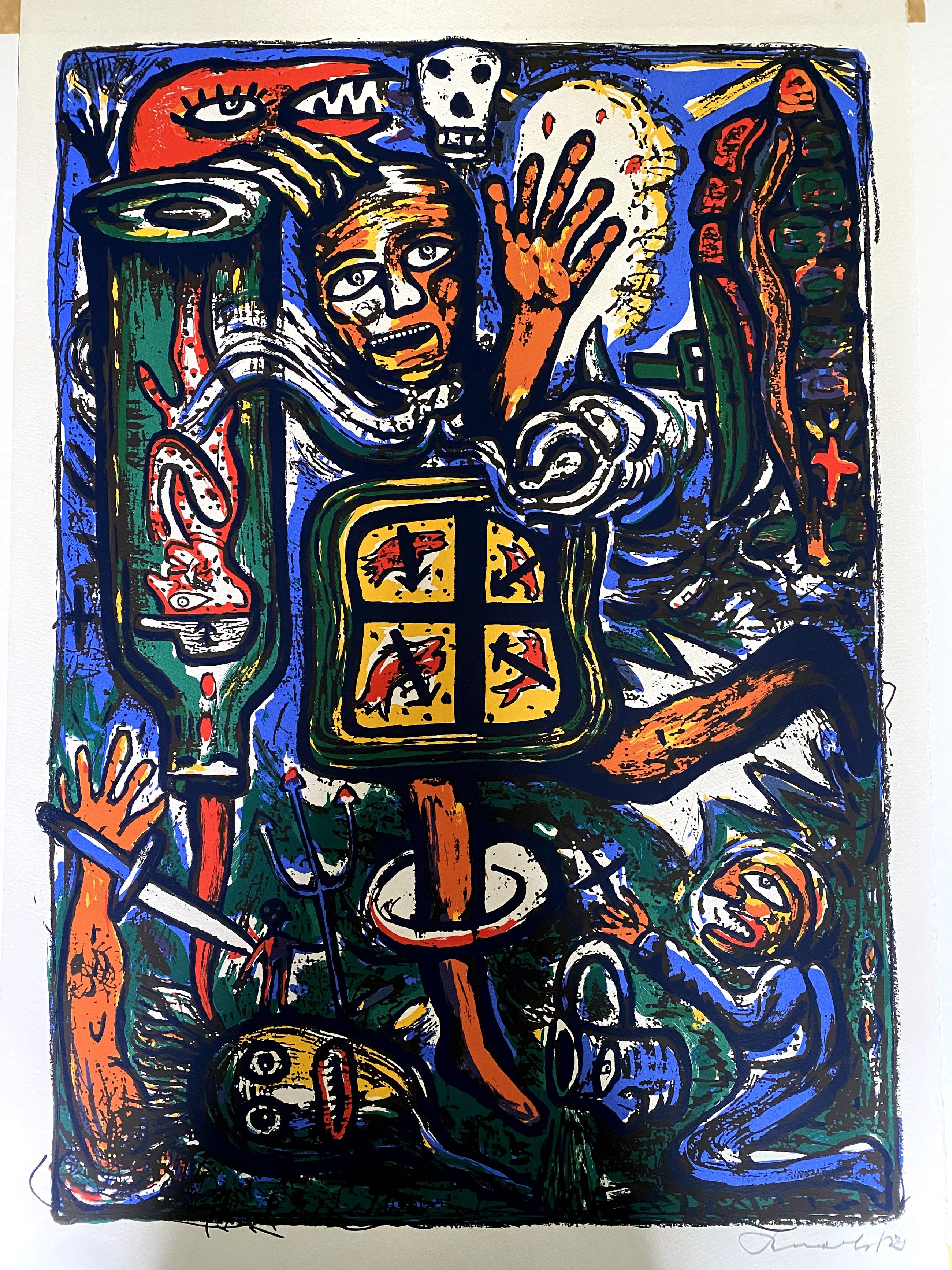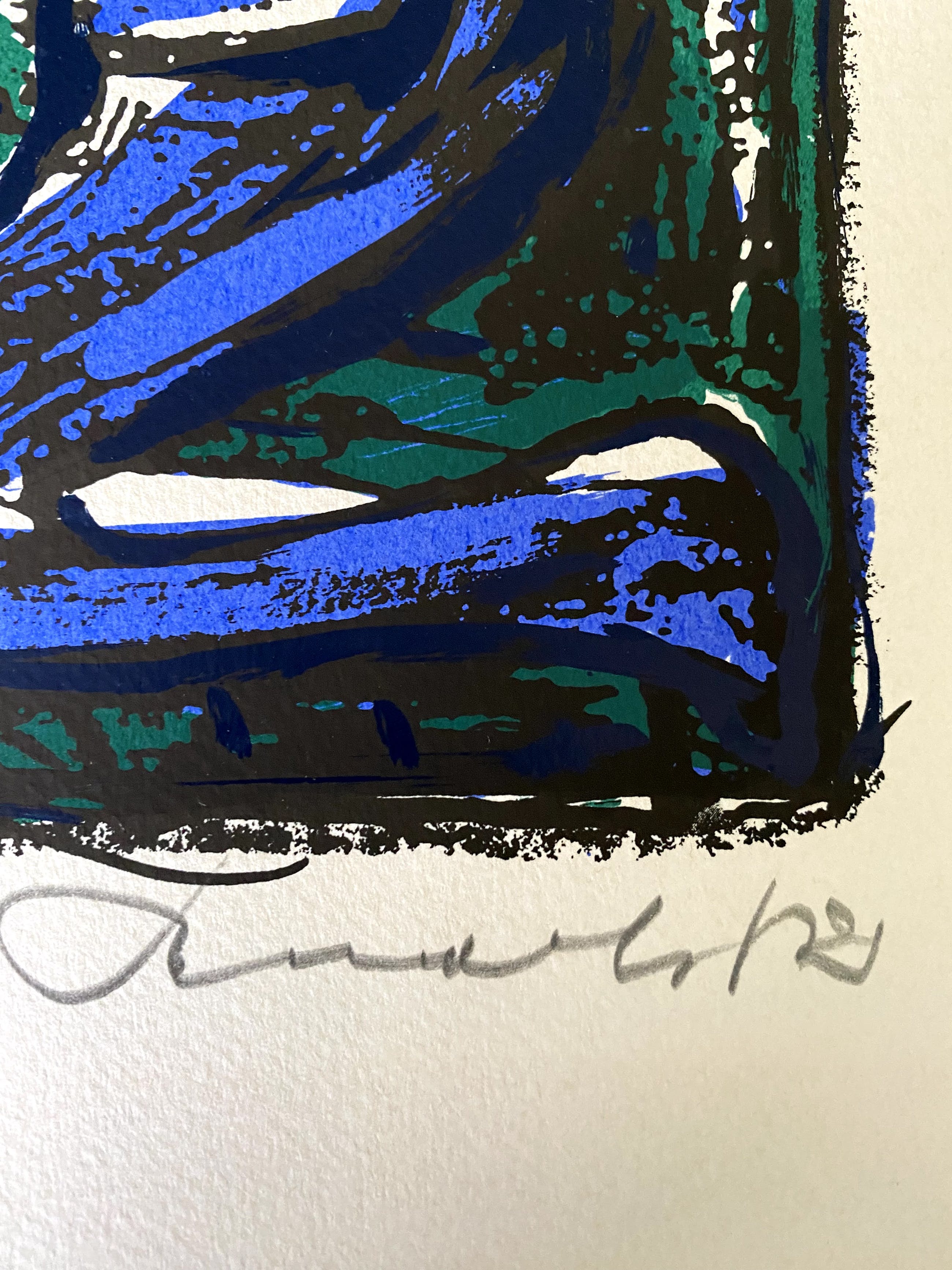 Kleurenzeefdruk. Getekend en gedateerd 'Bervoets 83' In kader.