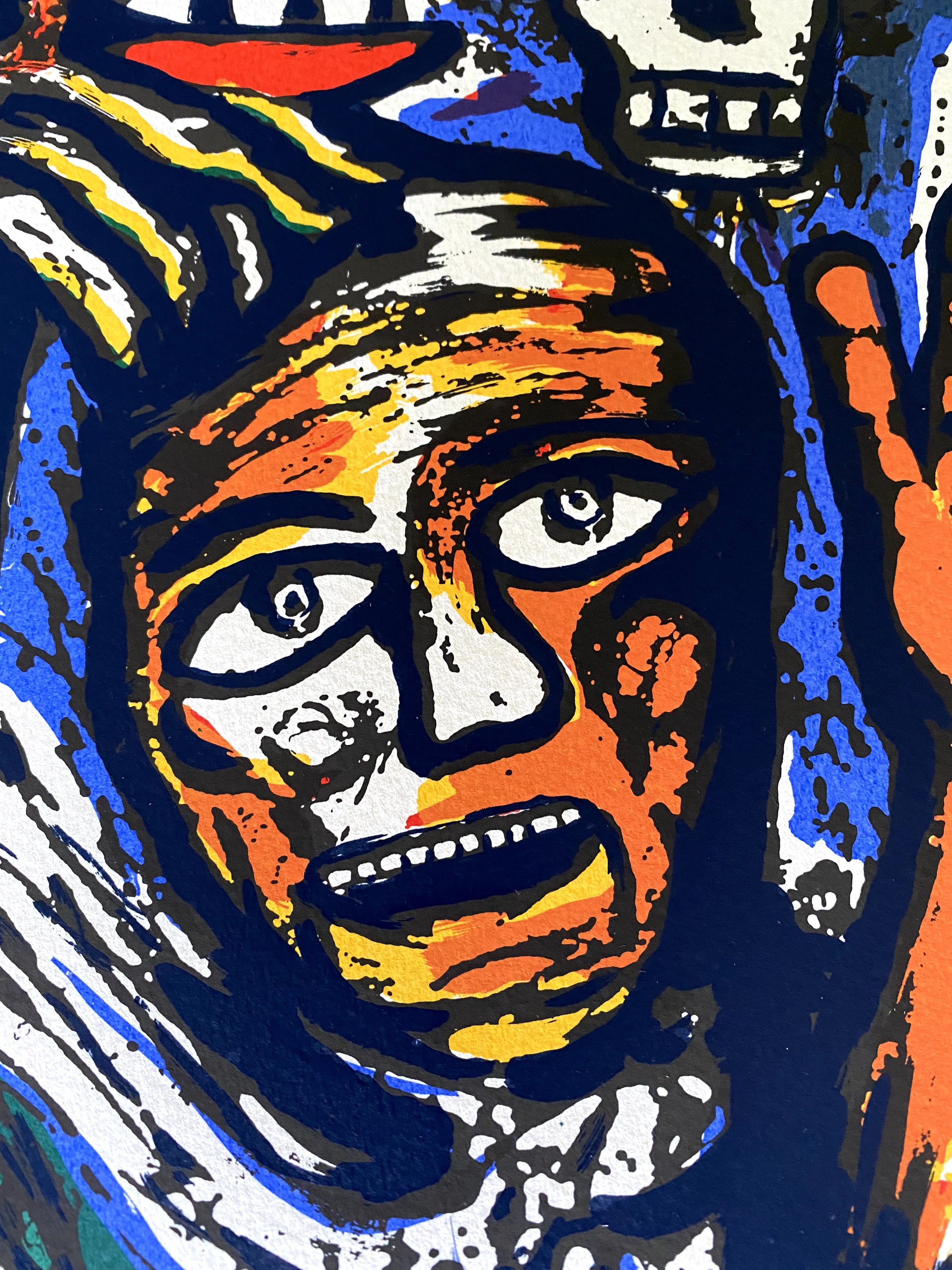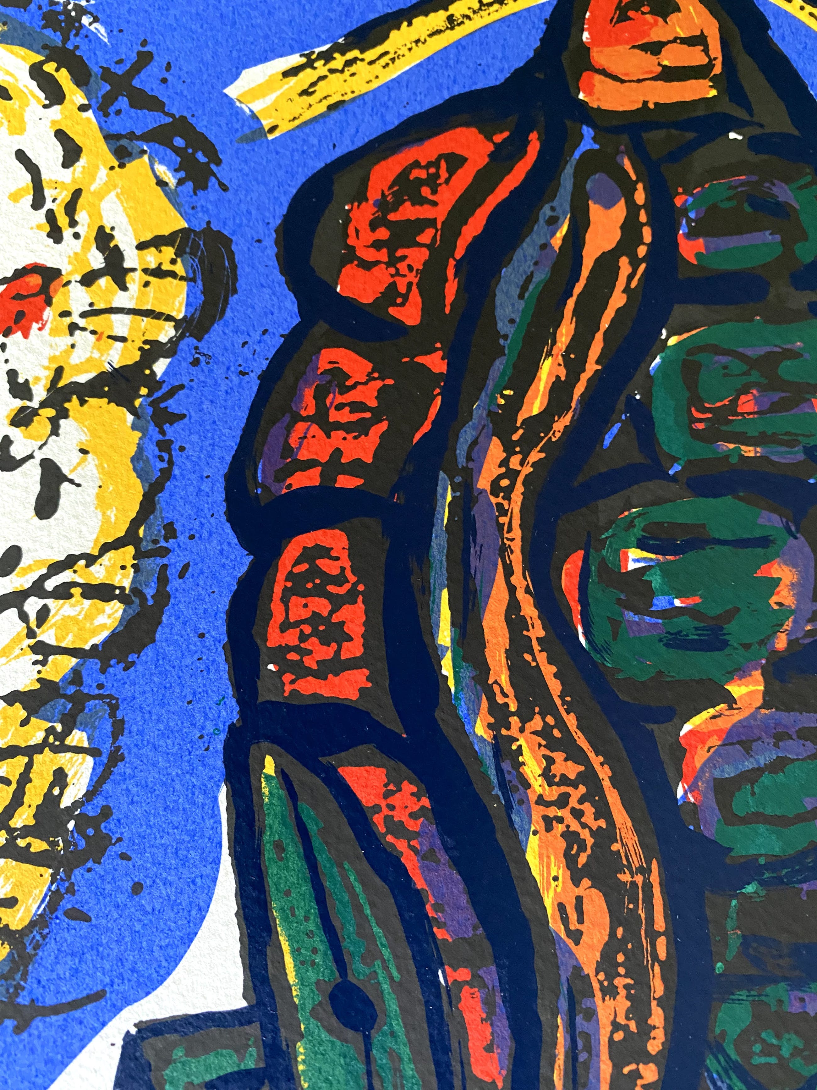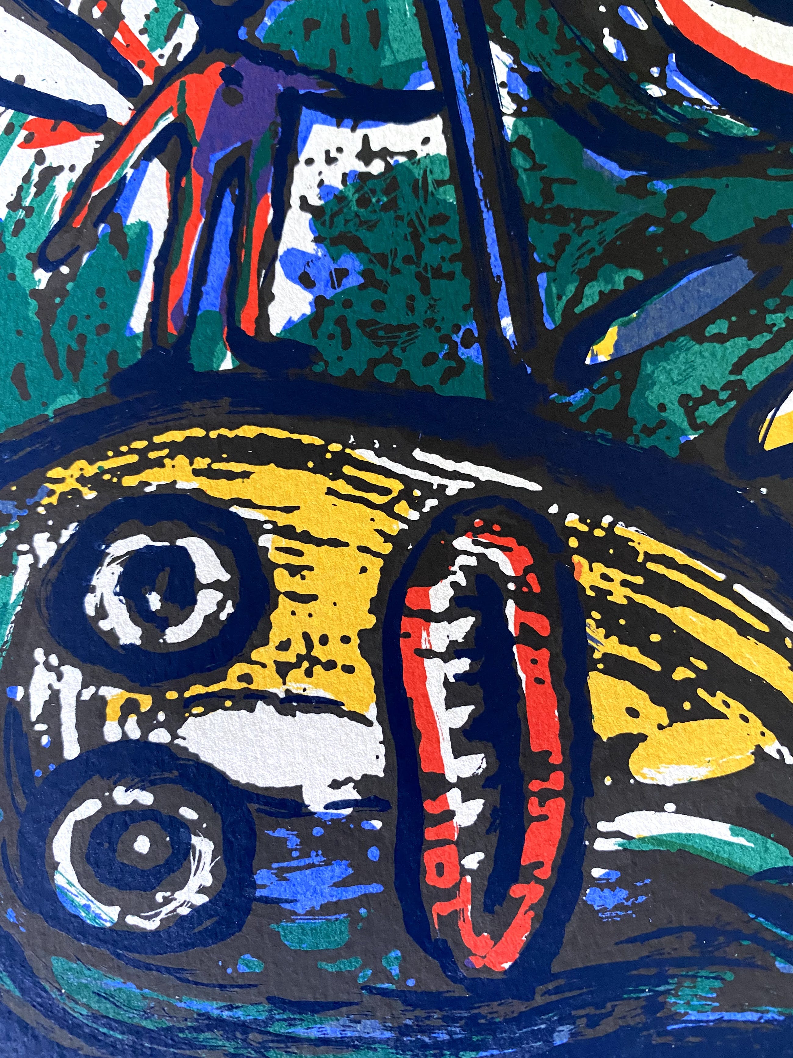 Kleurenzeefdruk. Getekend en gedateerd 'Bervoets 83' In kader.