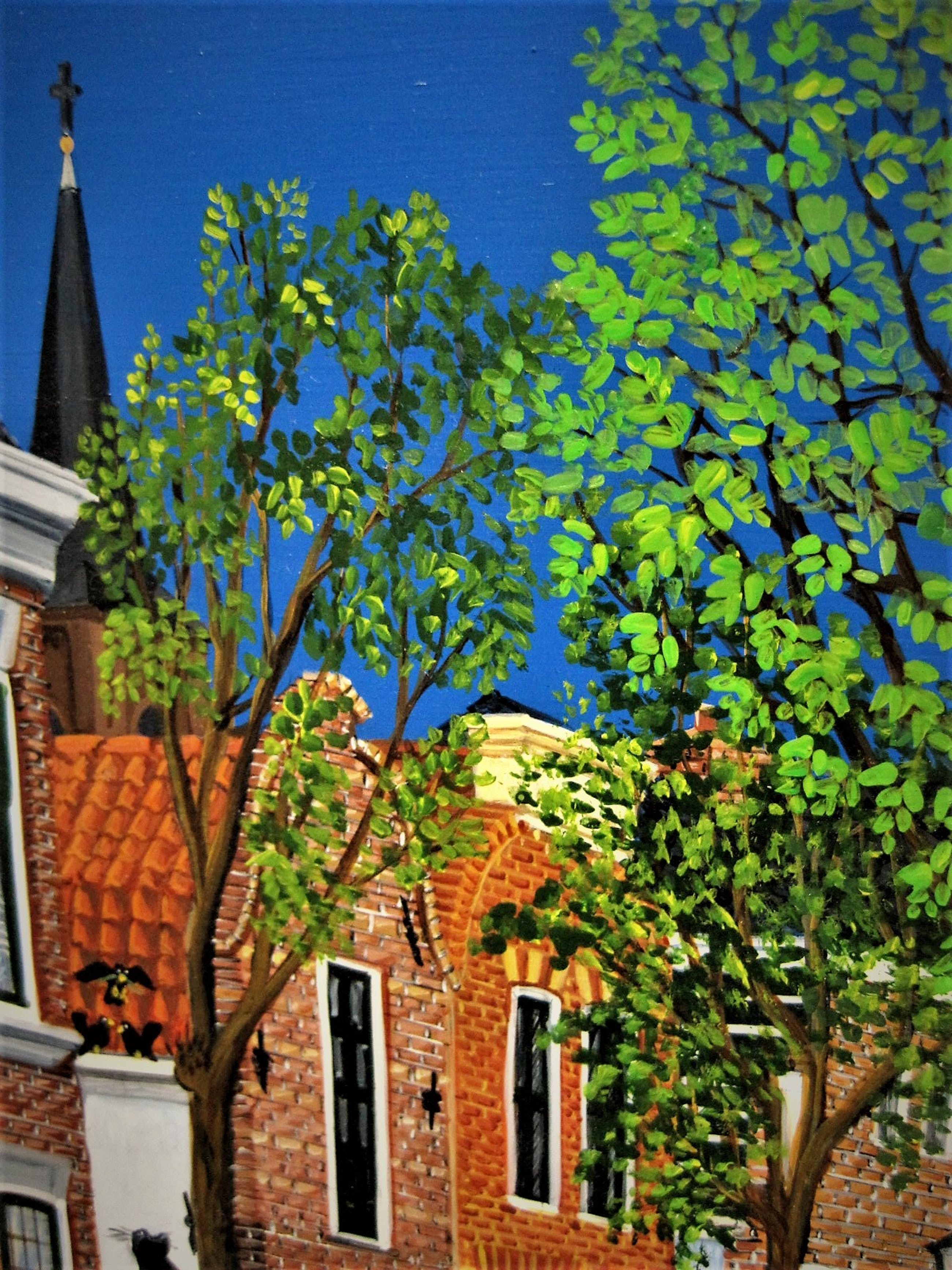 Fred Breebaart - karakteristiek Naïef & zeer gedetailleerd OLIEVERF "stadsgezicht Delft" gesign - Verkocht