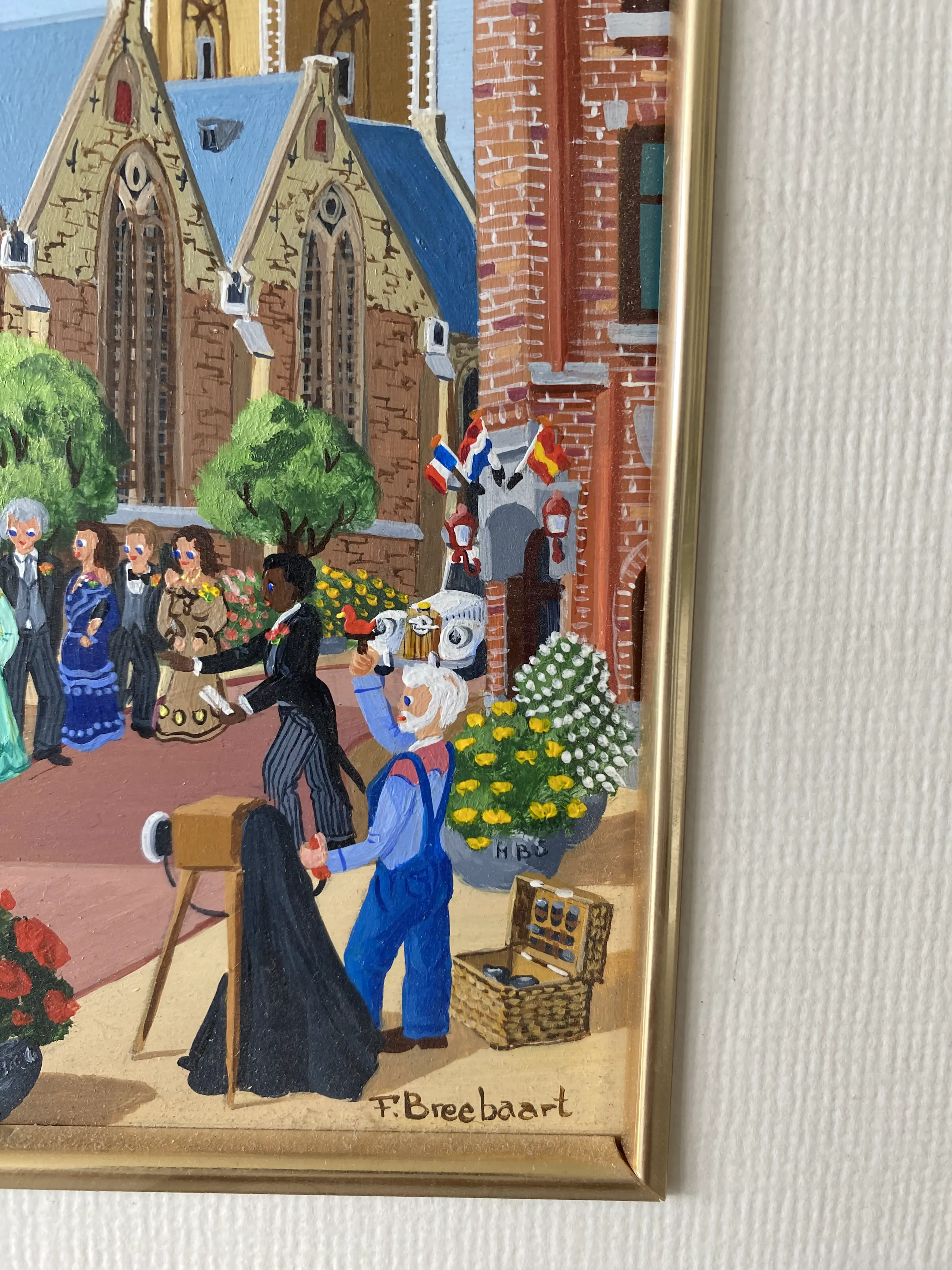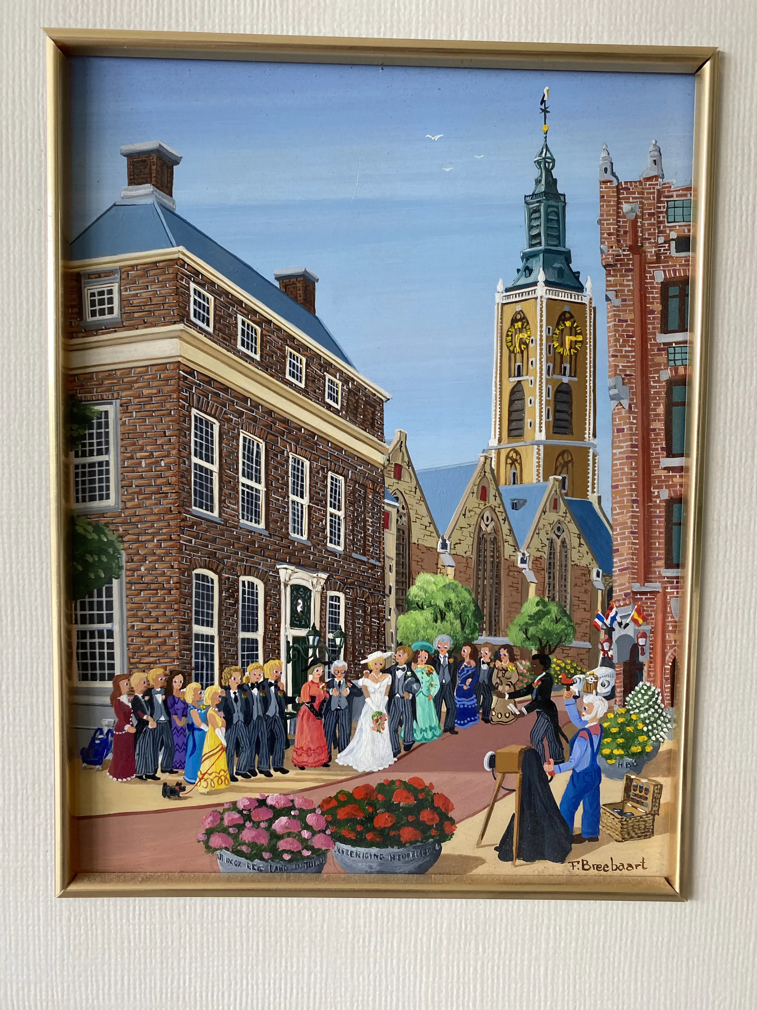 Mooi schilderij van Fred Breebaard een trouwerij. Heb niet uitgezocht welke stad maar zoals veel van zijn schilderijen staat Fred we zelf ook op in zijn tuinbroek als fotograaf.