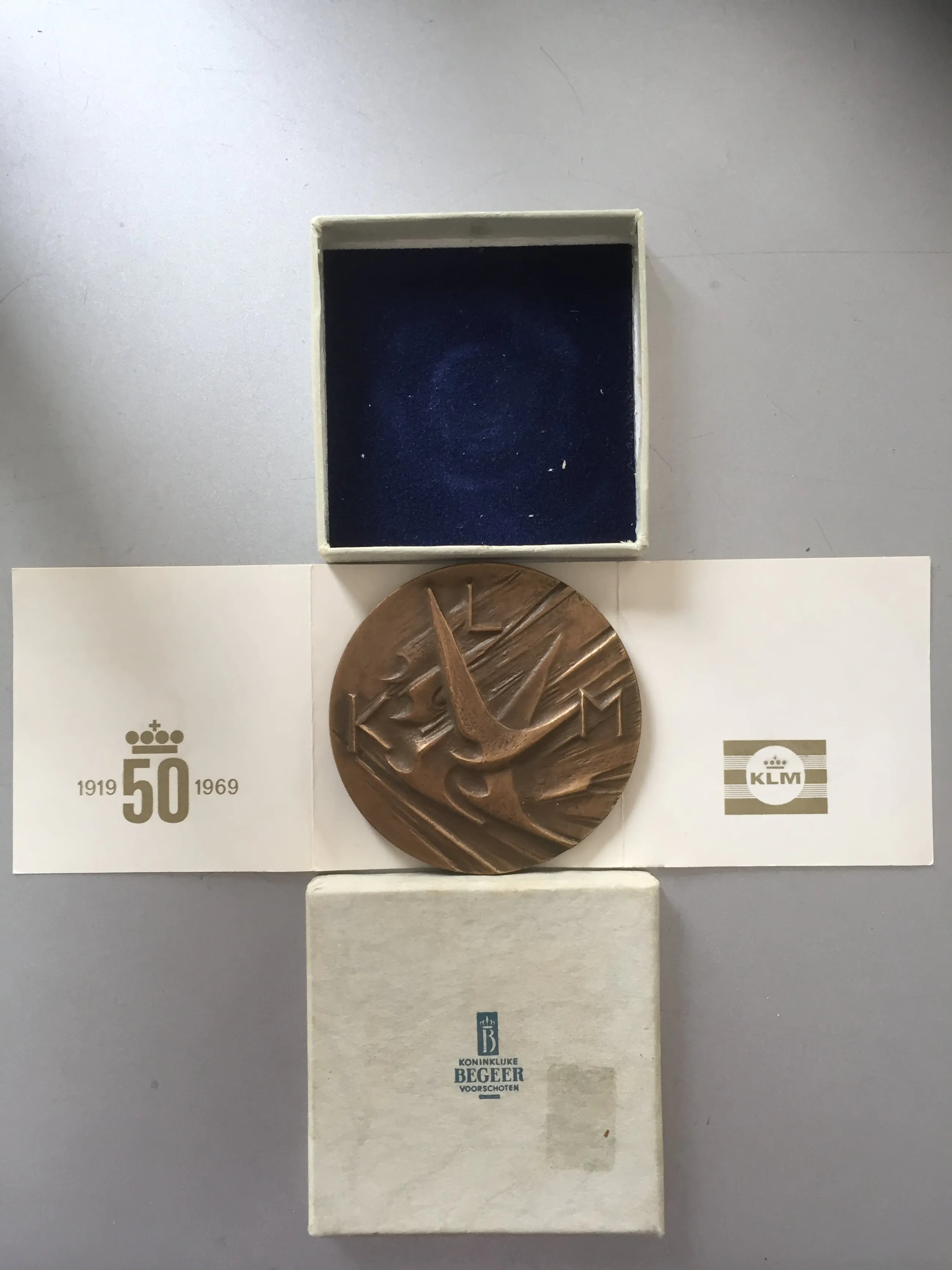 1919 - 1969 ter gelegenheid van dit jubileum van KLM is deze penning gemaakt door Fred Carasso In originele verpakking en bijsluiter