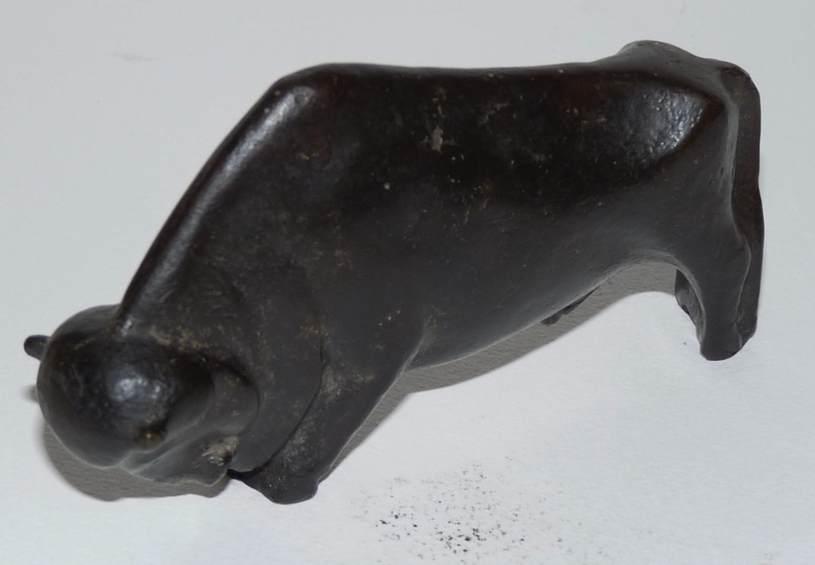 * Fraai bronzen beeld van een stier door de Nederlandse bekende beeldhouwer Fred Carasso. Beeld is in een oplage gemaakt van 100 stuks gegoten. Dit exemplaar is gegraveerd met het oplagenr. 28/100, daarnaast met het jaartal 1962 Dit werk komt uit een interessante Nederlandse collectie met kwalitatief goede beeldhouwers van naam. Van deze vermaarde kunstenaar is veel te vinden in boeken en op internet.