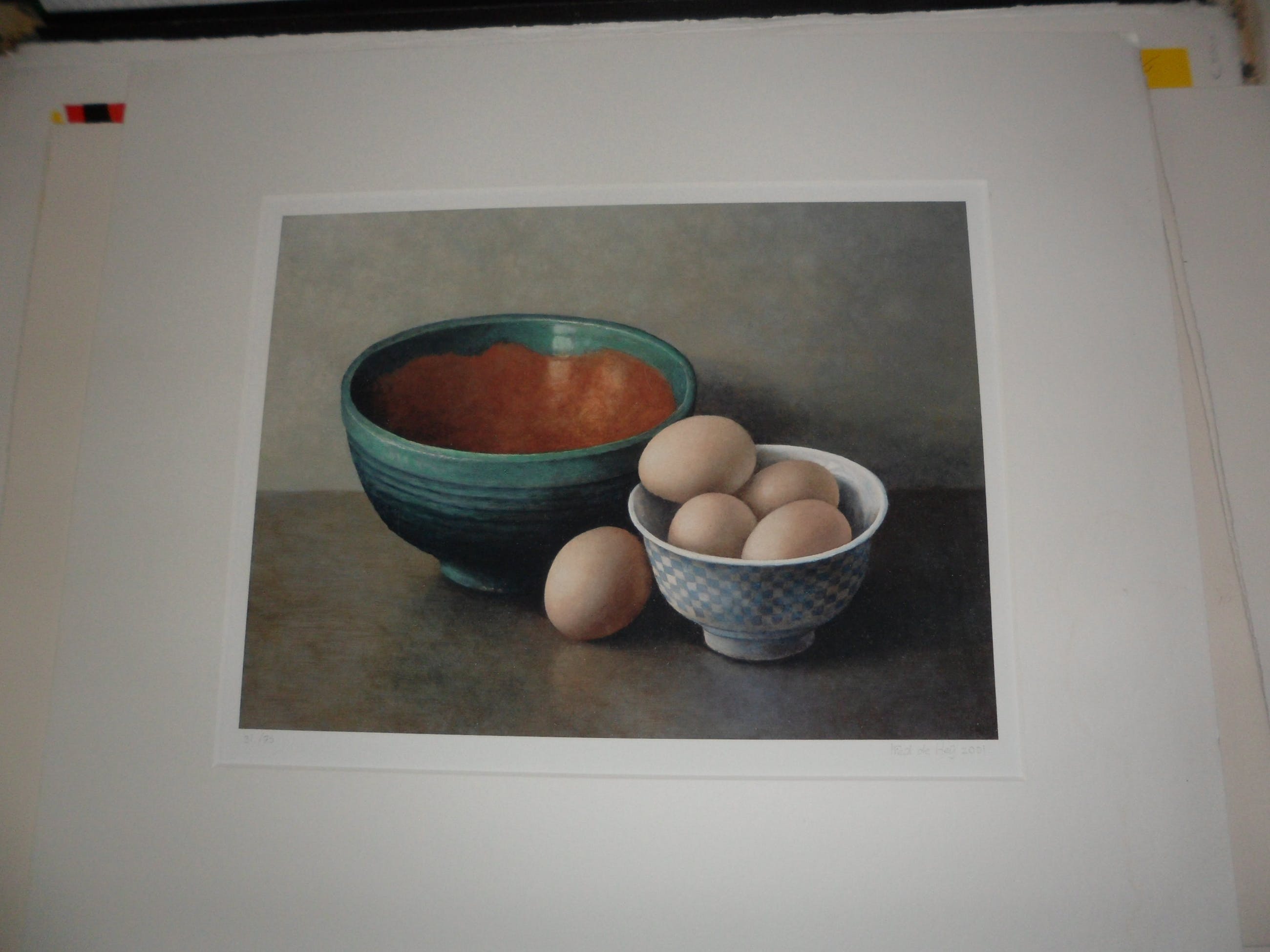 stillevens: een bakje appels, een paar kastanjes. Geen bijzondere onderwerpen, maar