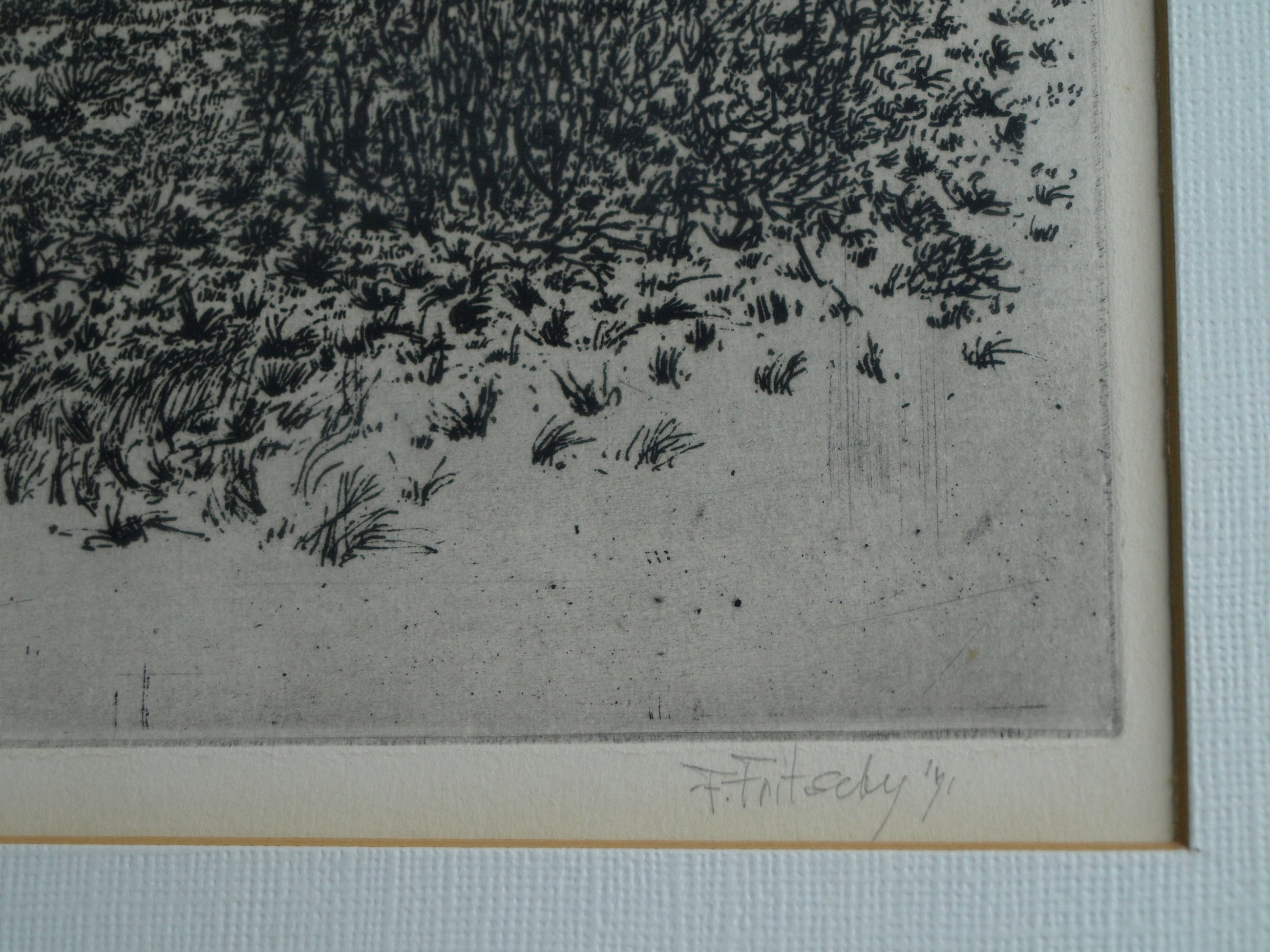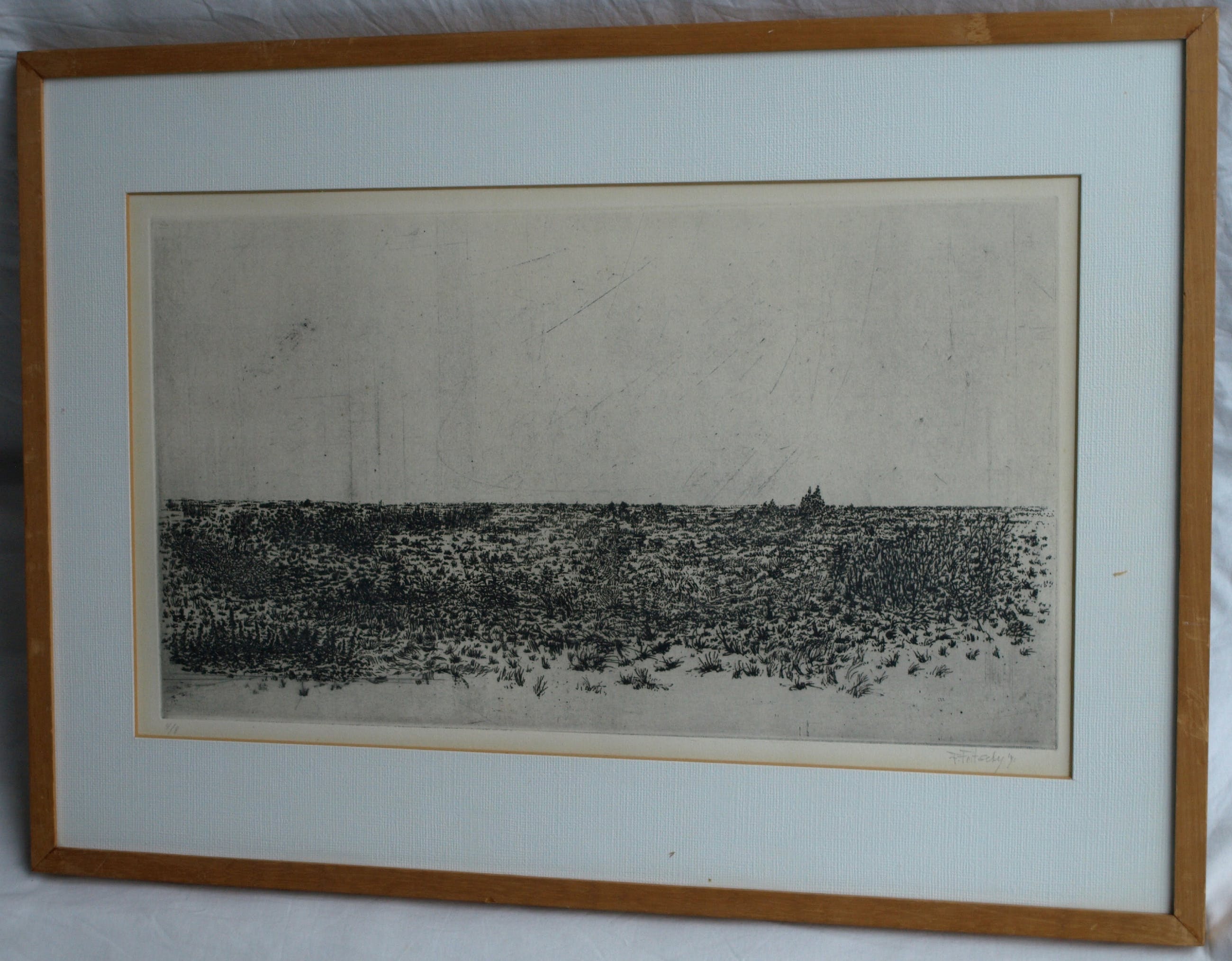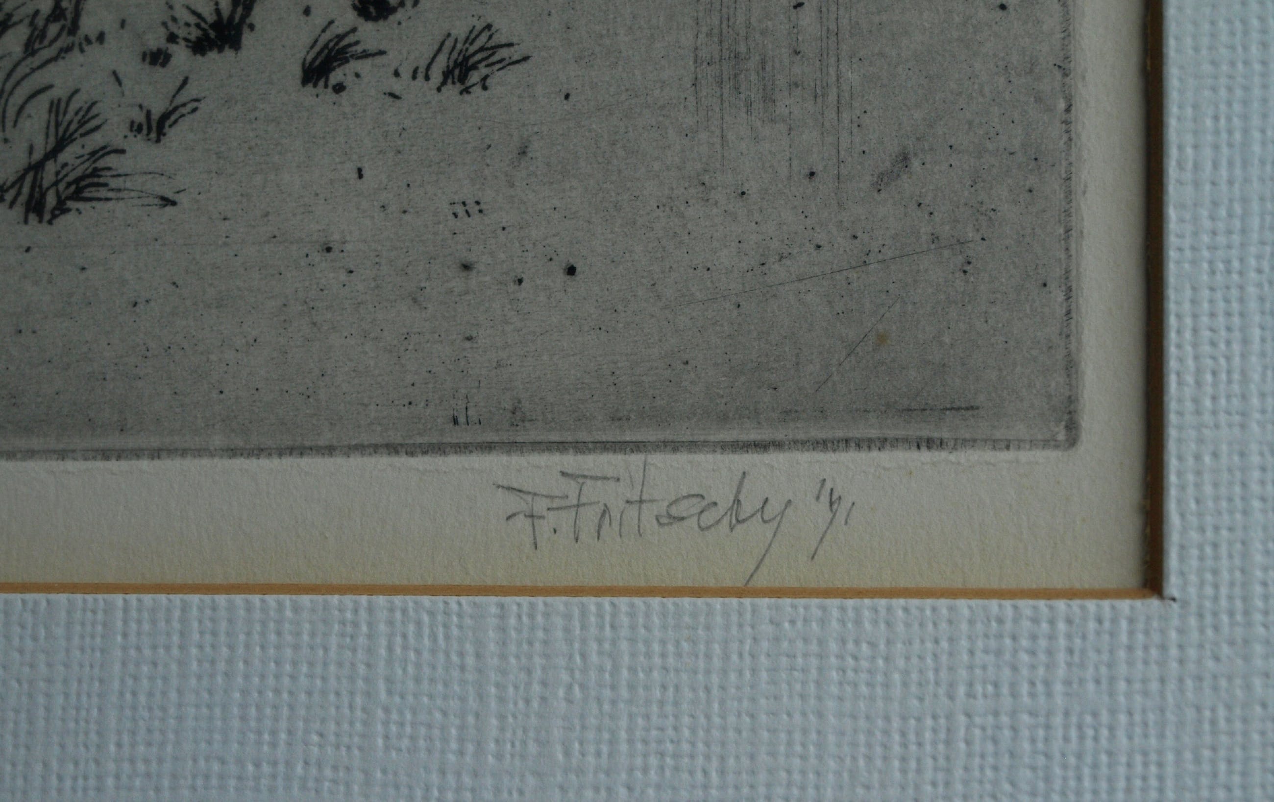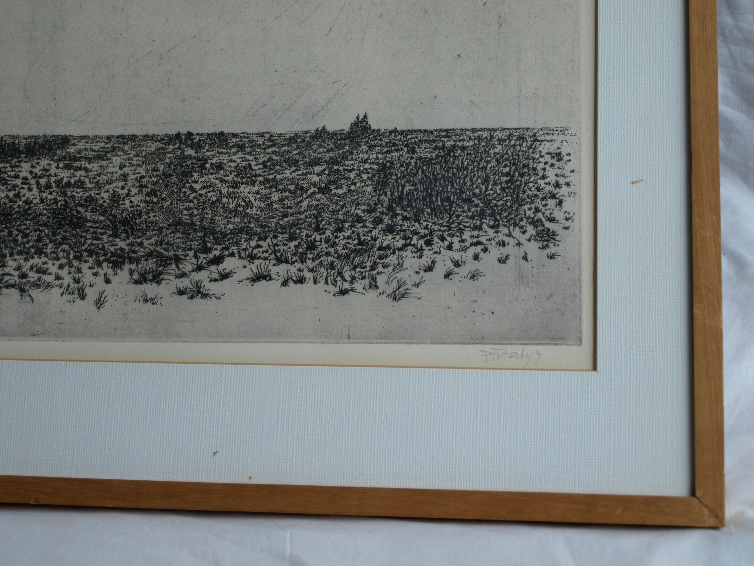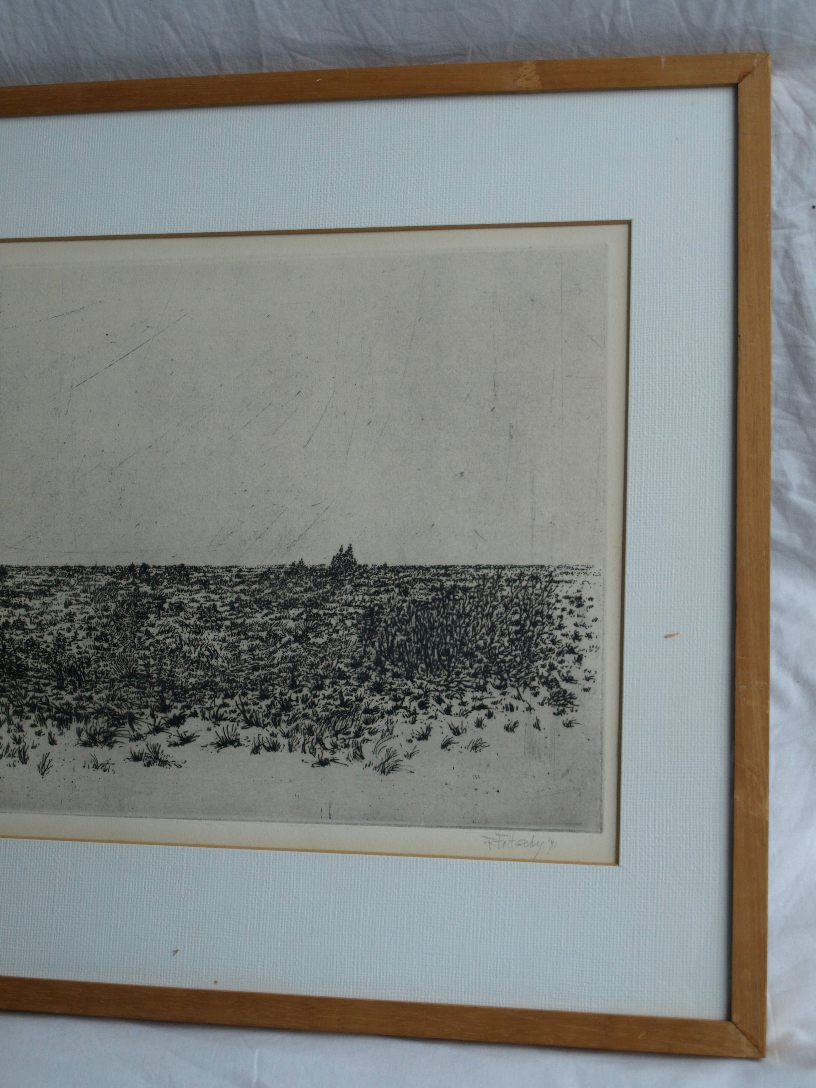 Een ingelijste ets uit 1971 van de Amsterdamse kunstenaar Fred Fritschij (1932).