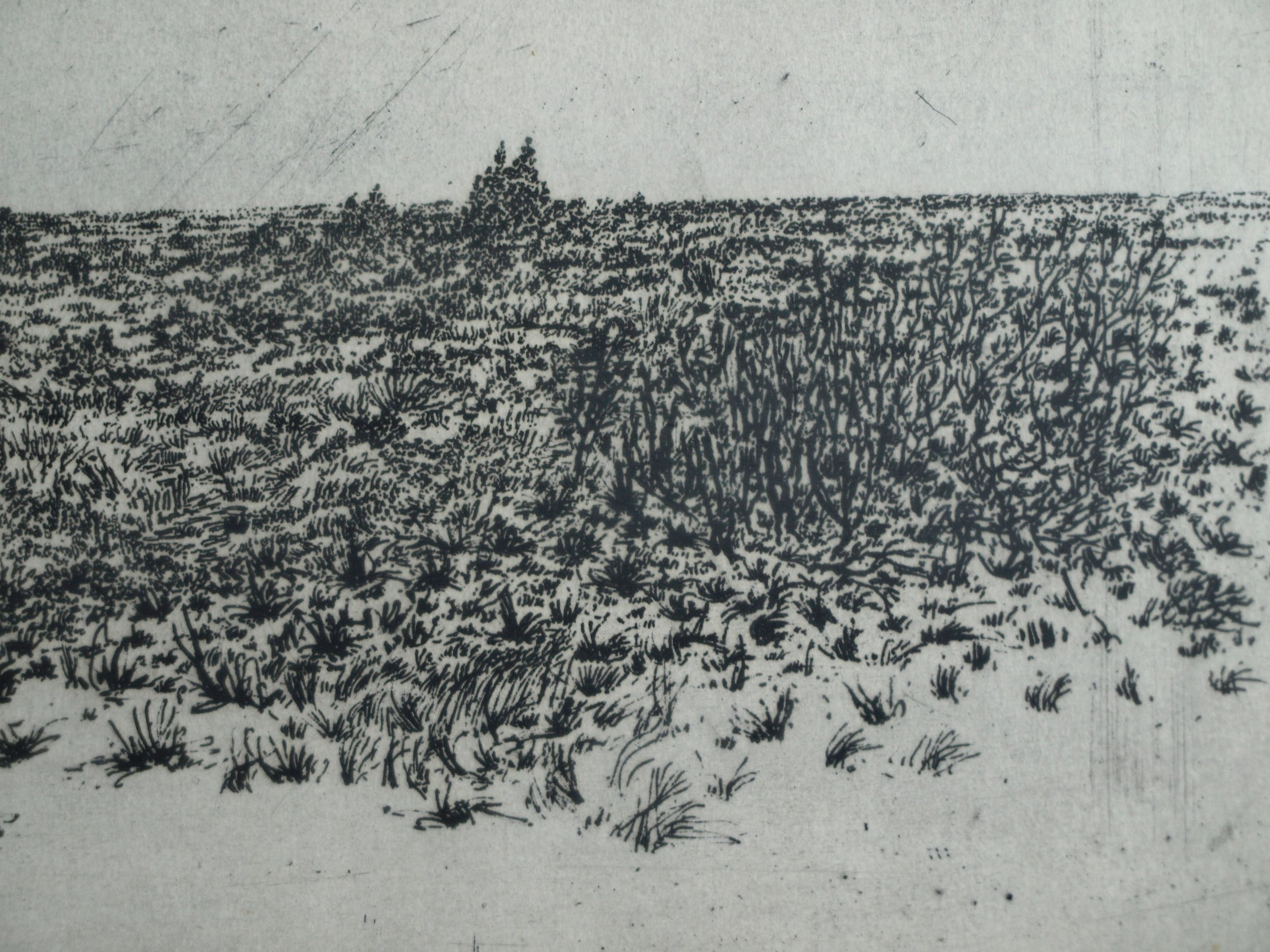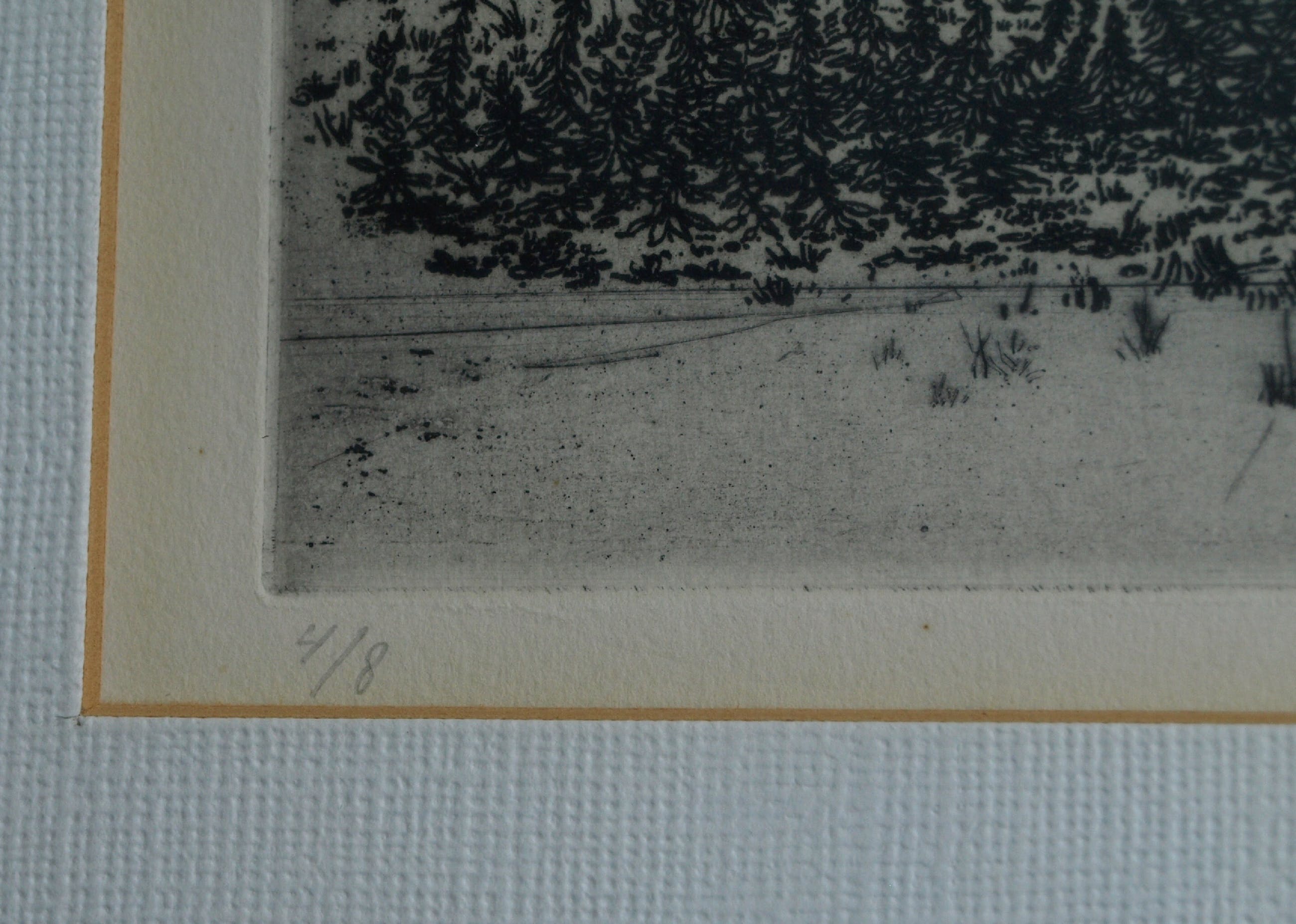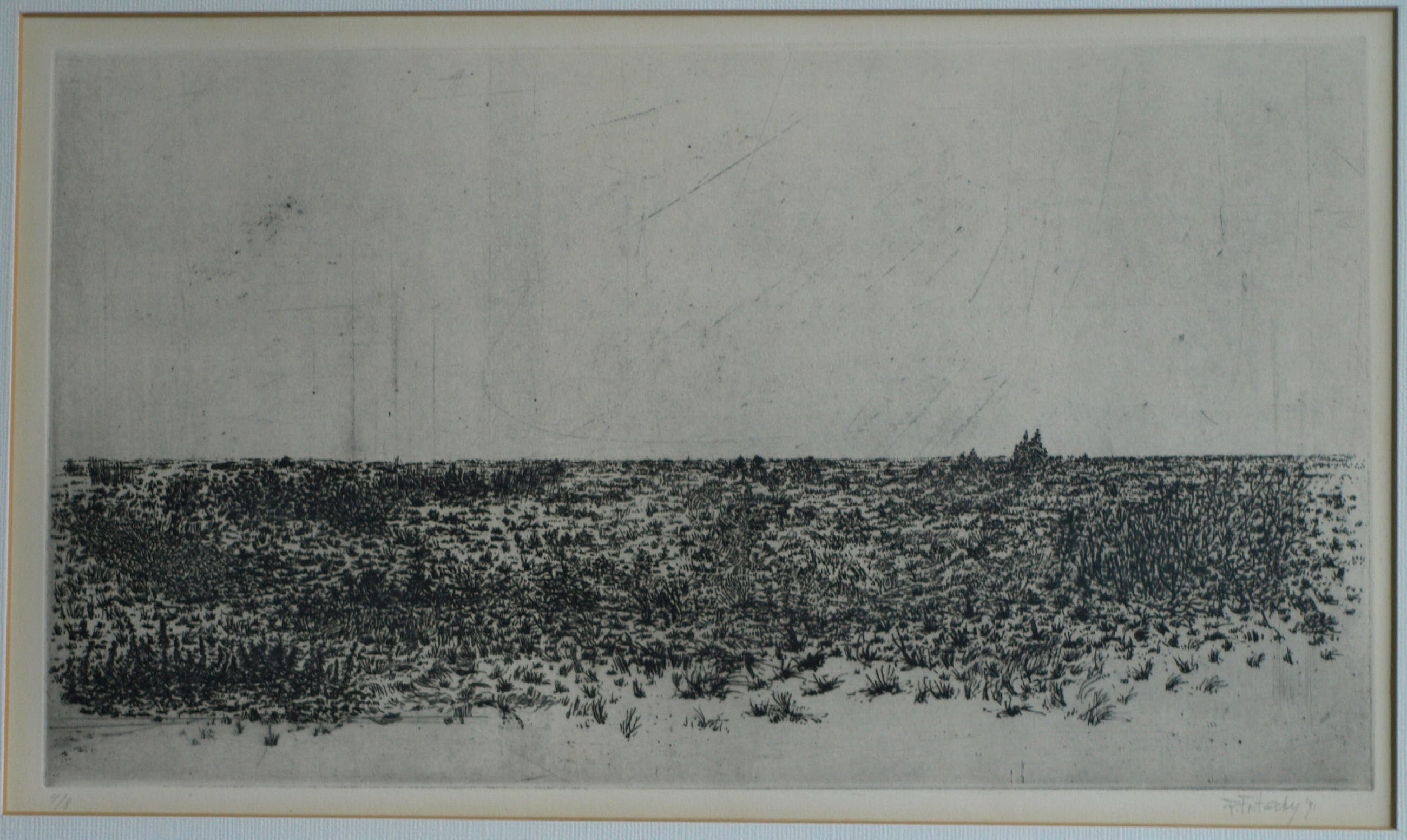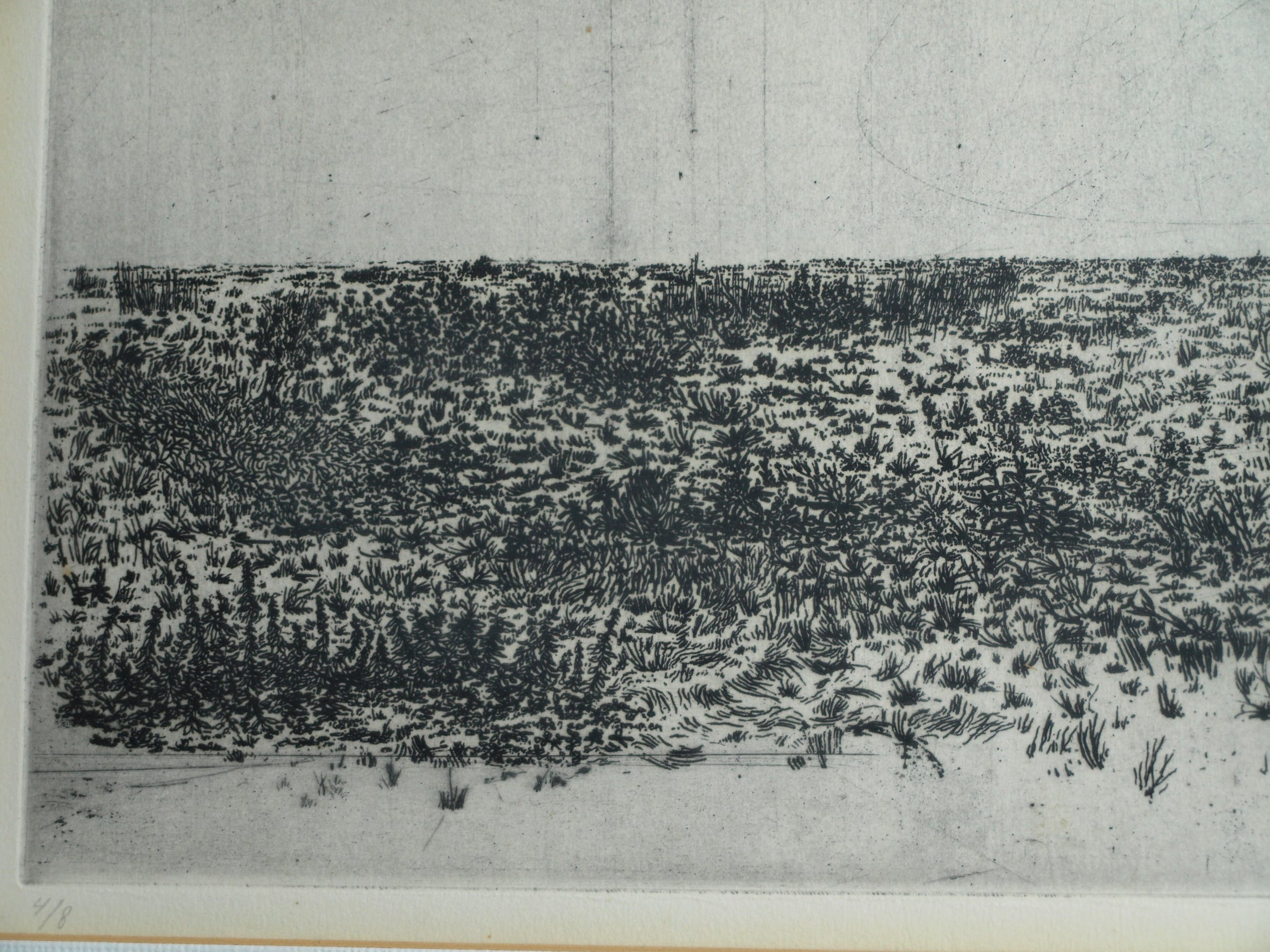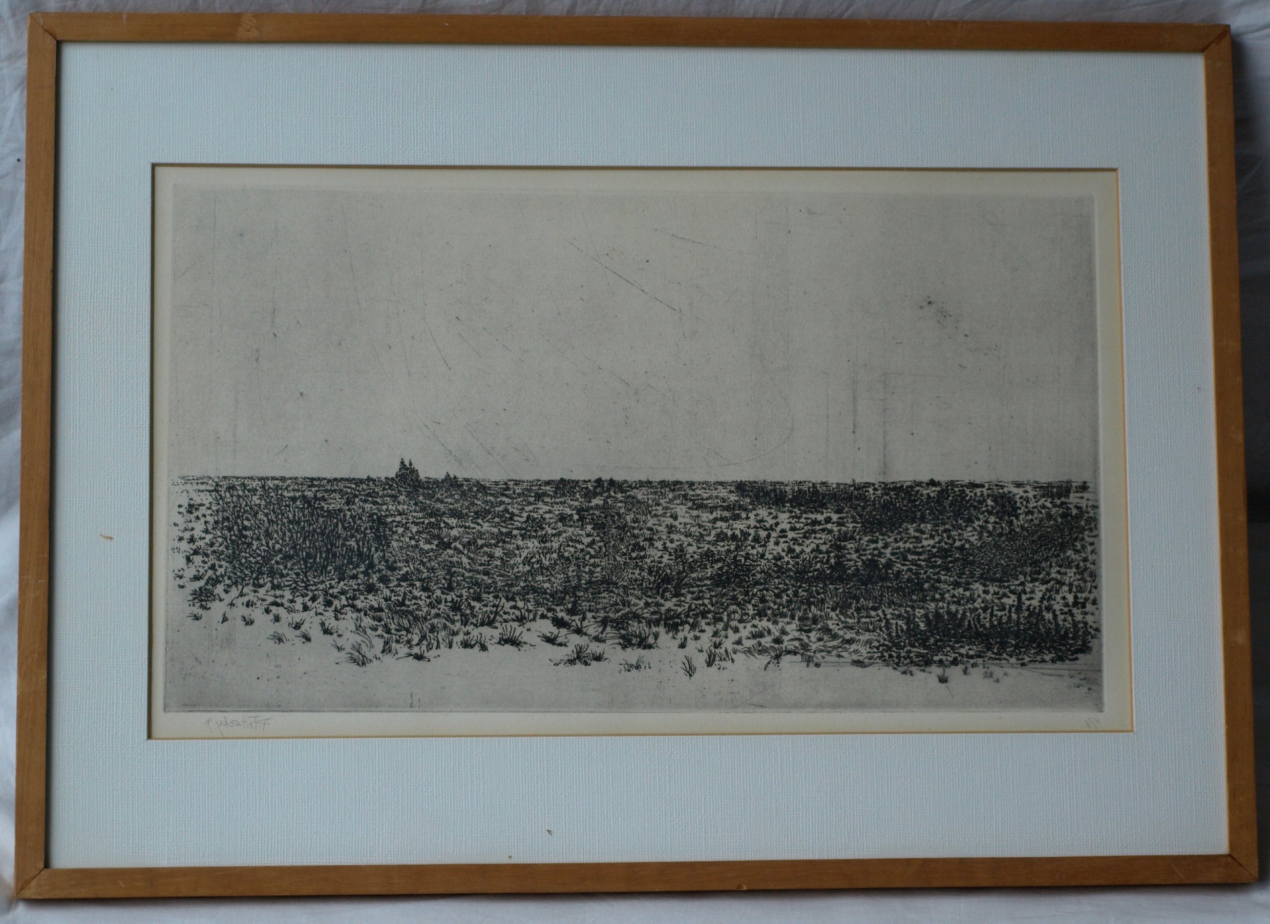 Een ingelijste ets uit 1971 van de Amsterdamse kunstenaar Fred Fritschij (1932).
