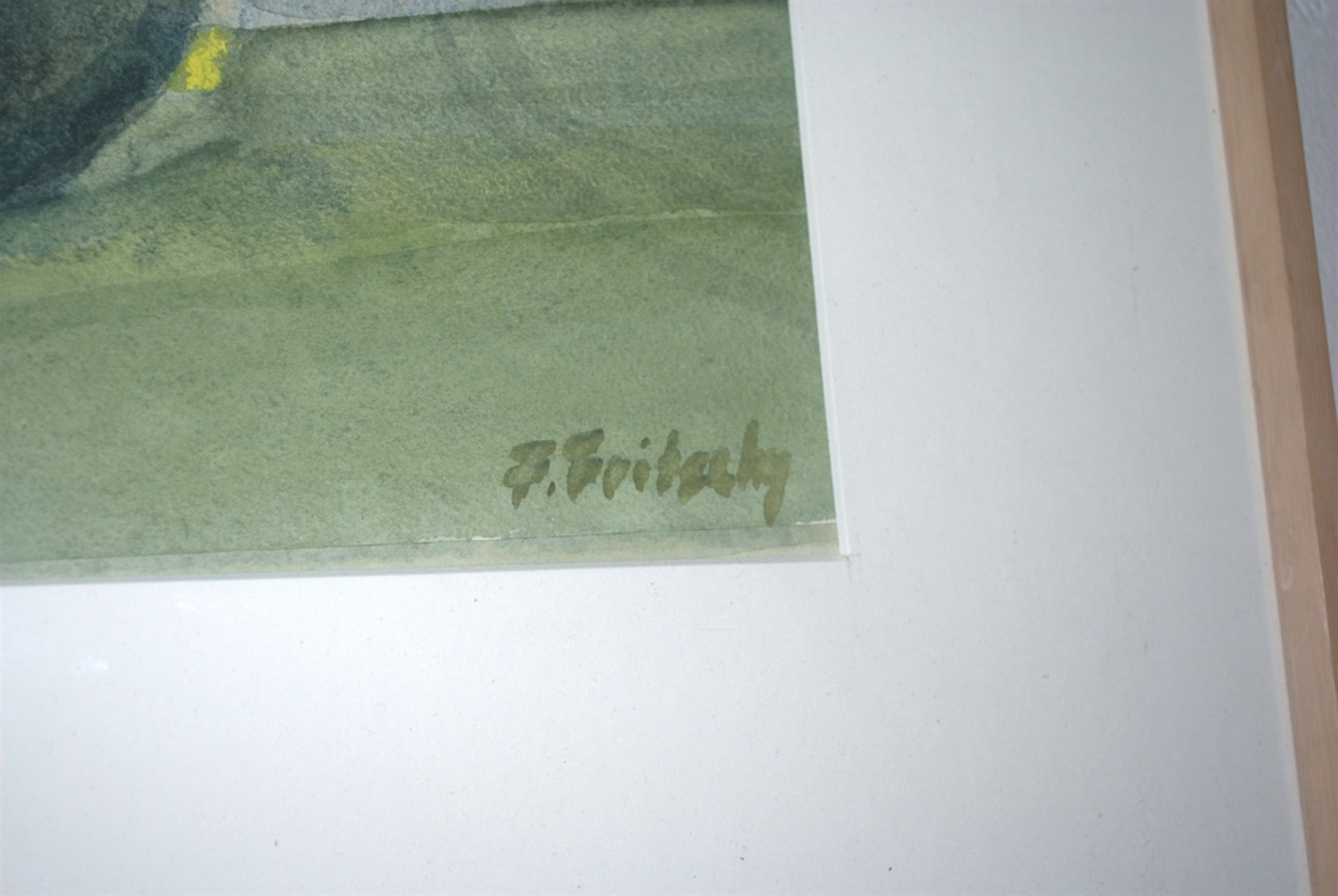 Het papier is in goede staat. Achter glas en passepartout (uitsnede 29x39 cm).
