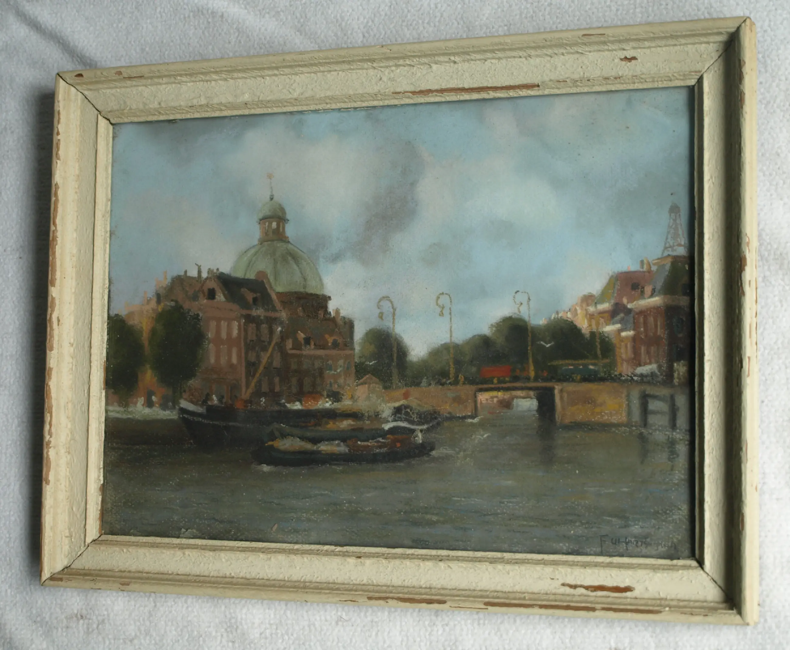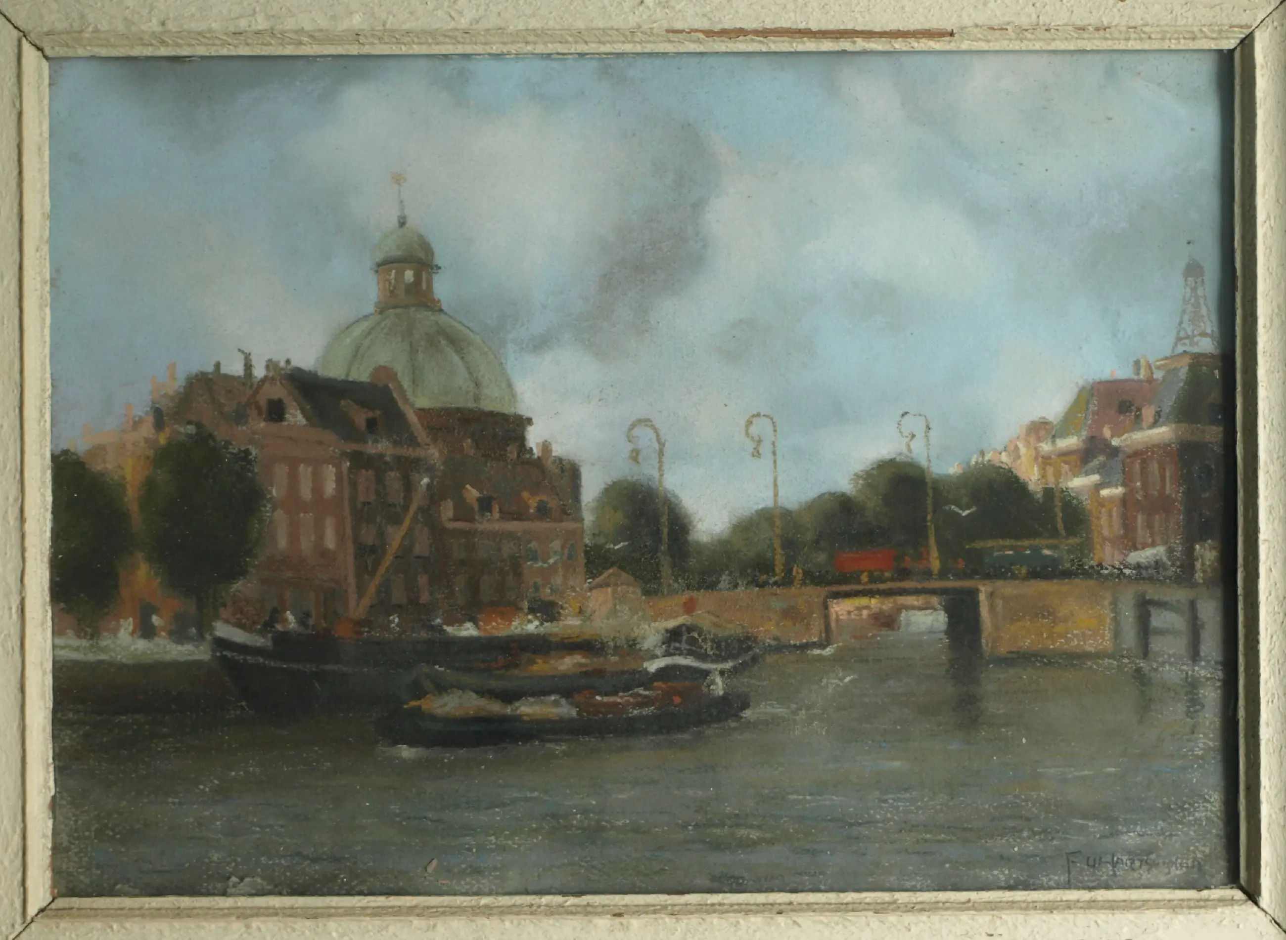 Informatie over de kunstenaar: Frans Willem Hartsuijker (Amsterdam, 4 juni 1894 - Utrecht, 28 september 1991) was een Nederlands kunstschilder en pastellist. Zijn naam wordt, formeel onjuist, ook vermeld als Frederik Willem of Fred Hartsuyker. Als geboortejaar wordt soms, foutief, '1896' genoemd. -Opleiding: Autodidact. Hij heeft alleen 's avonds, na zijn werk als rijtuigschilder bij Werkspoor, een tekenschool bezocht. Frans Hartsuijker schilderde landschappen, stads- en dorpsgezichten, stillevens, ten minste één kerkinterieur en portretten. (bron: o.a. Wikipedia)