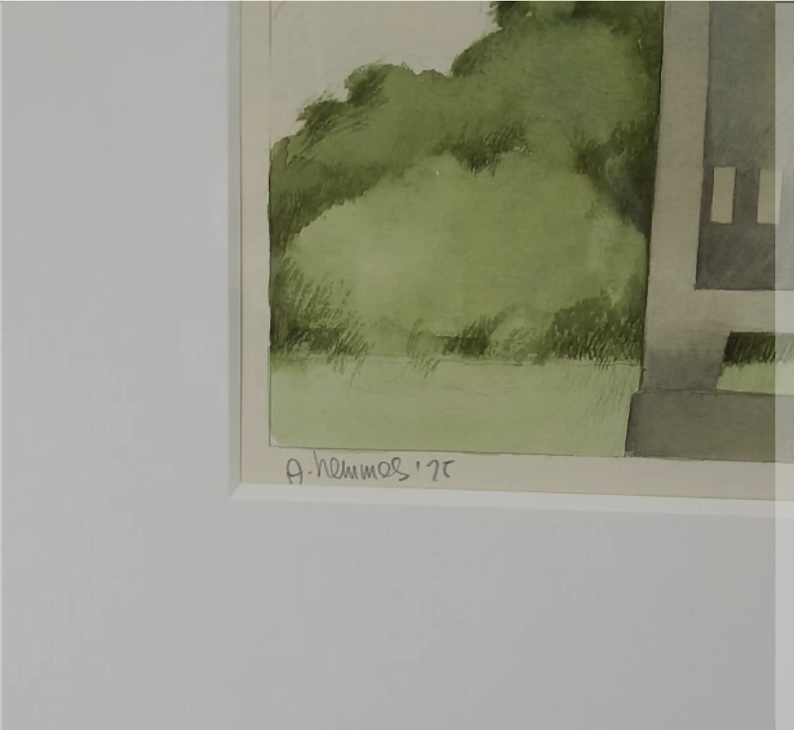 Vroeg aquarel werk van (Al)Fred Hemmes uit 1975 Professioneel ingelijst. Afkomstig uit overheid kunstcollectie