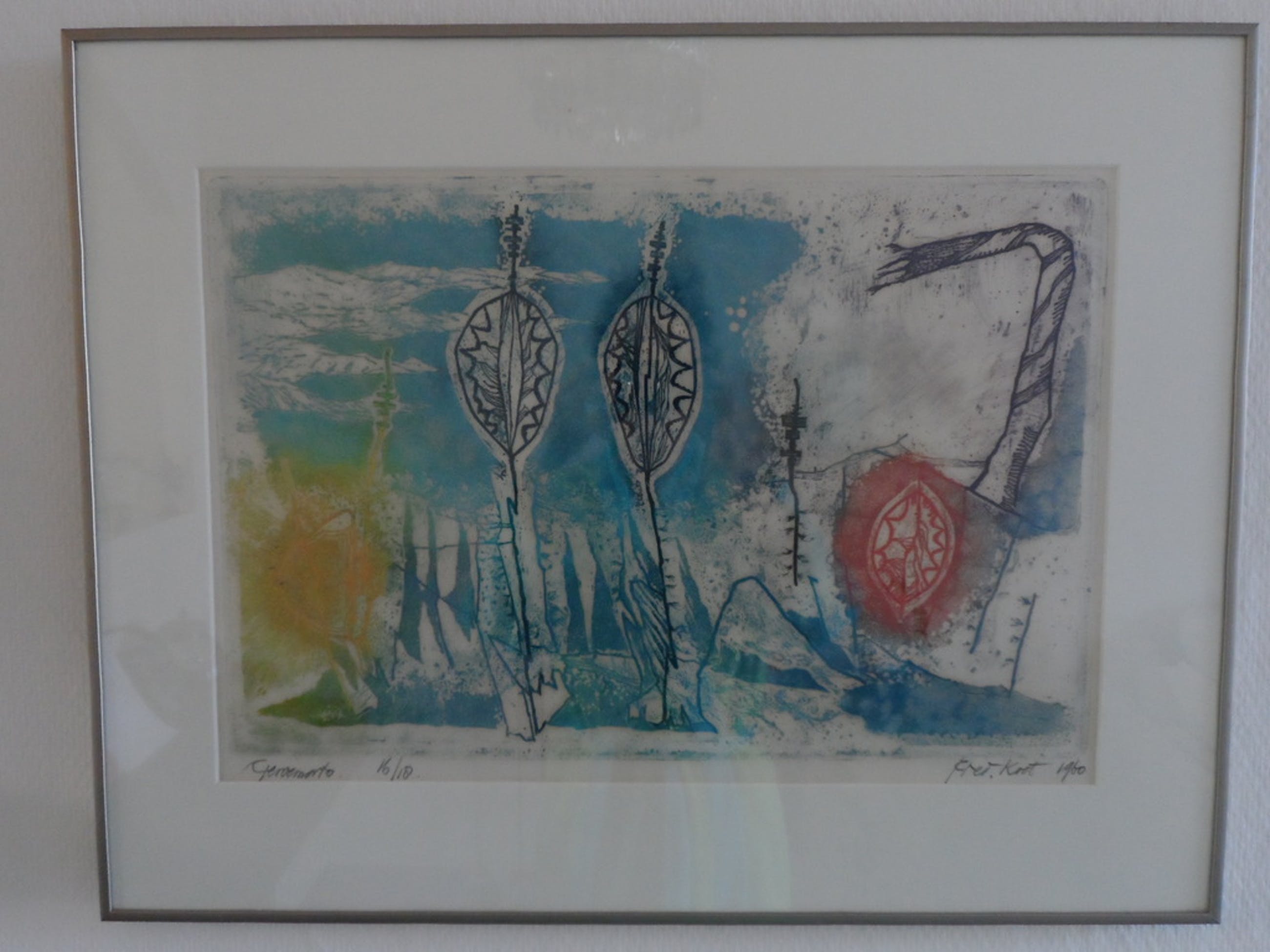 Ets van Fred Koot, 1960. Gesigneerd, oplage 16/18. Afmeting ets: 505 x 345 mm. Lijst met passepartout maat: 650 x 505 mm.