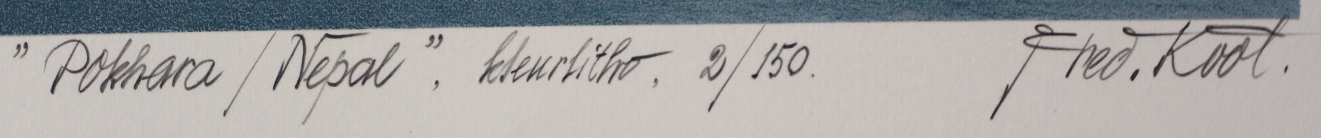 Kleuren litho van Karel Appel. Titel: Pakhara Nepal. Nummer: 2/150. Afmetingen werk: H48 x b64