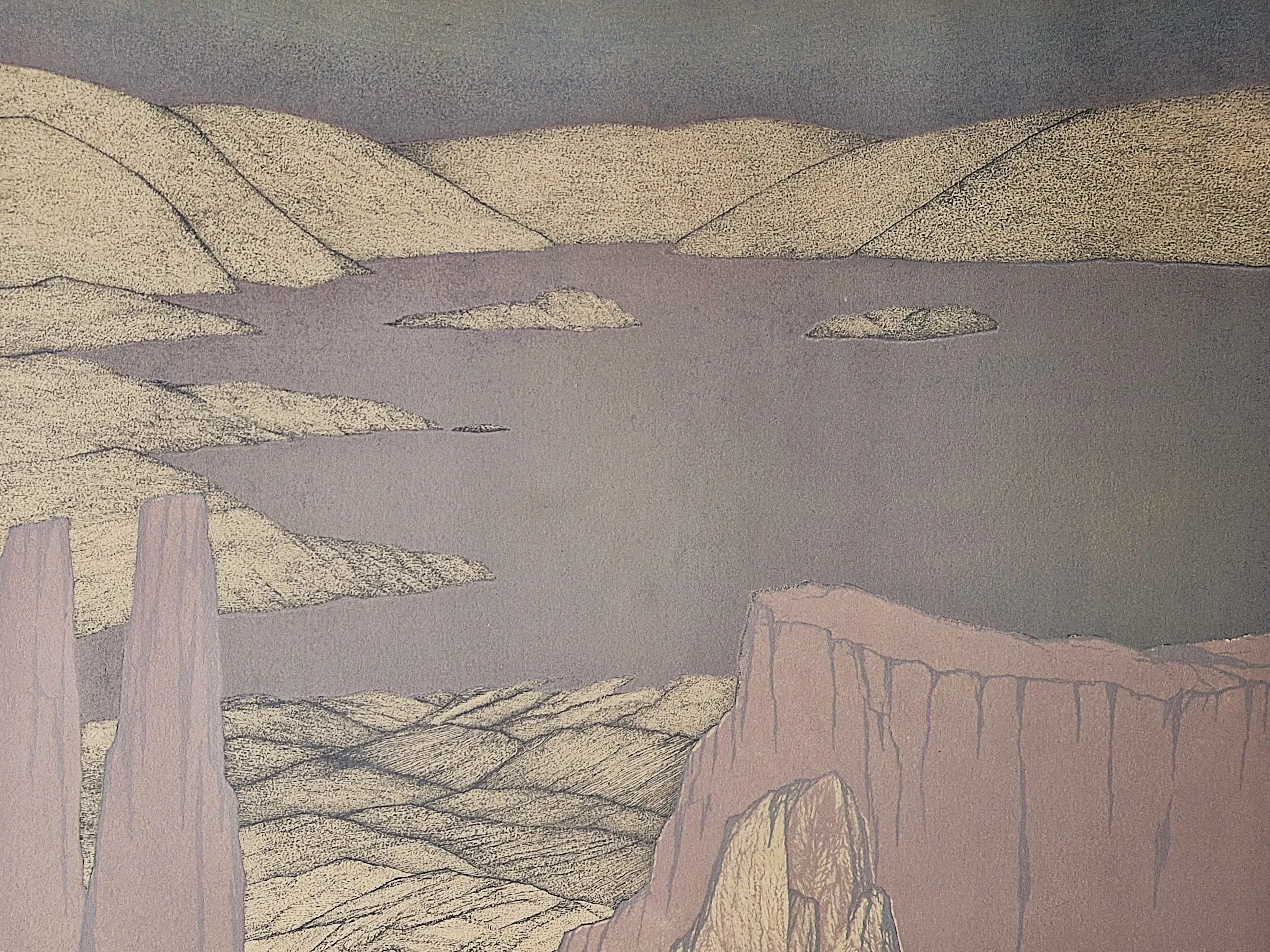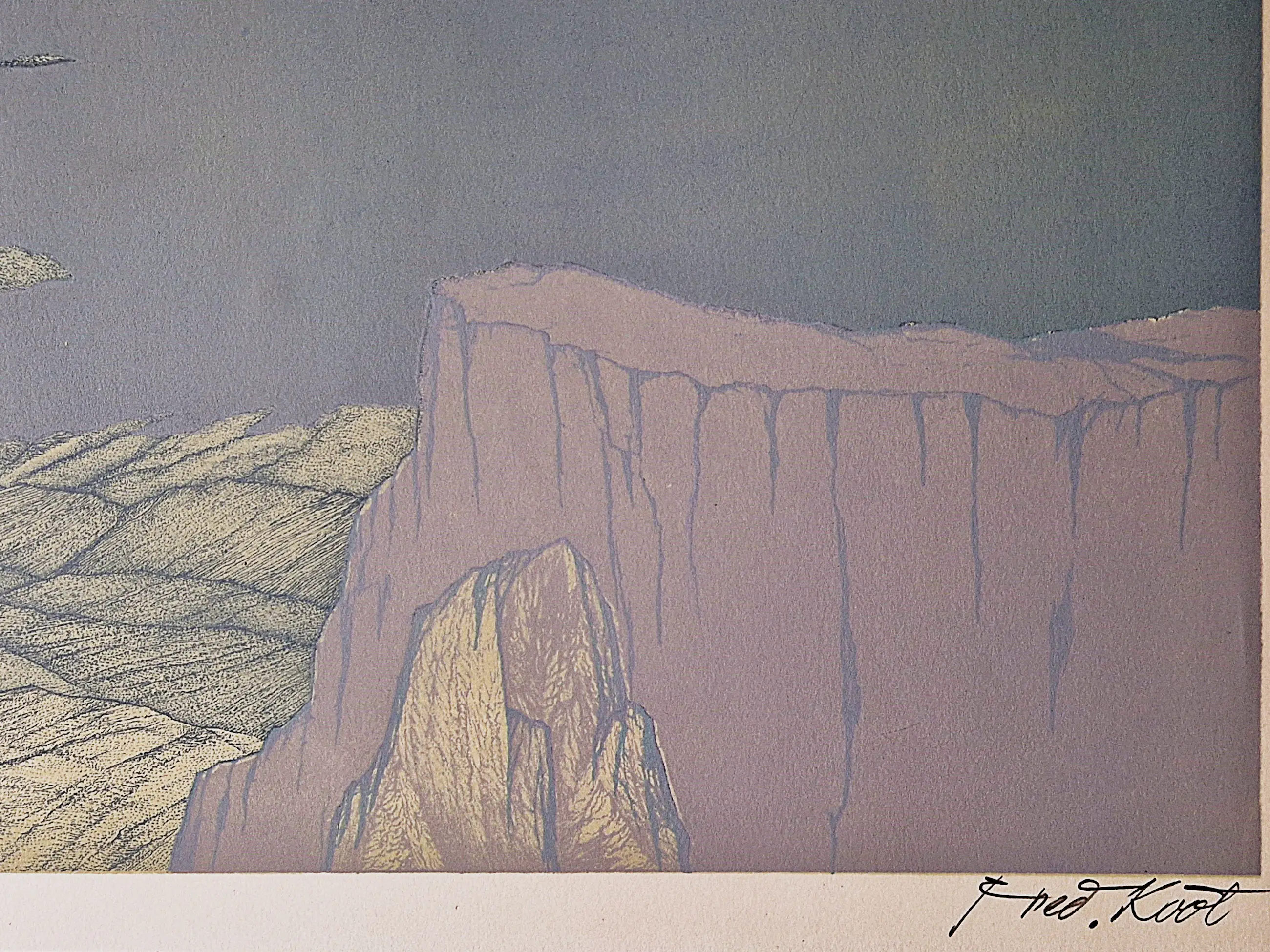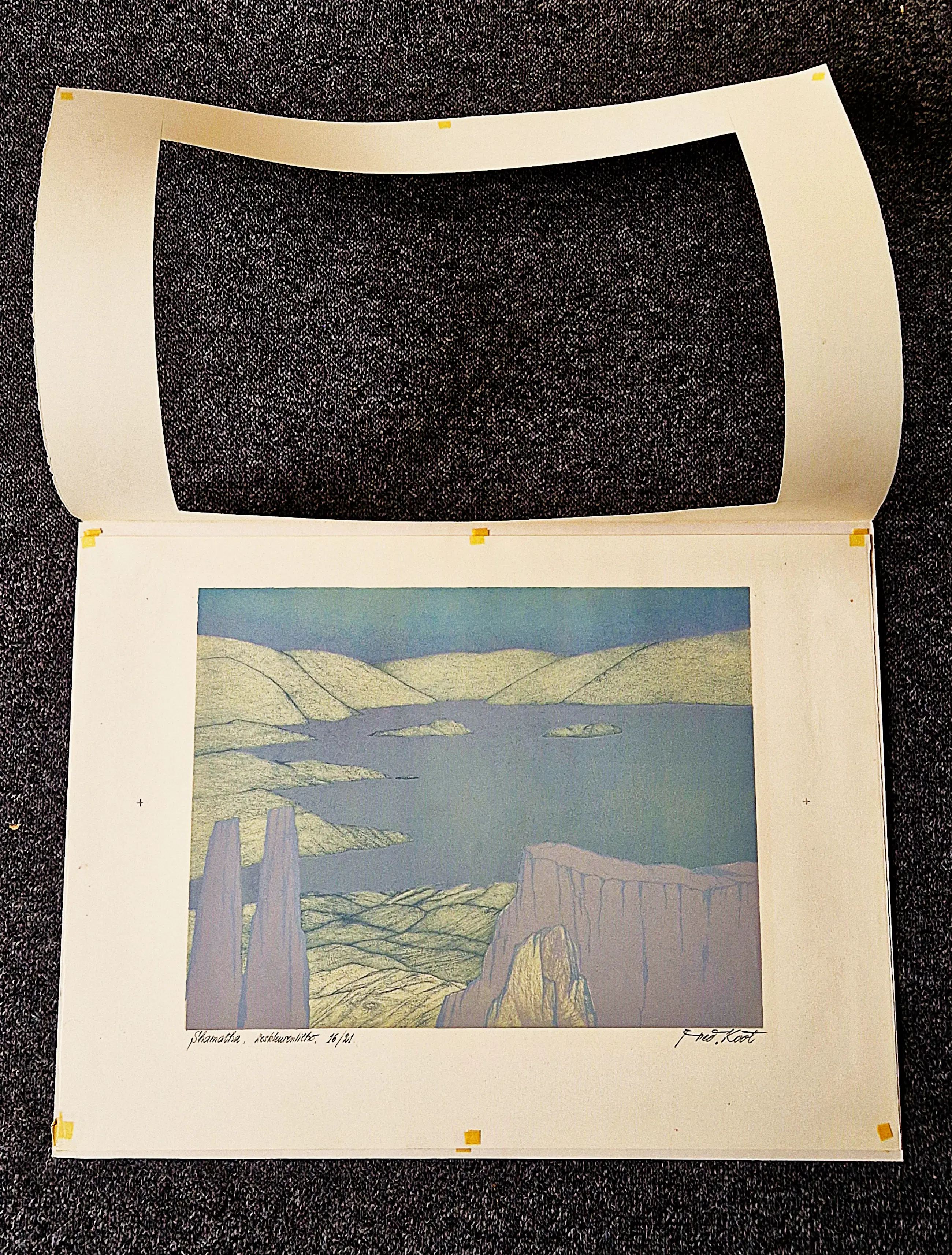 Fred Koot - Verstilde 6-kleurenlithografie Tibet landschap "Shamatha" potloodgesigneerd